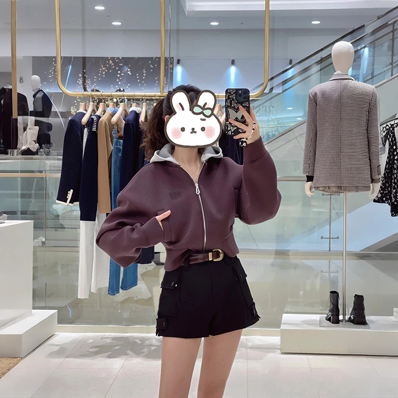 Fashionsole 2025 Fall/Winter Cool & Cute Colorblock Hooded Zipper Sports Short-Sleeved Sweatshirt Women’s Jacket