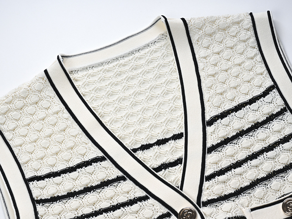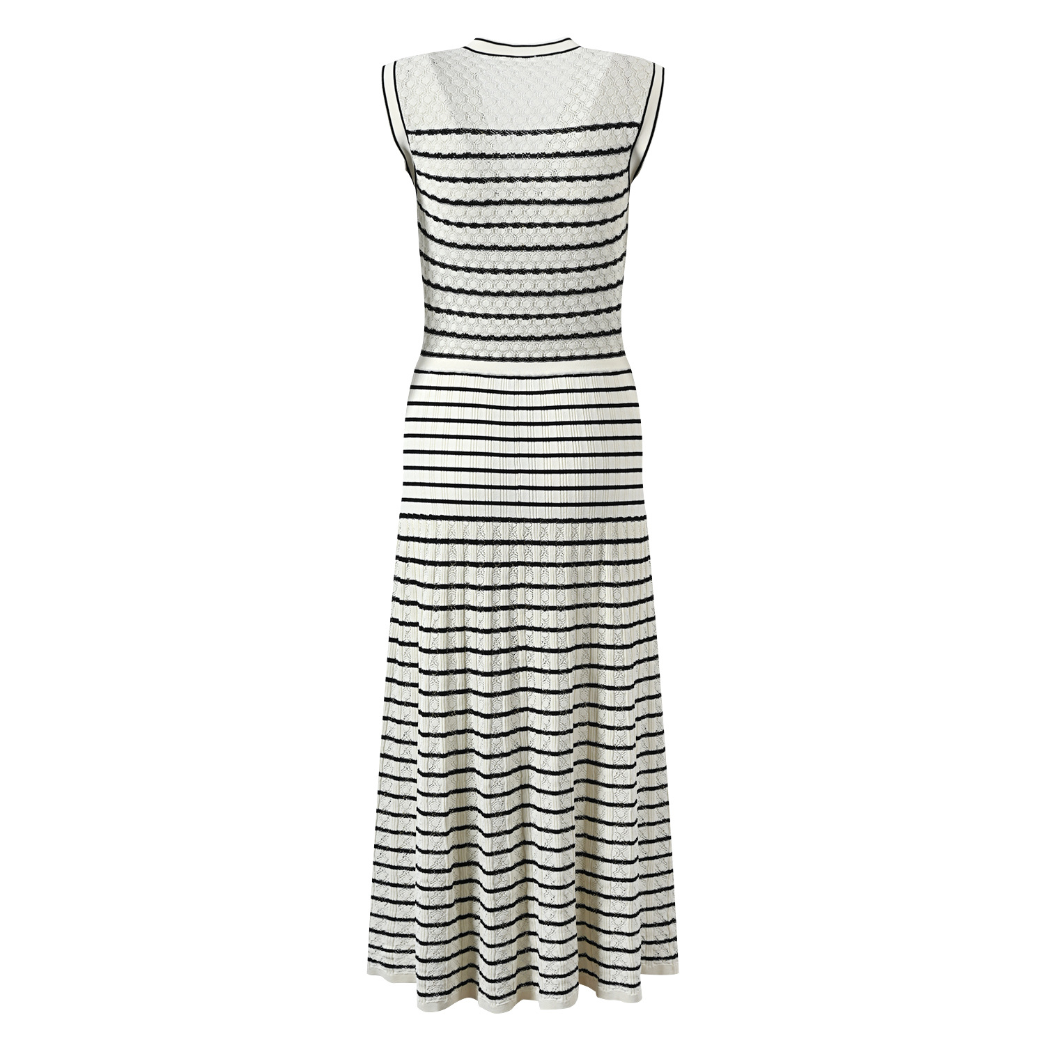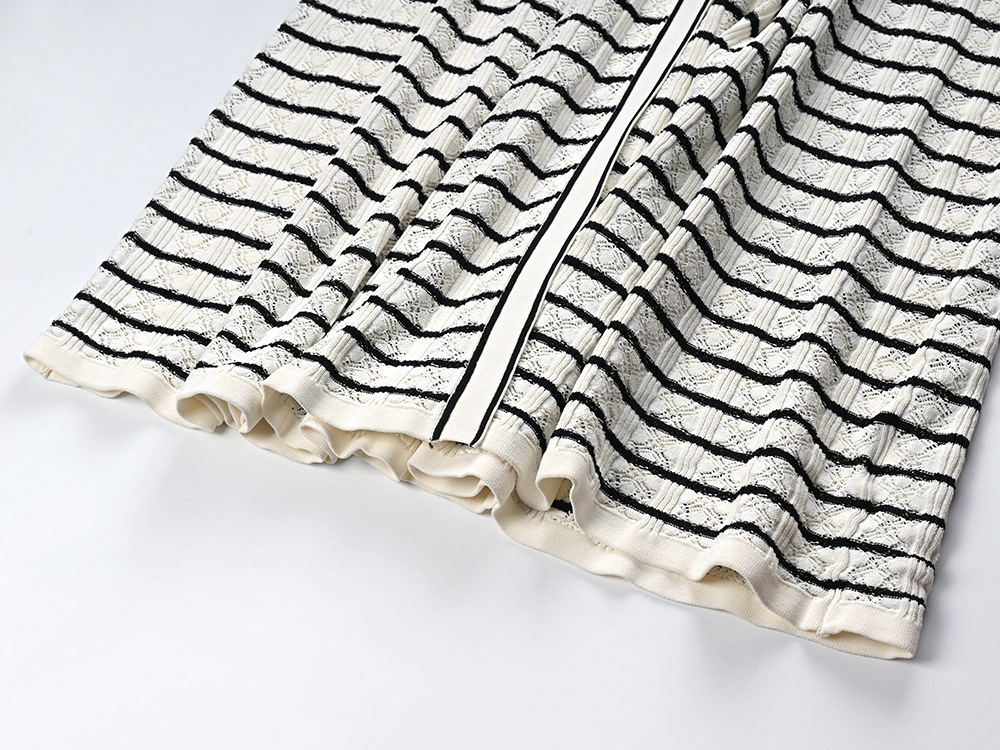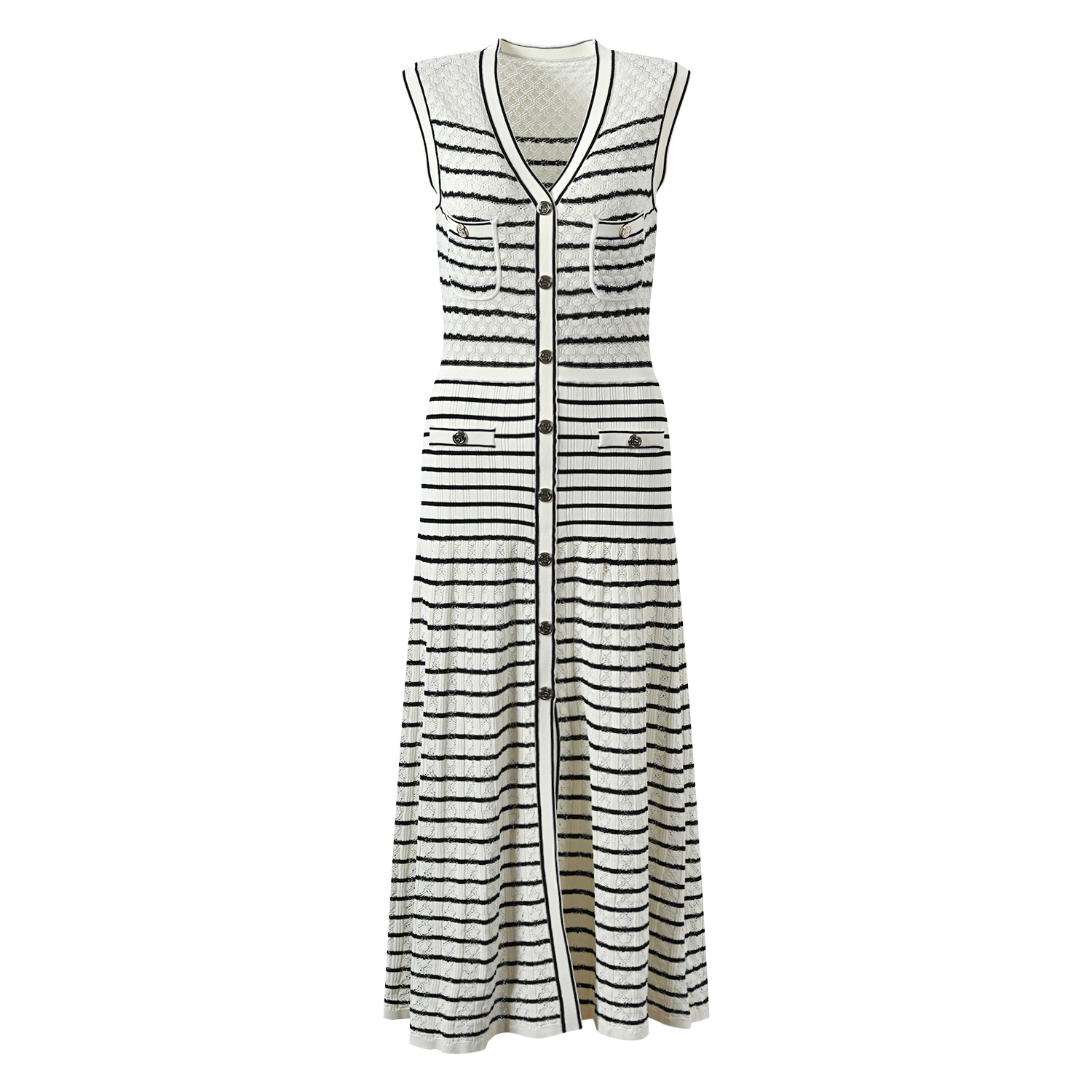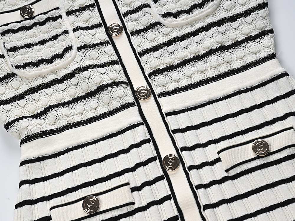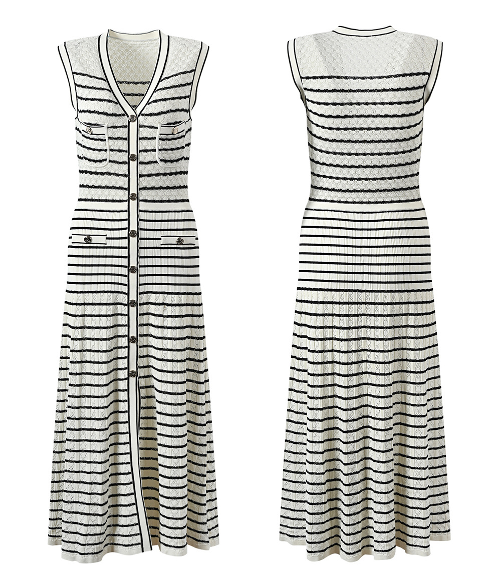 2024 New Classic Striped Knit Dress Ladies V-Neck Sleeveless Single Breasted Robe O-Neck Knitting Long Dress 5230485Availability: 500 in stock (can be backordered)