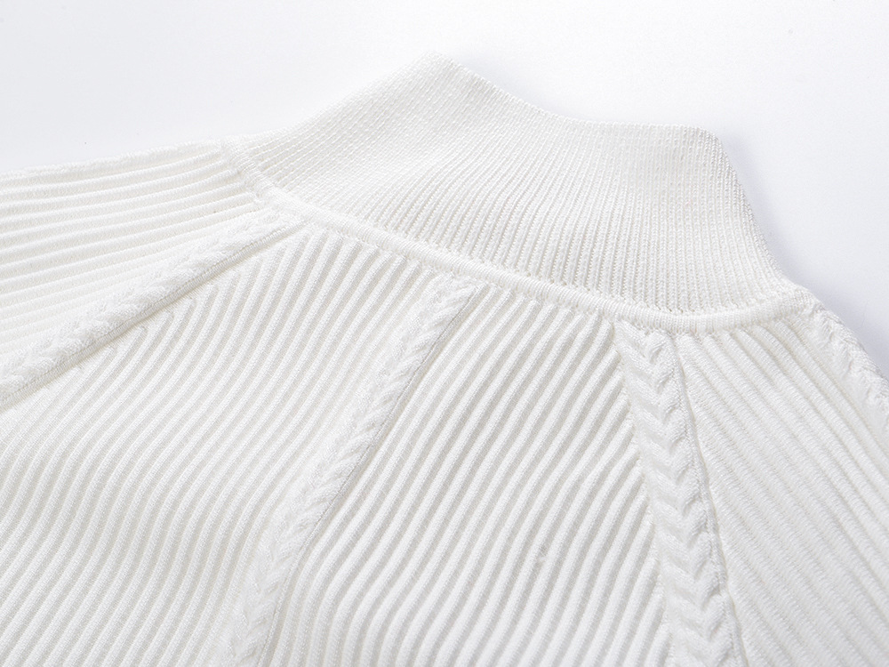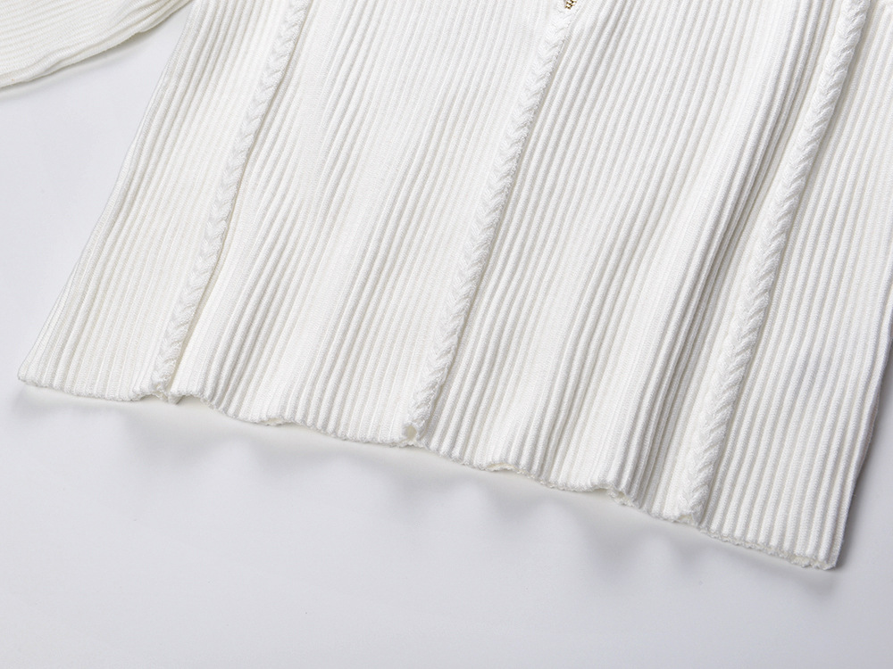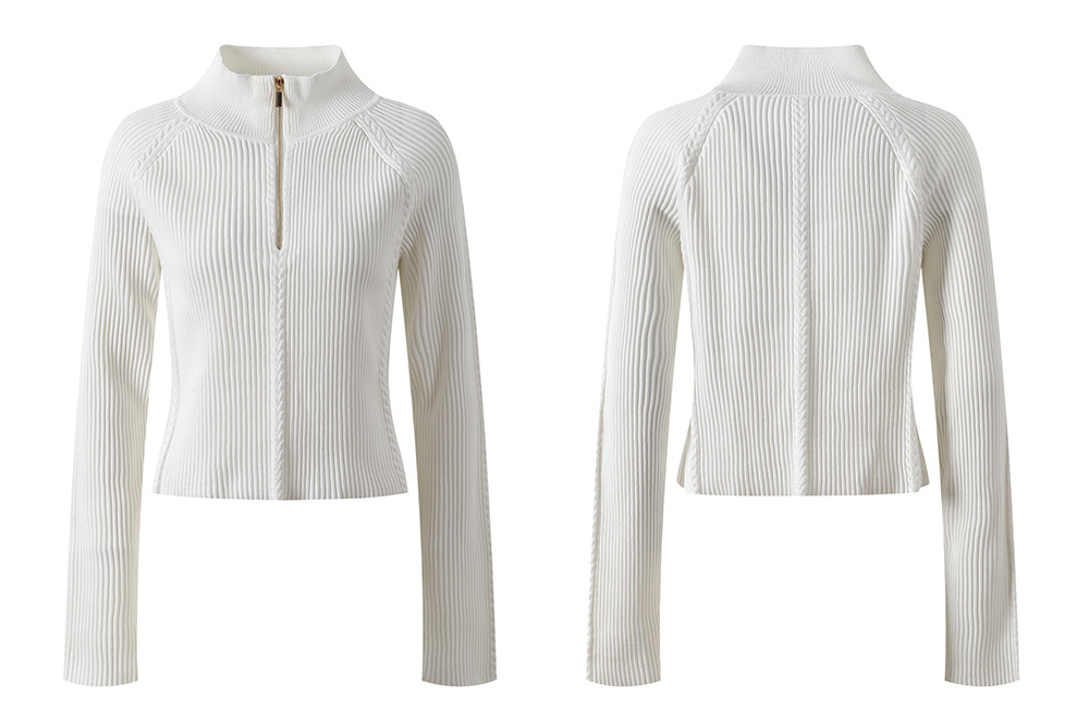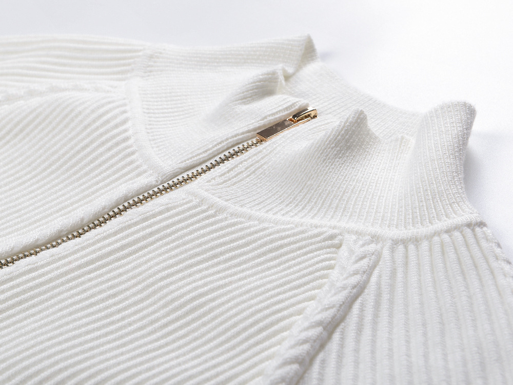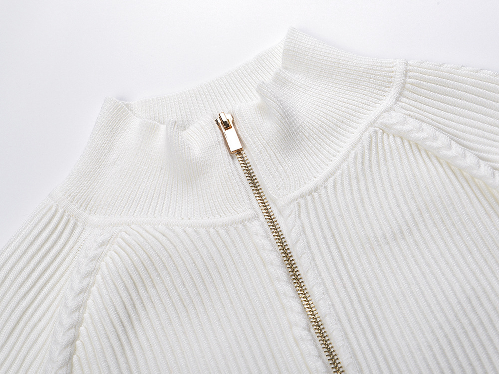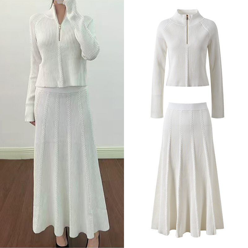 2025 Autumn and Winter French White Zipper Round Neck Long Sleeve Knit Top + High Waist Long Skirt Set 5250293Availability: 500 in stock (can be backordered)