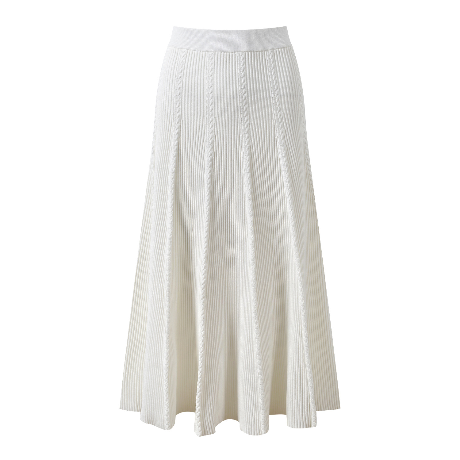 2025 Autumn and Winter French White Zipper Round Neck Long Sleeve Knit Top + High Waist Long Skirt Set 5250293