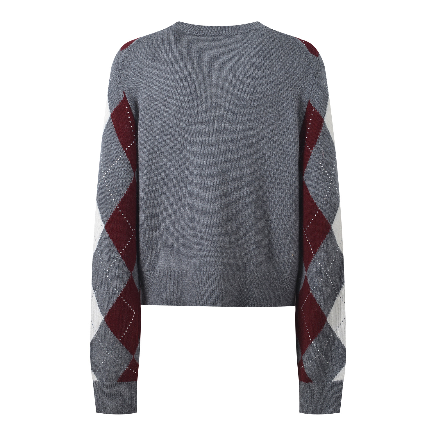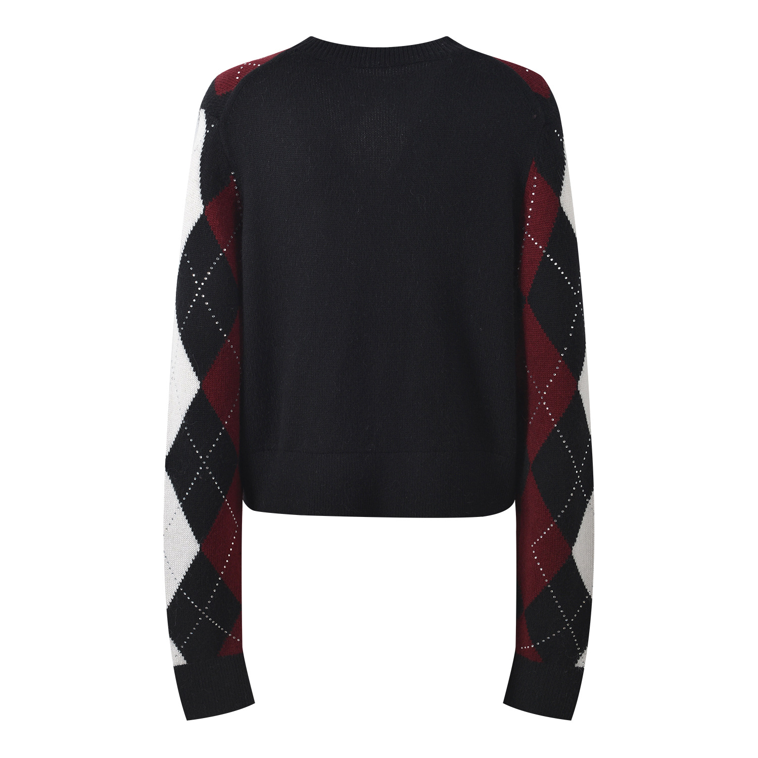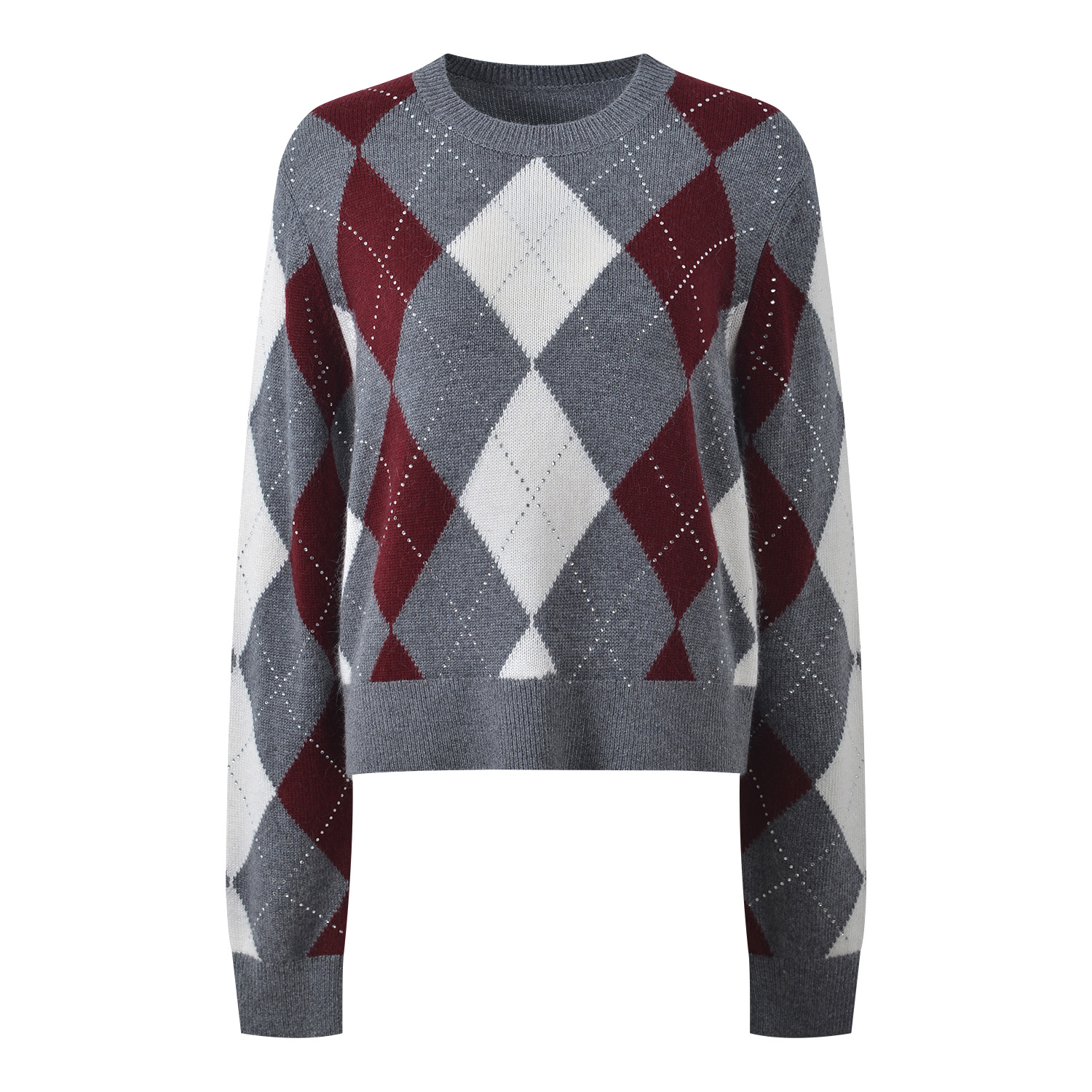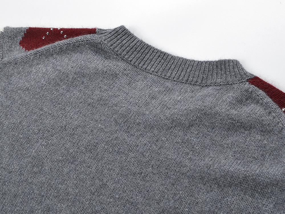 2025 autumn and winter new color contrasting diamond grid heavy industry hot stamping temperament fashionable and versatile short round neck knitted sweater sweater