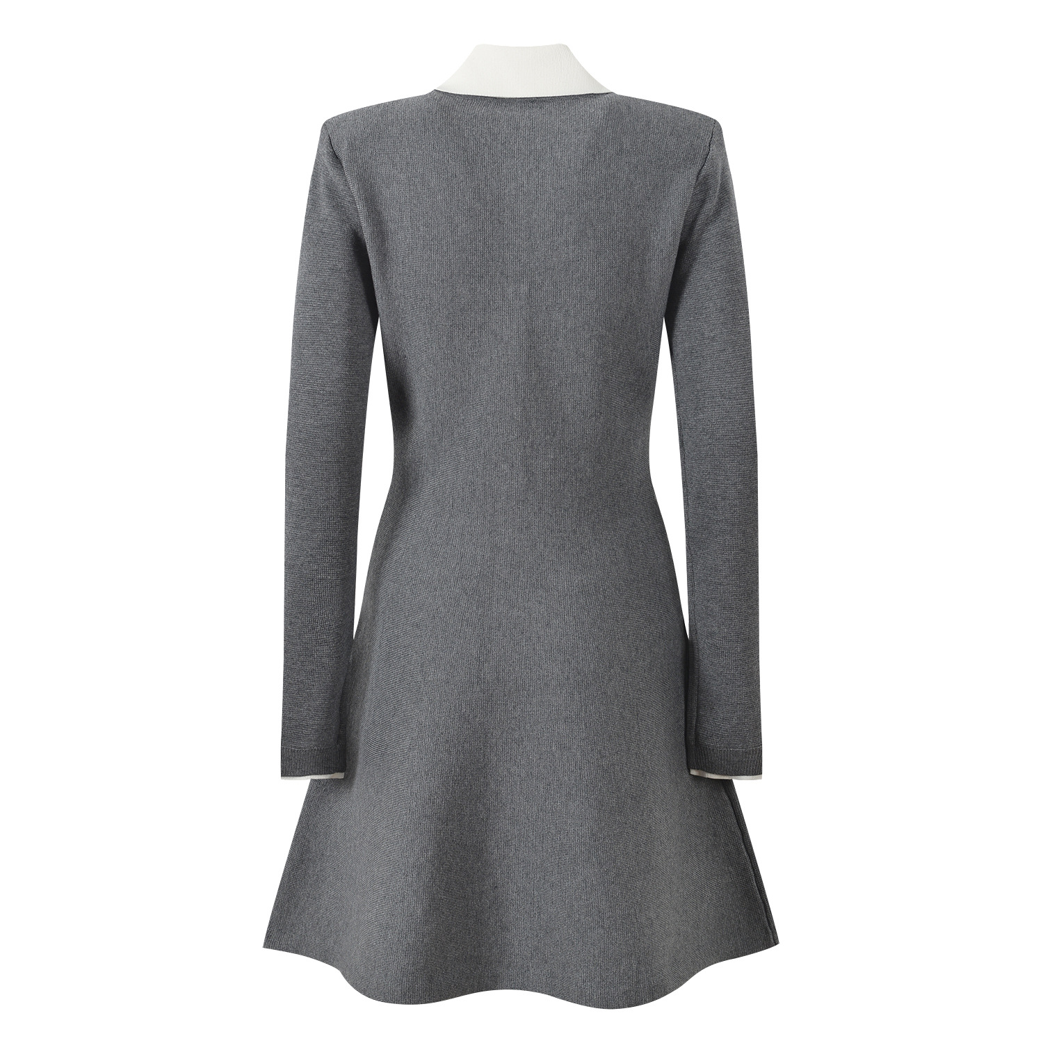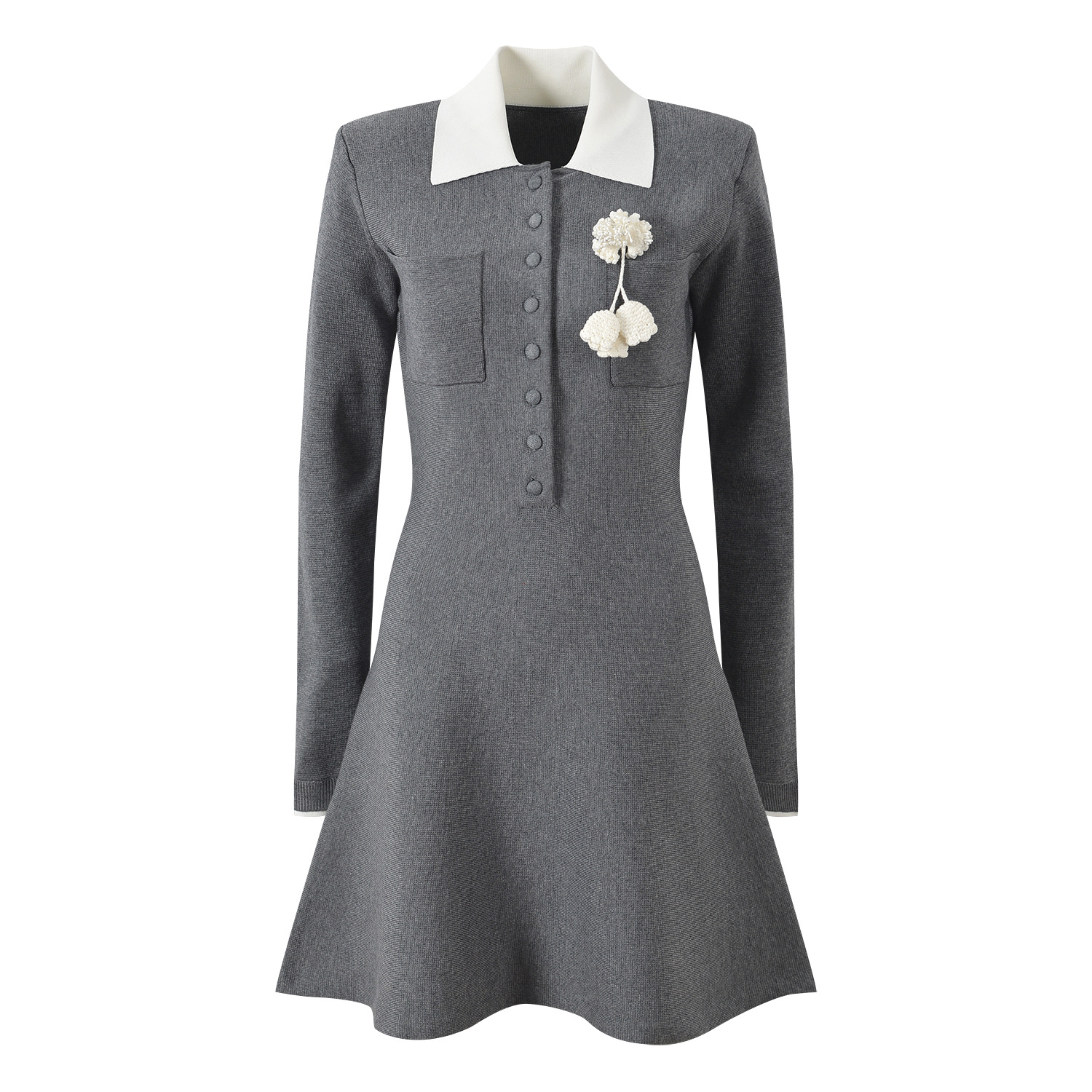 2025 autumn new college style knitted crochet contrast color lapel slim fit long sleeve knitted dressAvailability: 500 in stock (can be backordered)