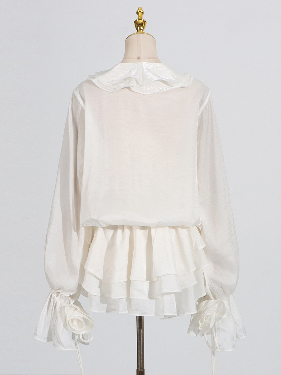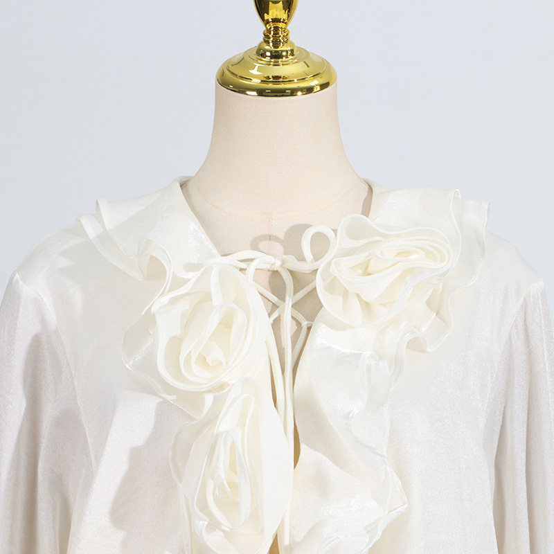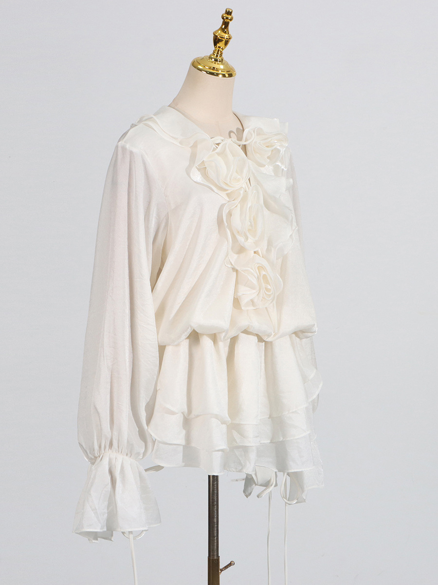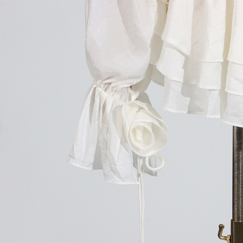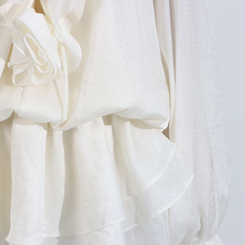 2025 Autumn New Cross-Border Women’s Wear High-End Flower Patchwork Tied Lantern Sleeve Mini Dress