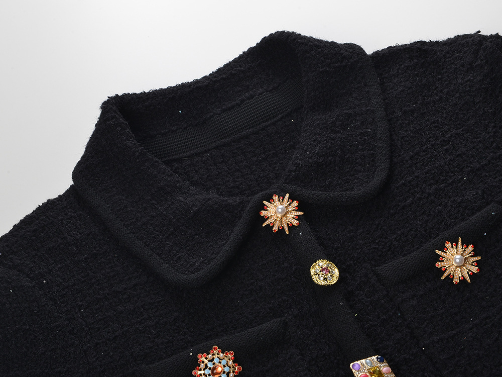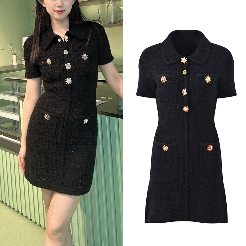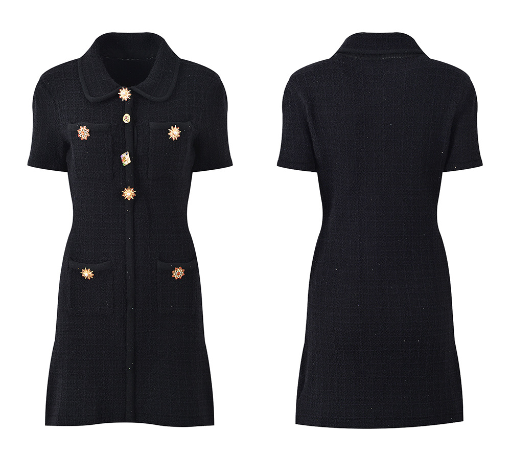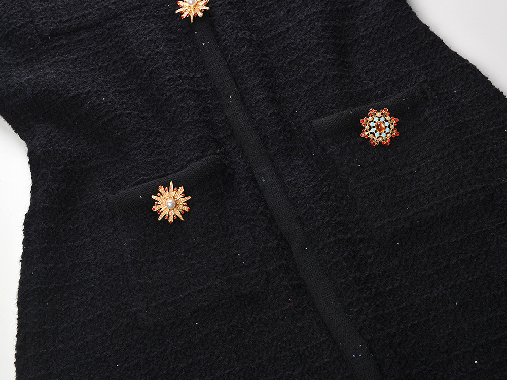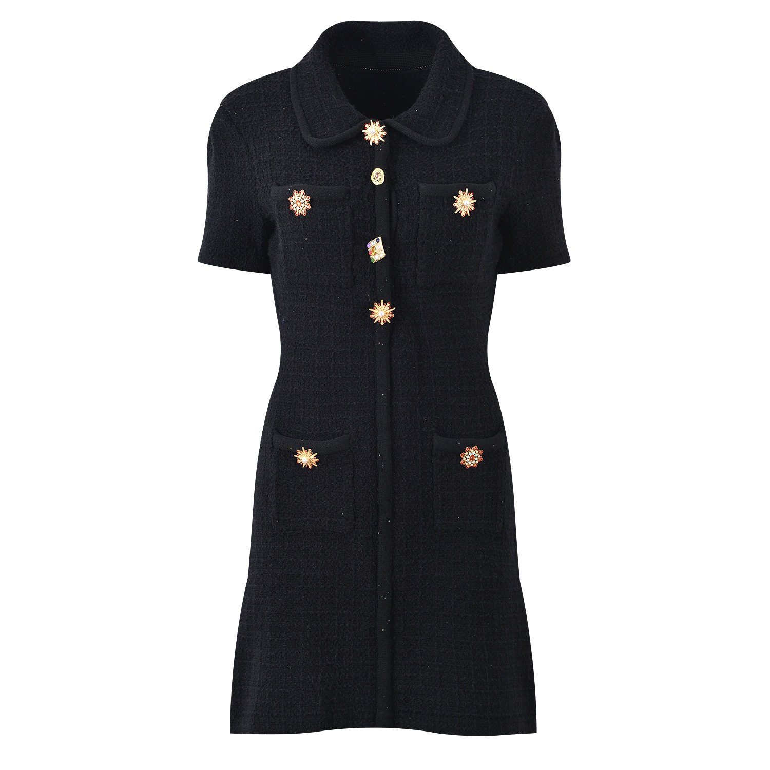 2025 autumn new French lady Chanel style heavy jewelry button black texture dressAvailability: 500 in stock (can be backordered)