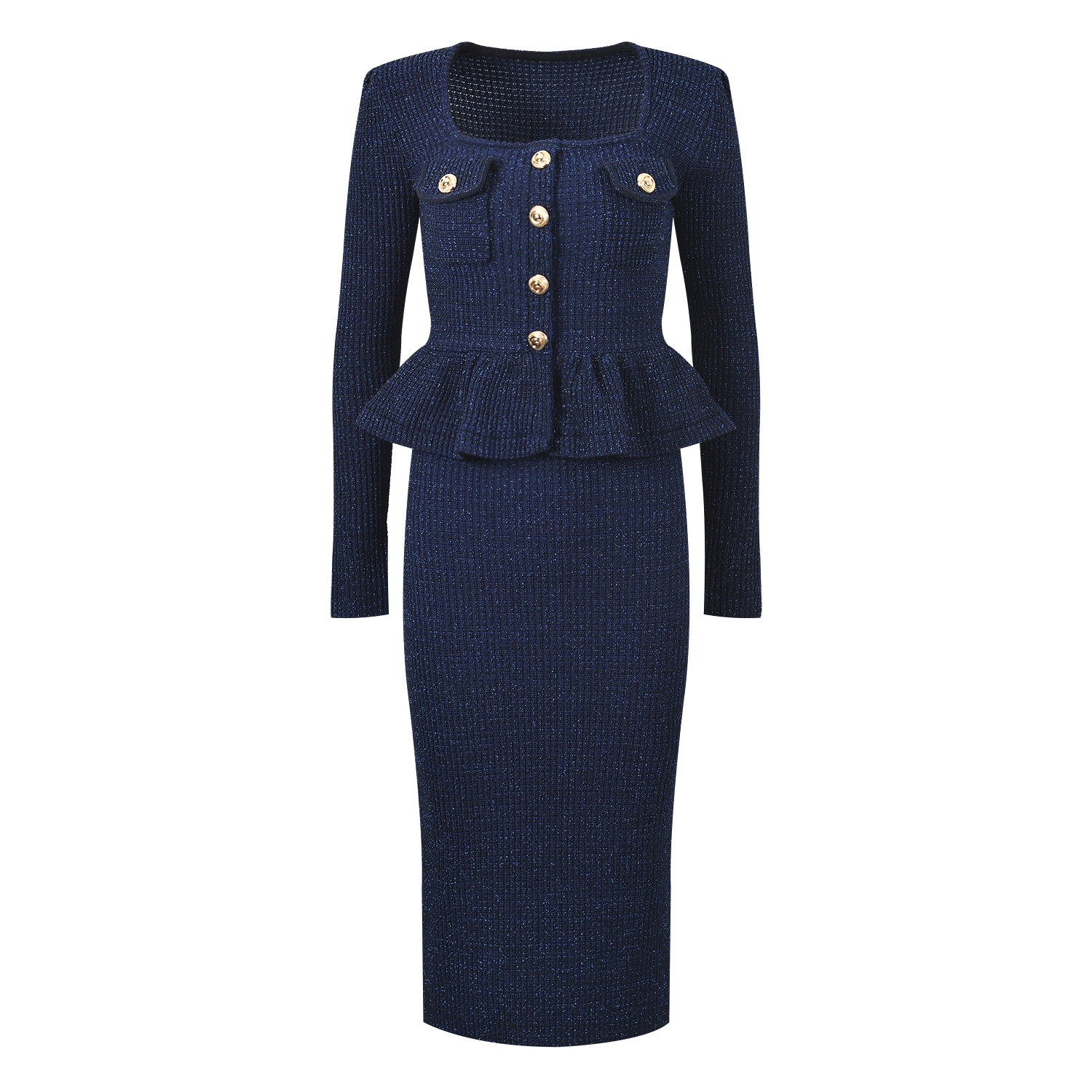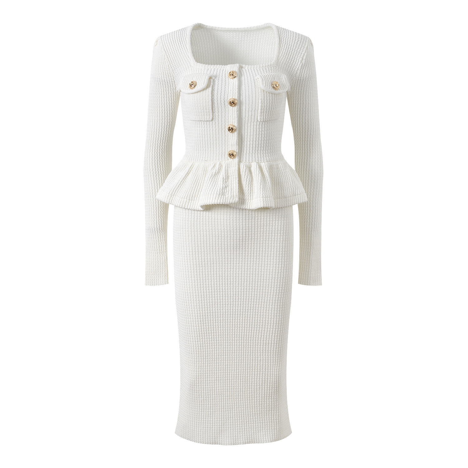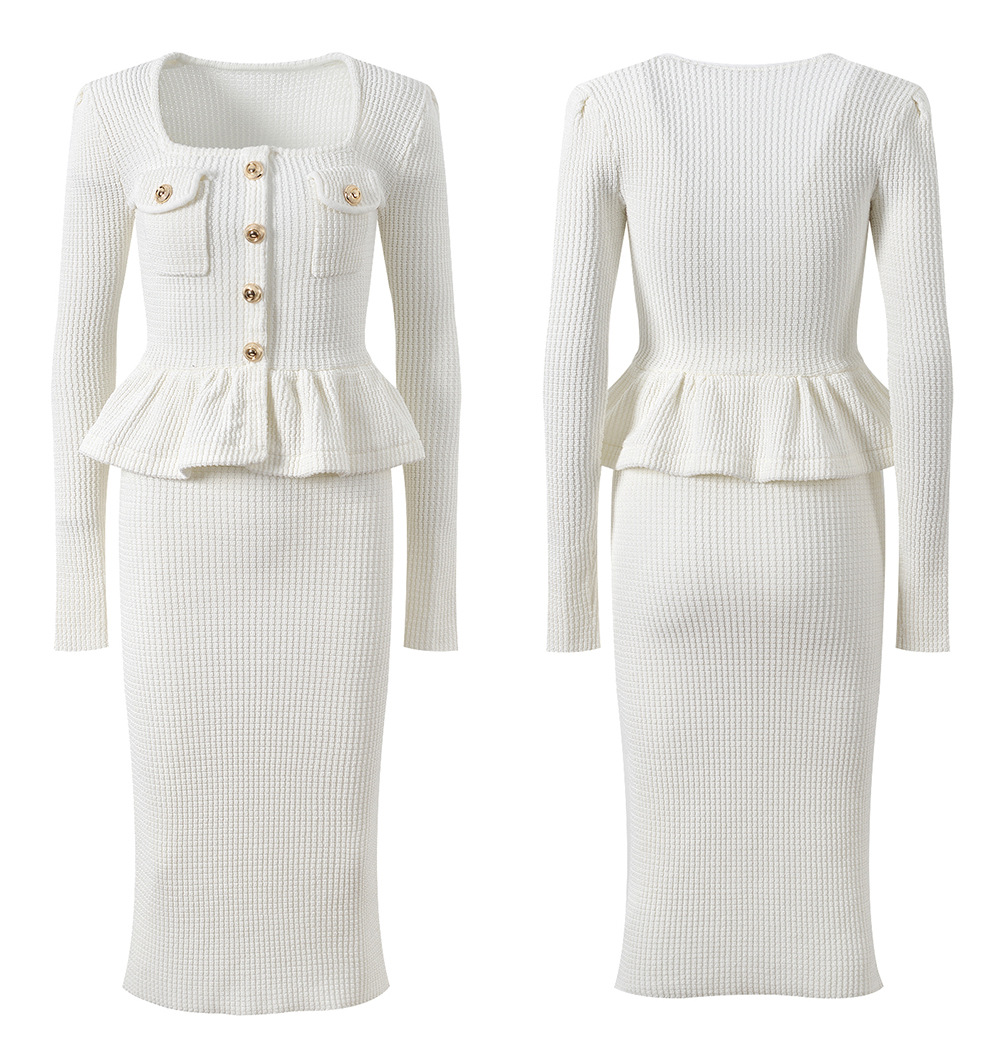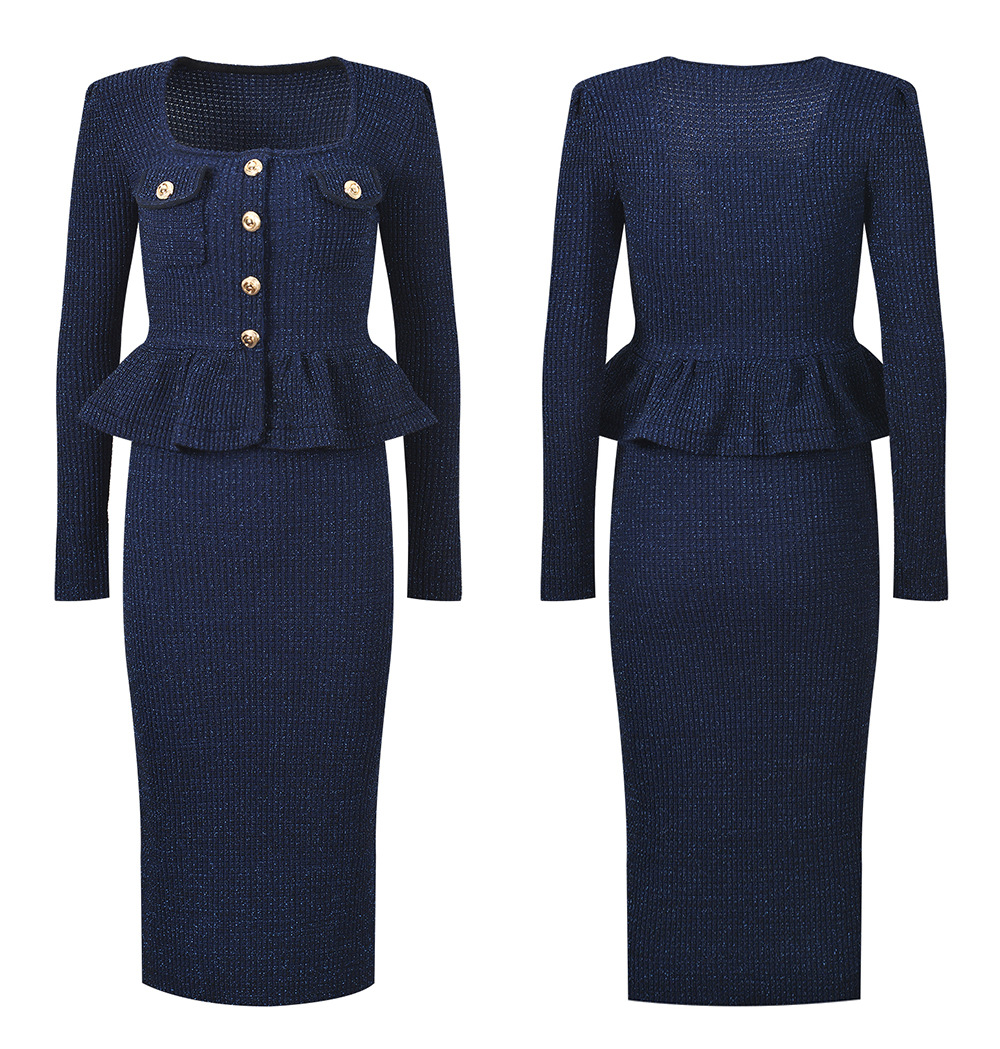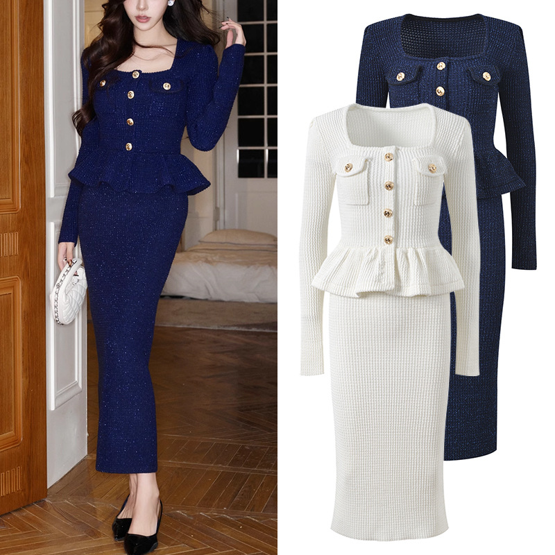 2025 autumn new French socialite light luxury square neck ruffle hem long sleeved goddess style elegant mid length skirt