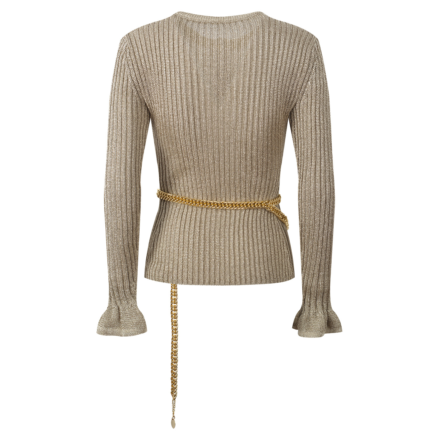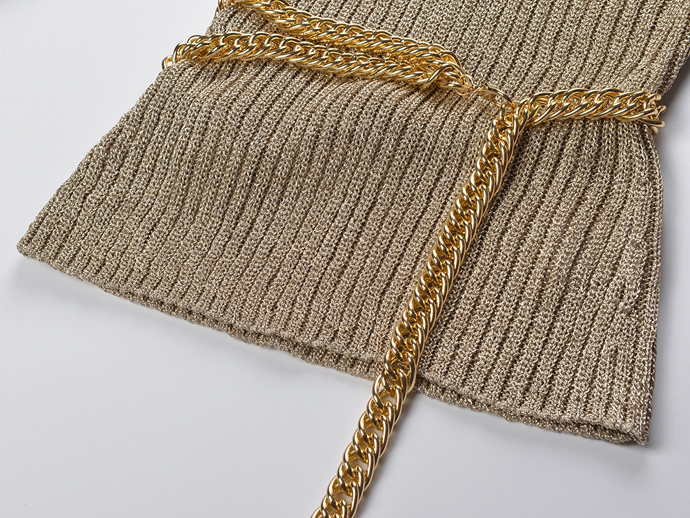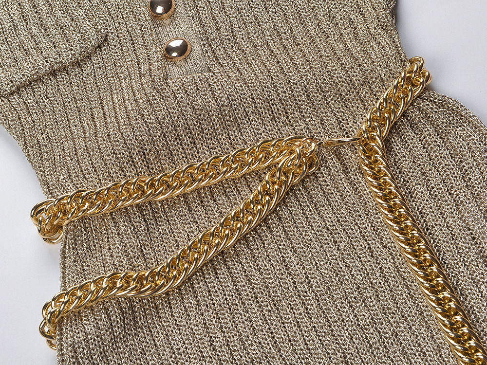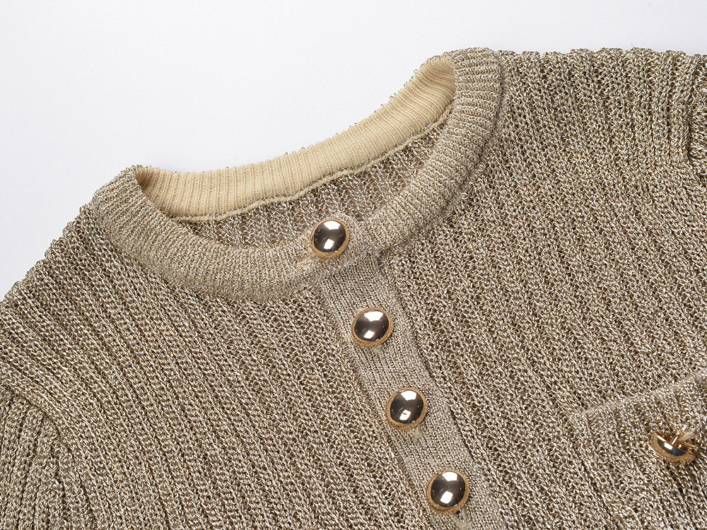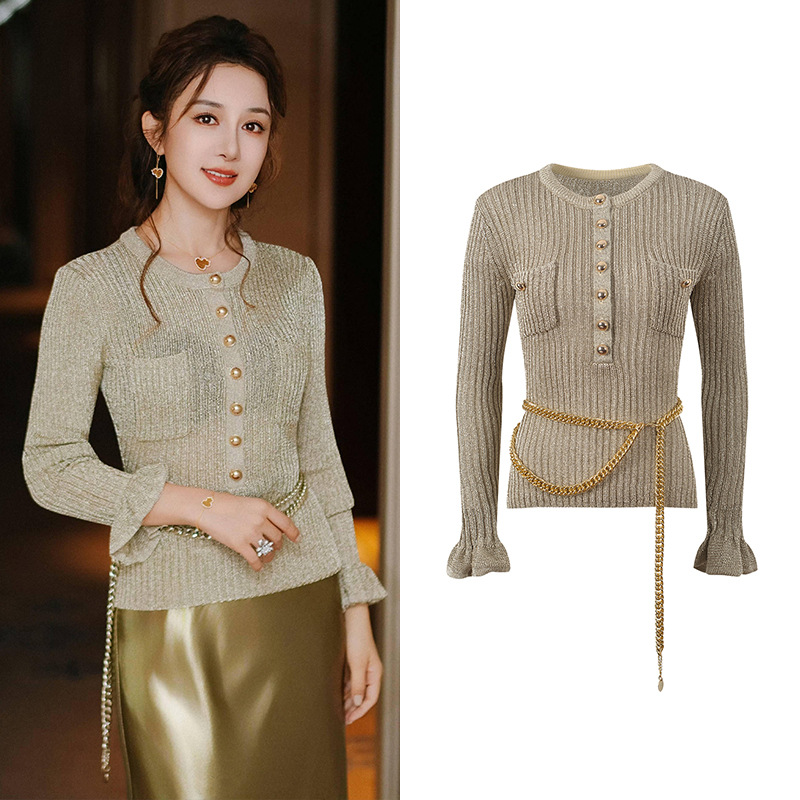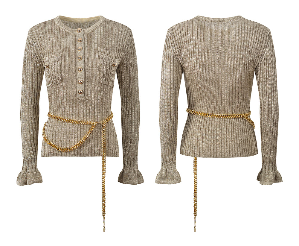 2025 Autumn New French Style Fashionable and Elegant Slim Fit Round Neck Single breasted Knitted Top with Waist Chain