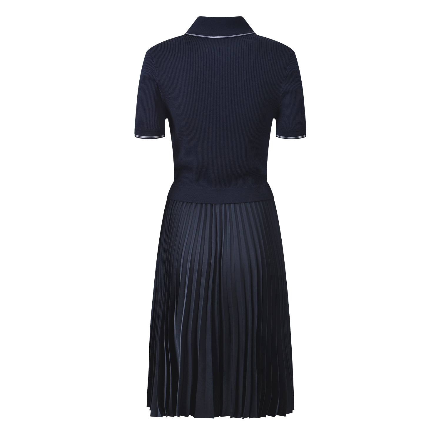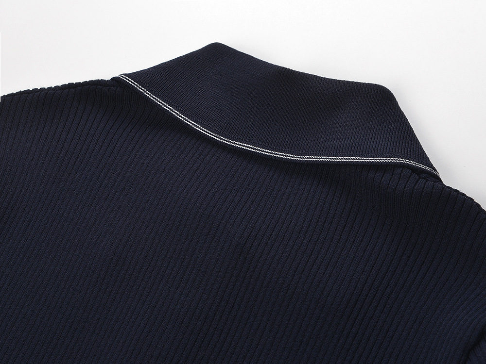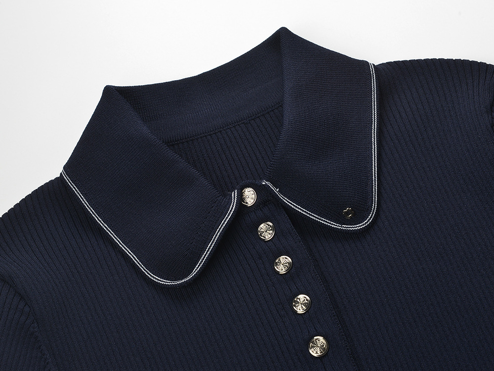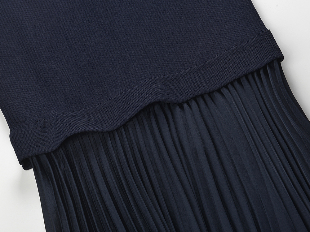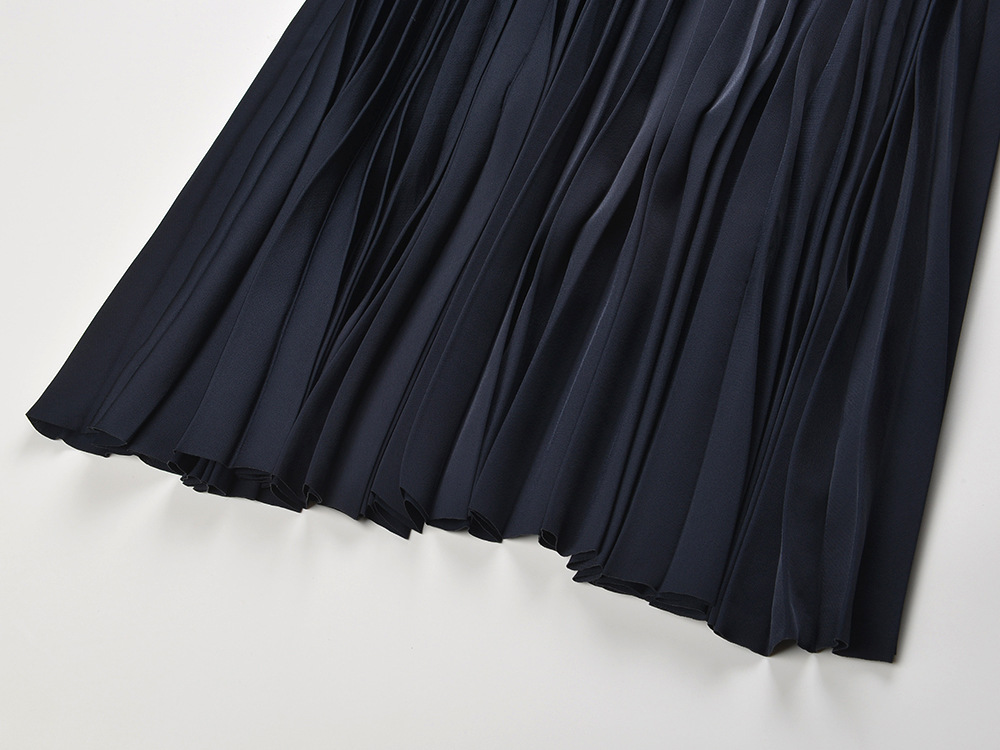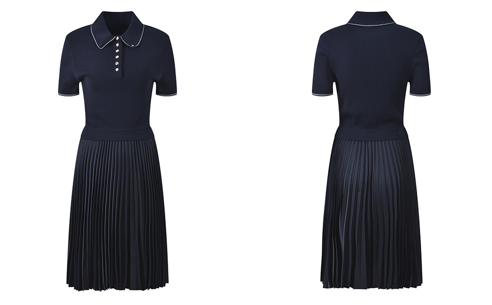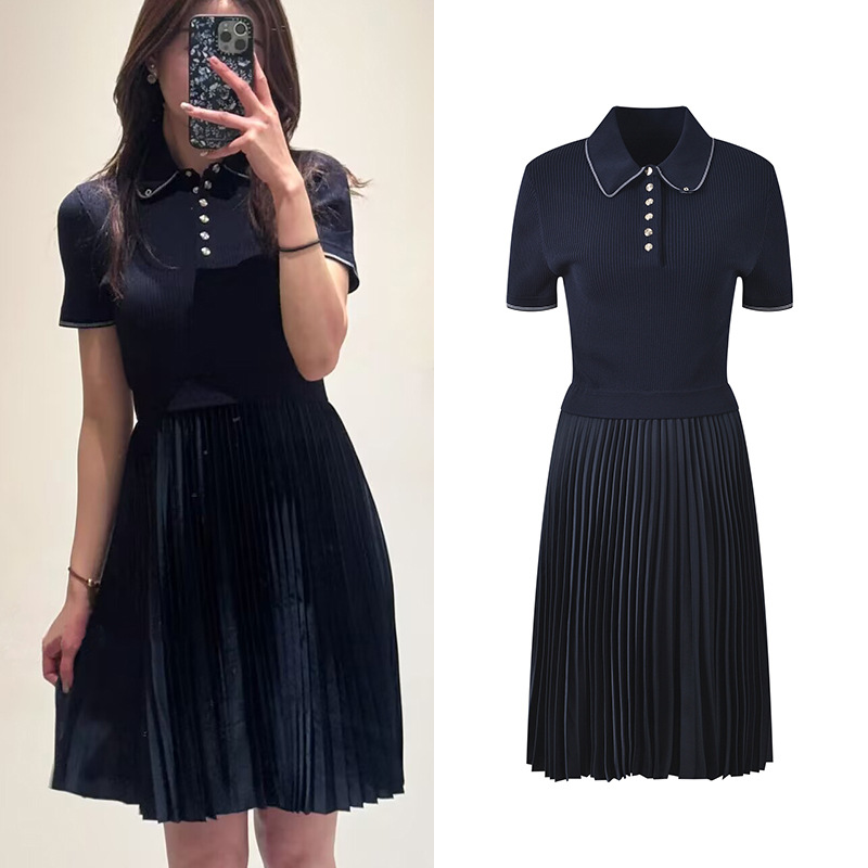 2025 autumn new French temperament fashion slim fit navy blue polo collar short sleeve pleated dressAvailability: 500 in stock (can be backordered)