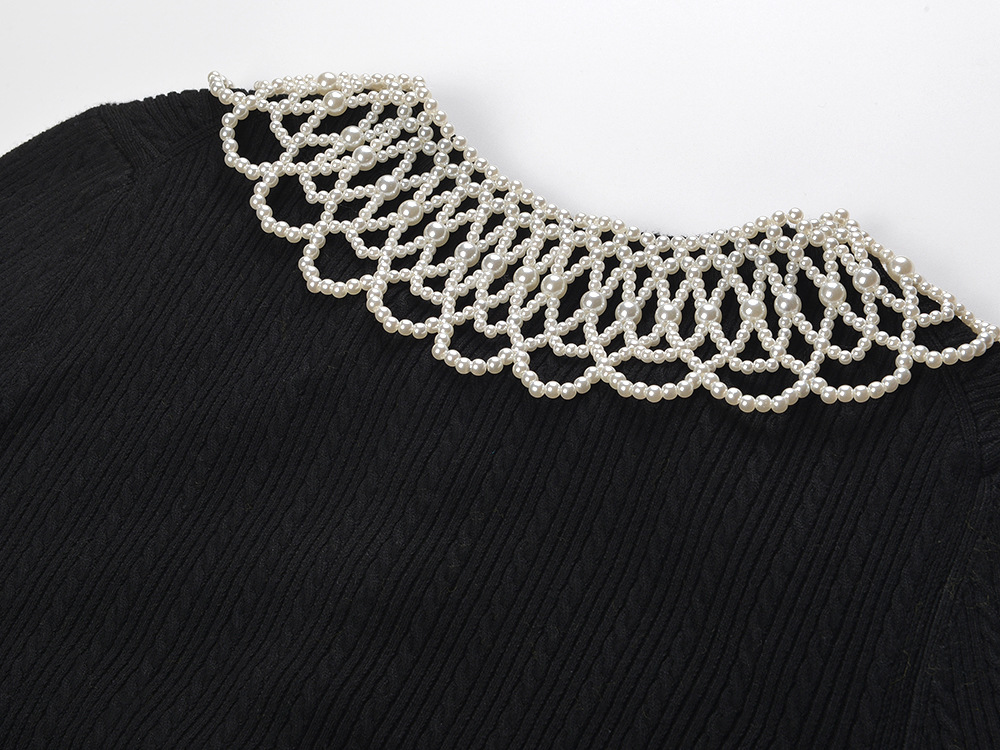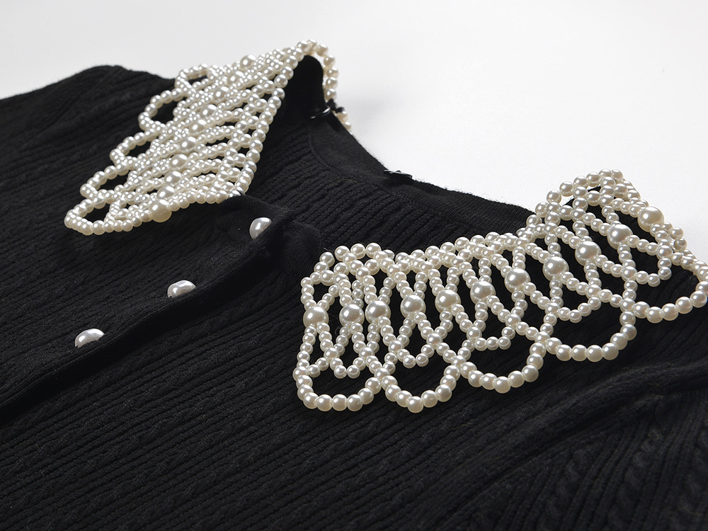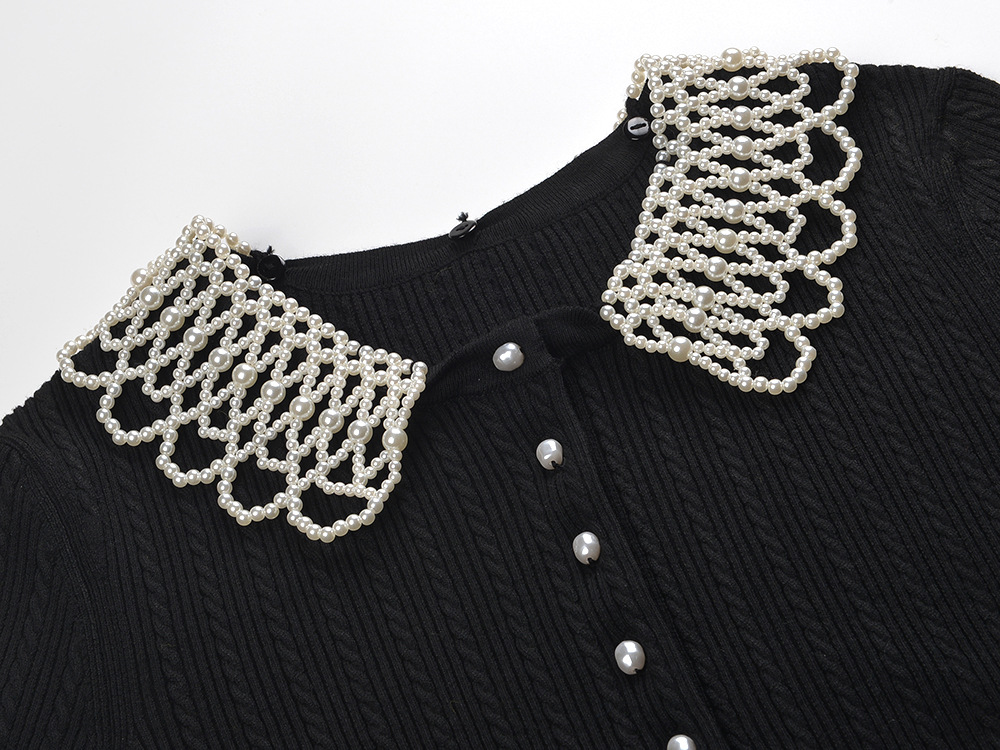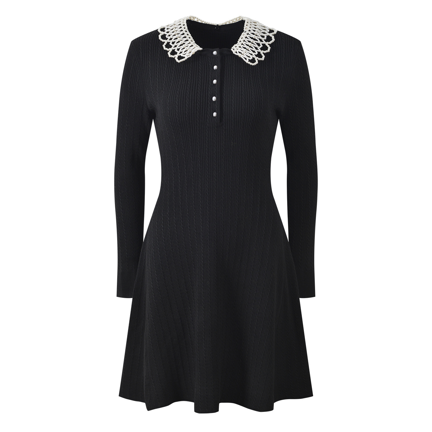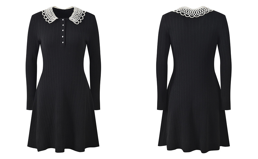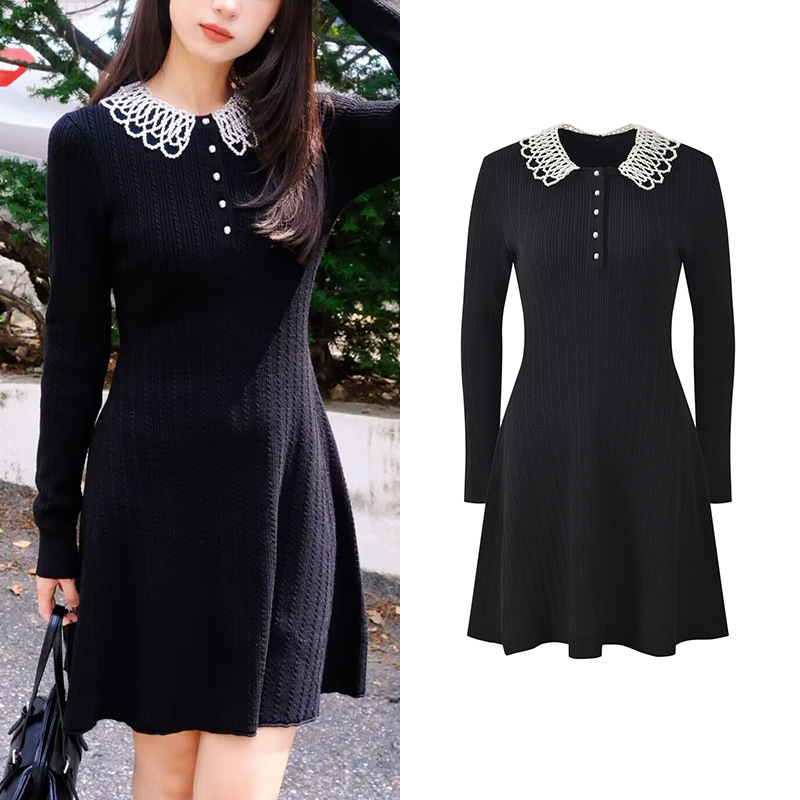 2025 Autumn New Pearl Decorative Doll Collar Twisted Flower Sweet Age Reducing Slimming and slimming A-line Dress