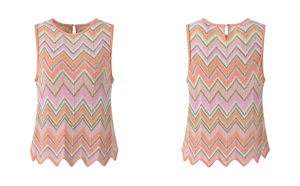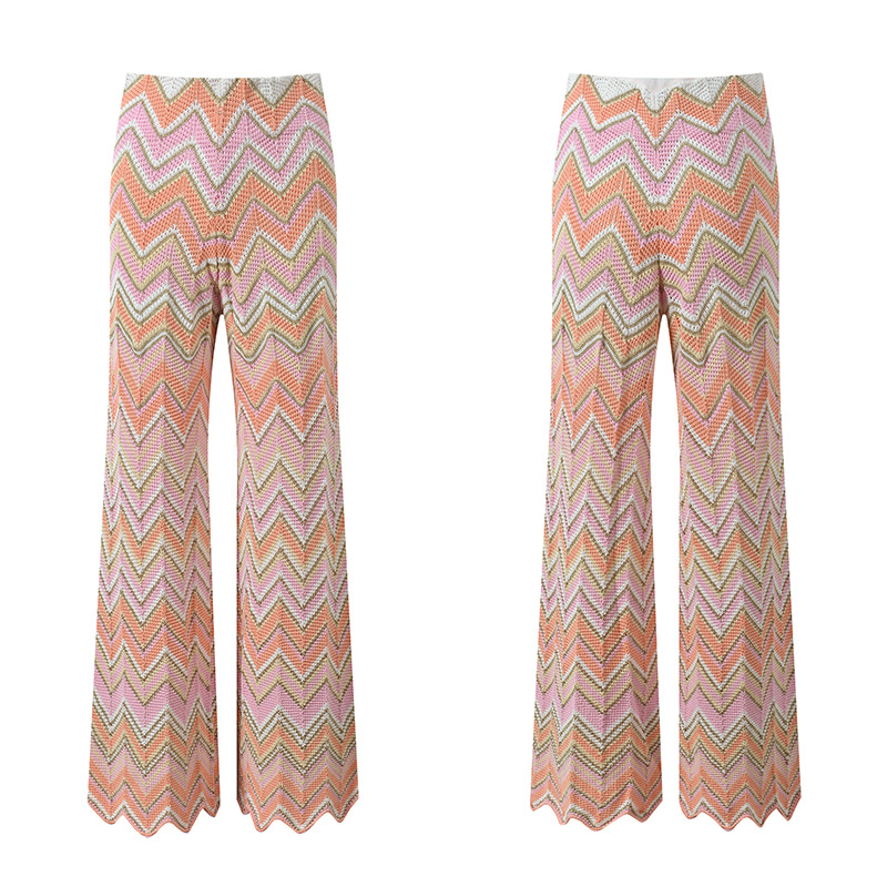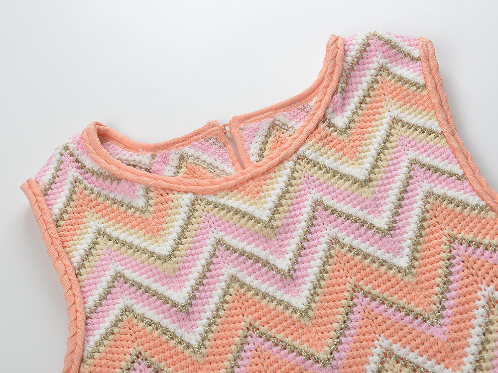 2025 autumn new style contrast color wave pattern age-reducing slim round neck sleeveless vest top + wide leg pants set