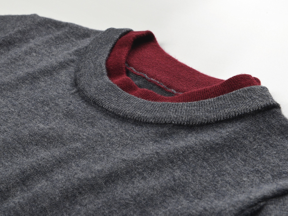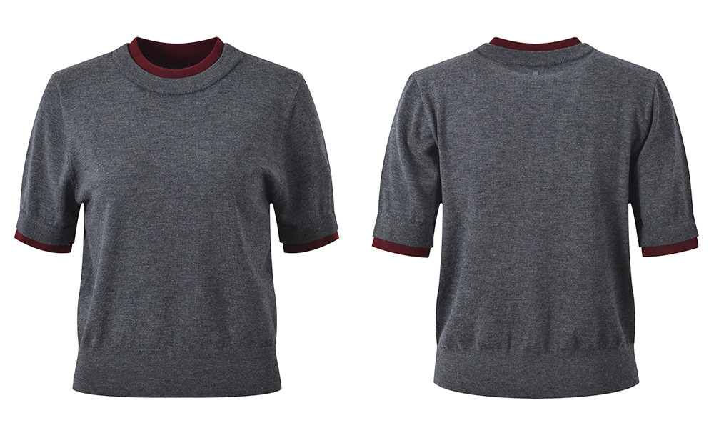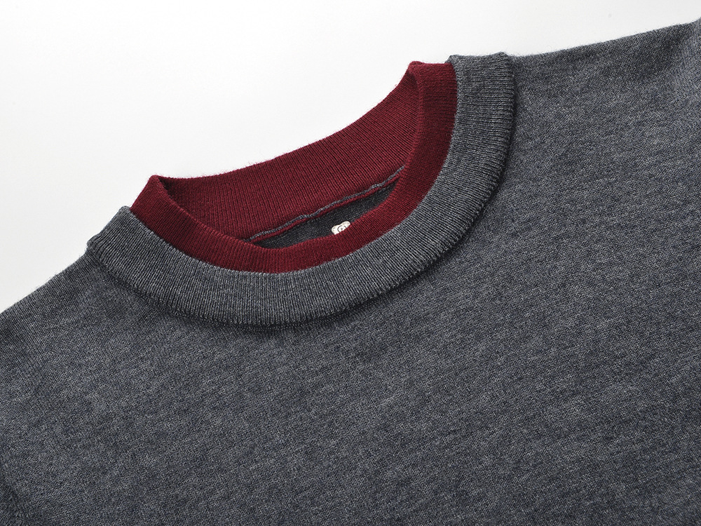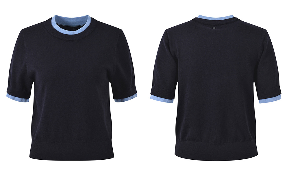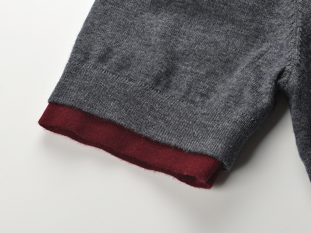 2025 autumn new style fashion temperament casual versatile contrast color stitching fake two-piece knitted sweater T-shirt top
