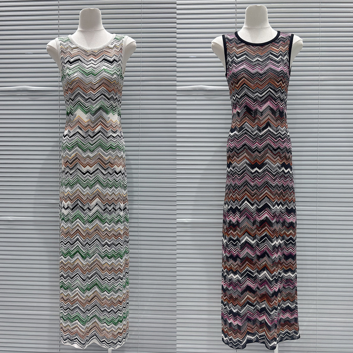 2025 Autumn/Winter New Arrival Contrast Color Wavy Pattern Design Elegant and Stylish Fitted Slimming Round-Neck Sleeveless Dress
