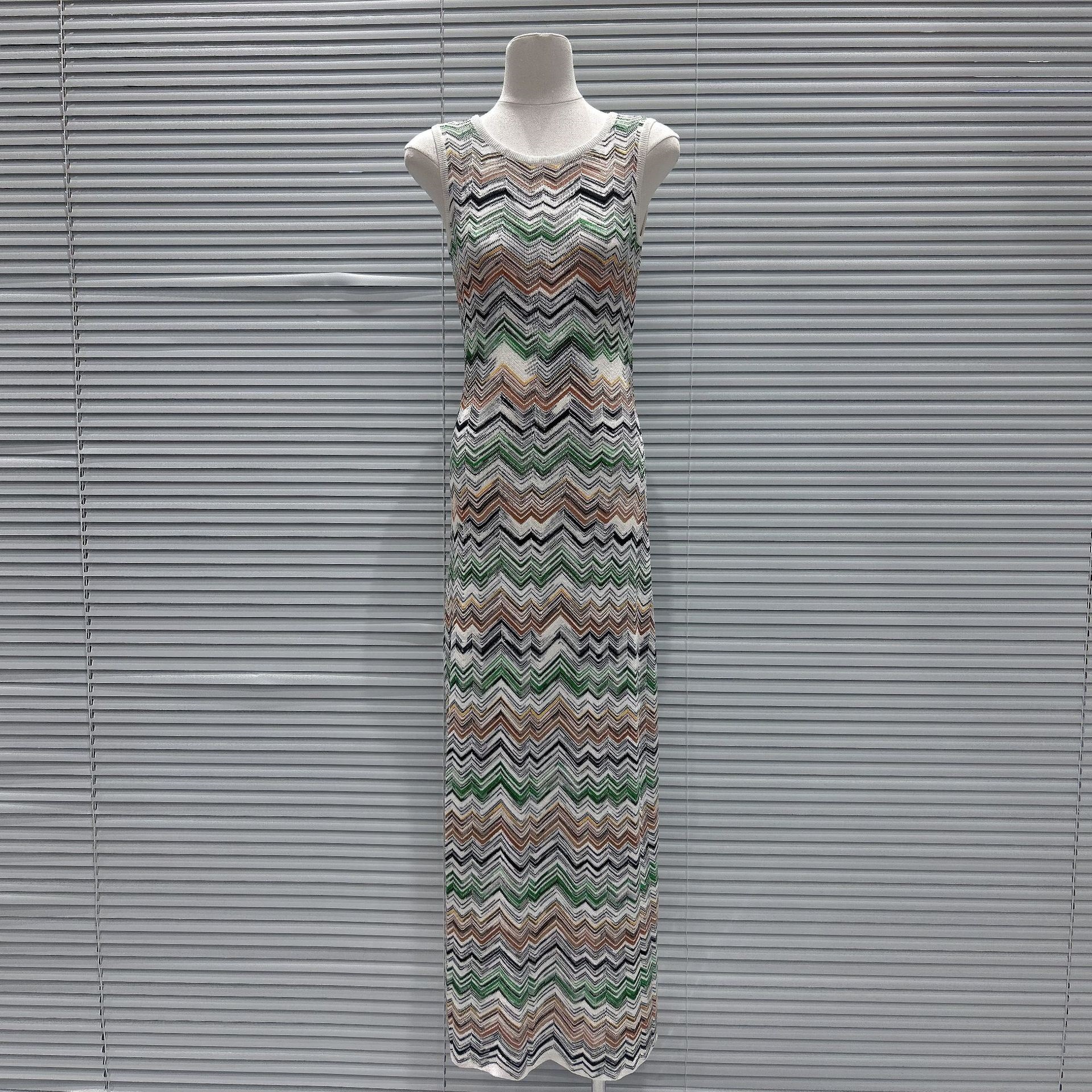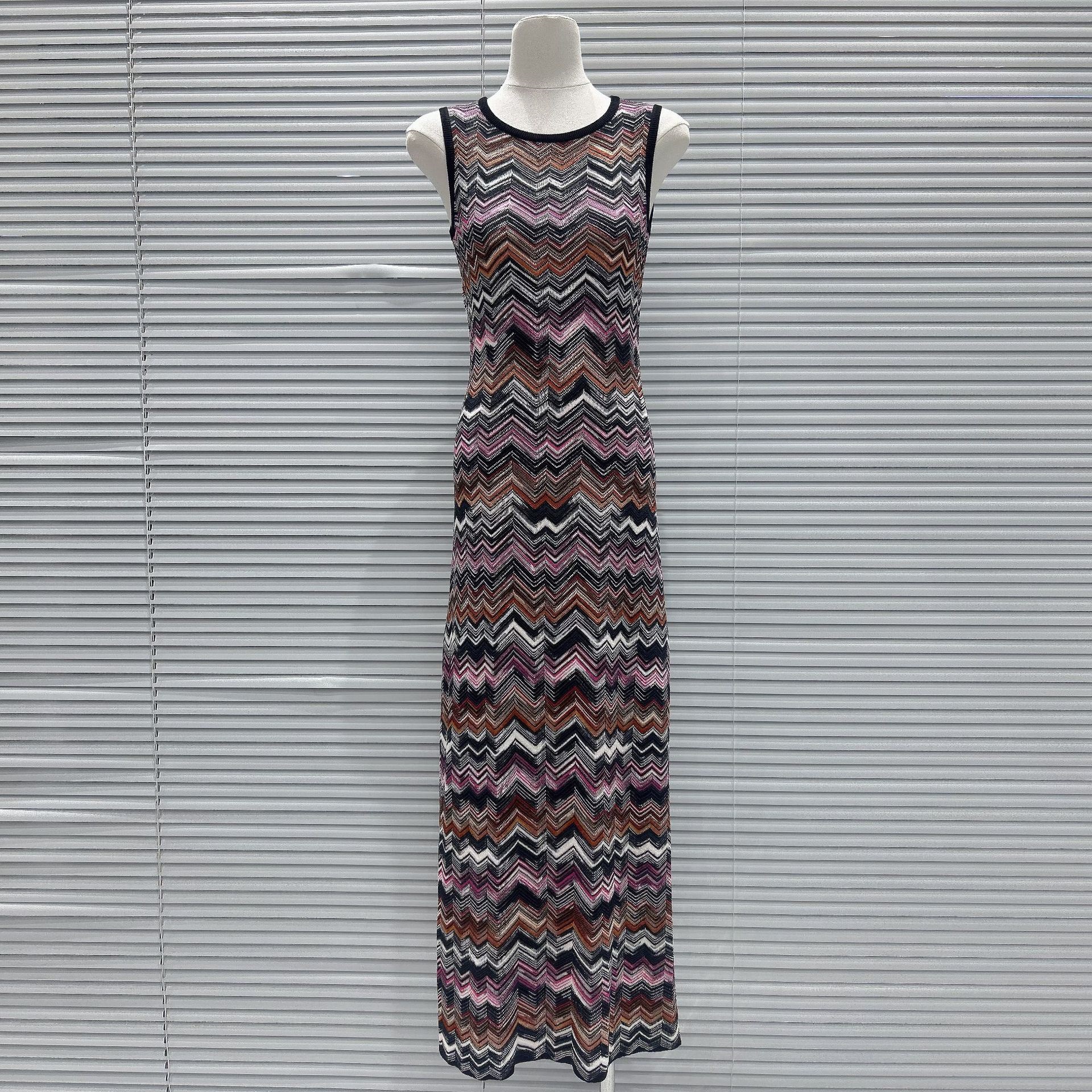 2025 Autumn/Winter New Arrival Contrast Color Wavy Pattern Design Elegant and Stylish Fitted Slimming Round-Neck Sleeveless Dress