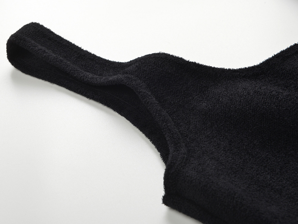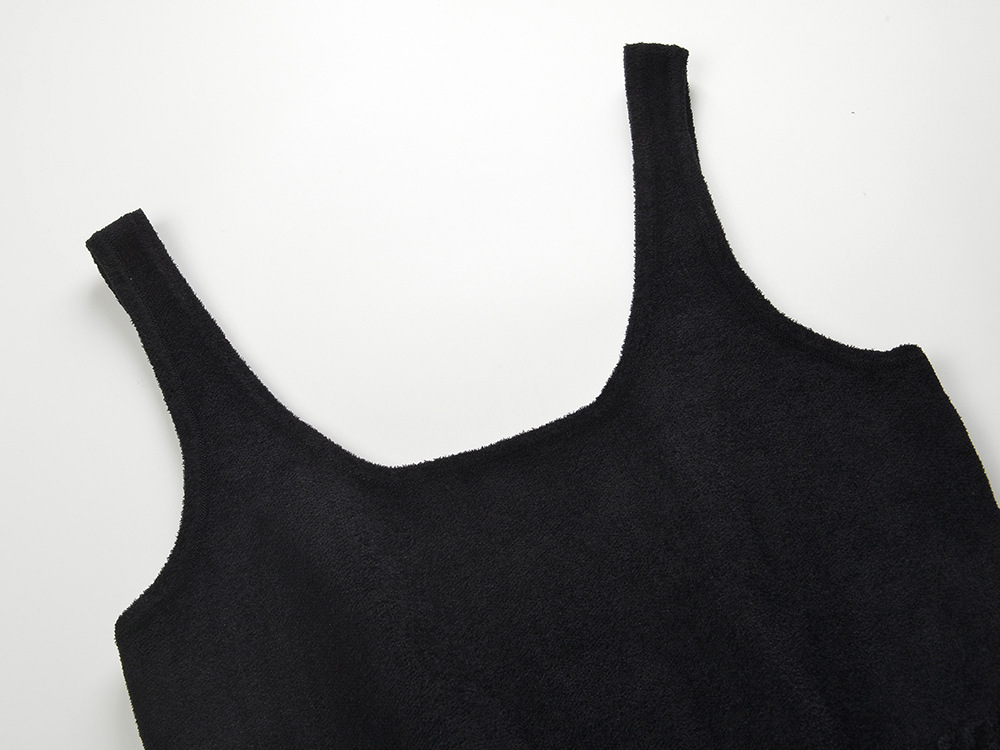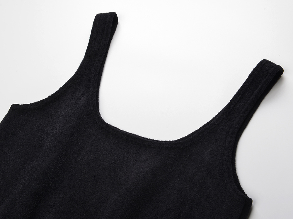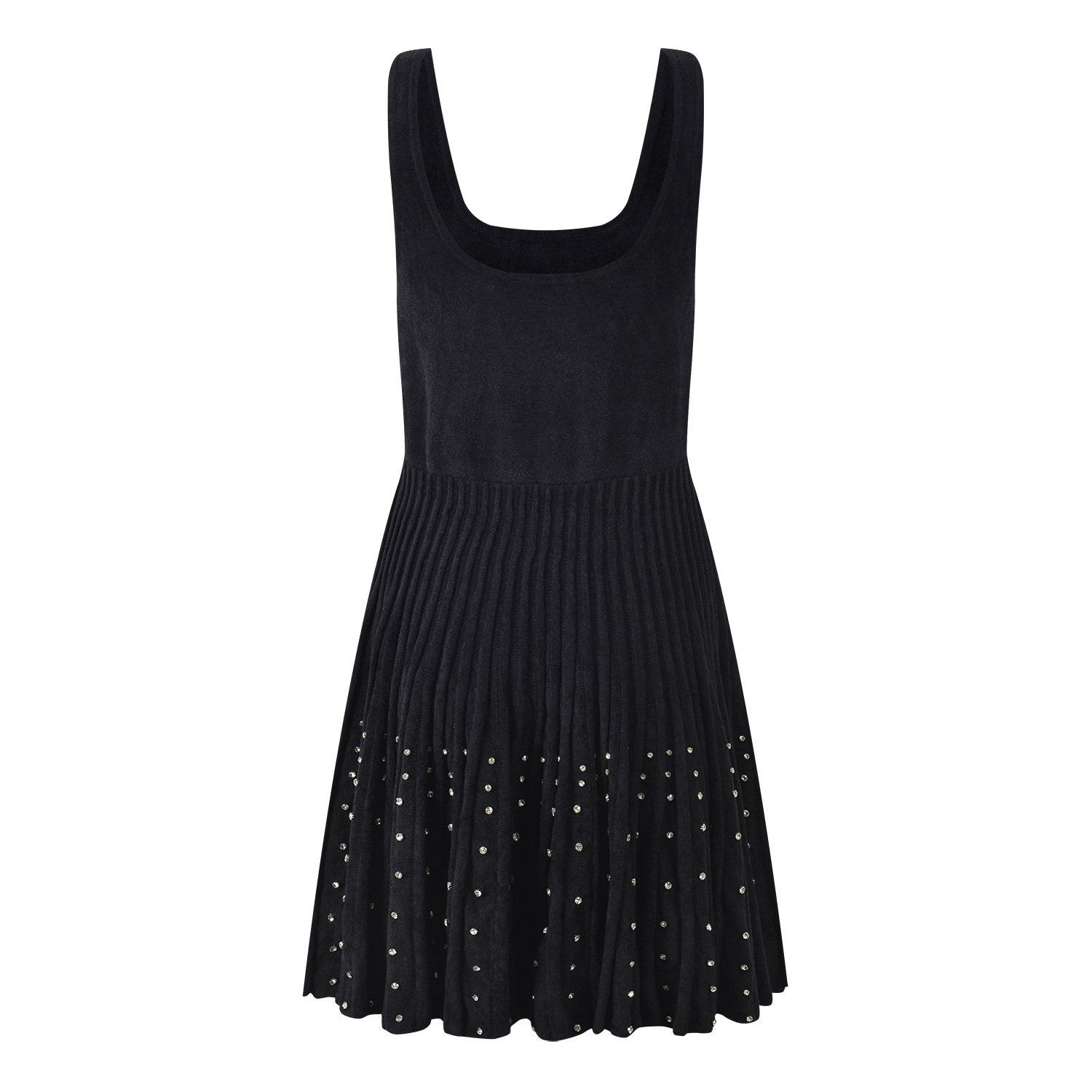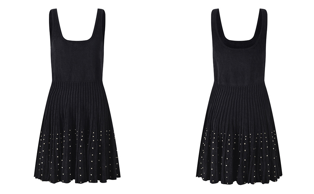 2025 Autumn/Winter New French Black Folded Skirt Imitation Diamond Slimming and Slimming U Neck Tank Top Knitted Dress
