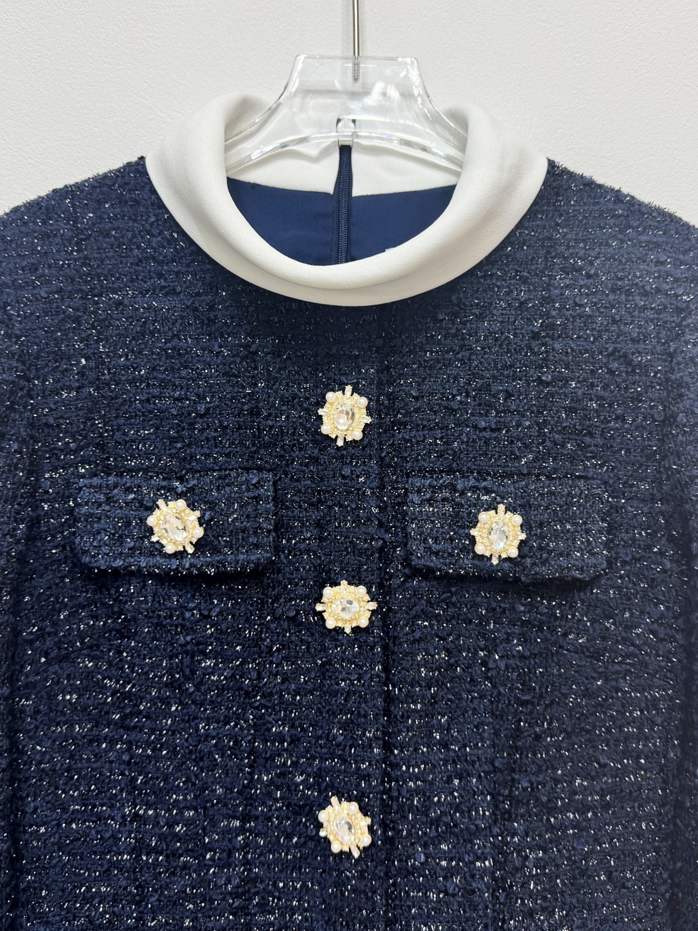 2025 Autumn-Winter New Model: Elegant and Stylish Lace-Trimmed Long Dress in Deep Navy Blue