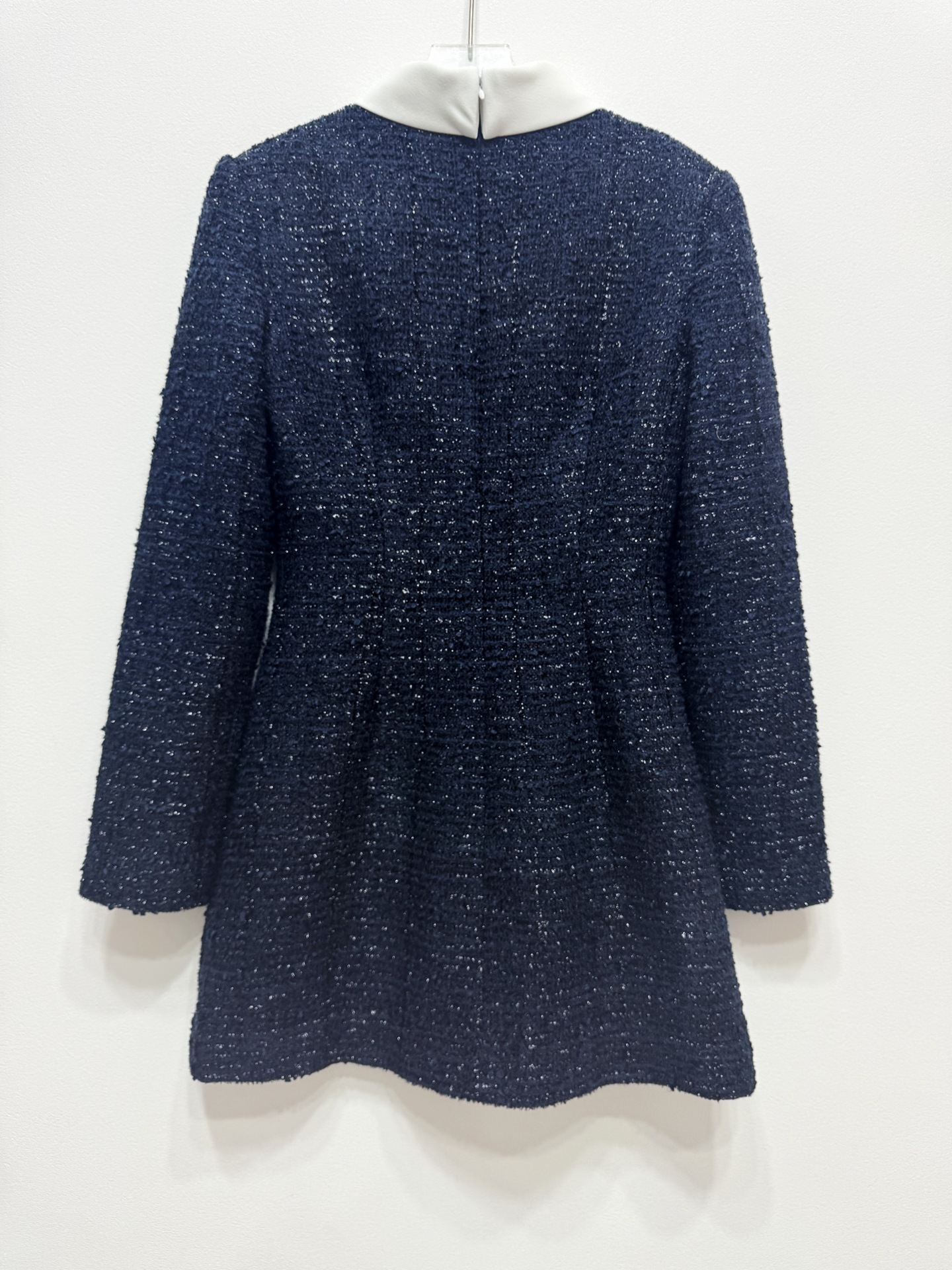 2025 Autumn-Winter New Model: Elegant and Stylish Lace-Trimmed Long Dress in Deep Navy Blue