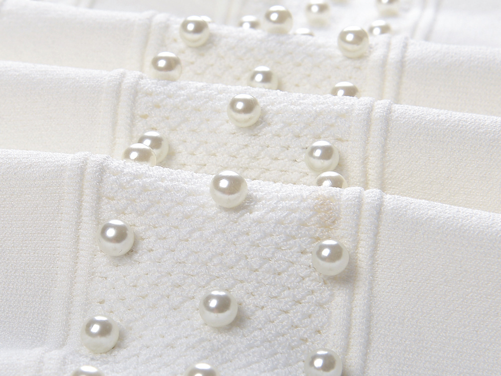 2025 Autumn-Winter New Model: Embellished Pearl, Elegant, Round Neck, Short Sleeve, Open Cardigan, Slim Fit, Slender Backless Dress Set