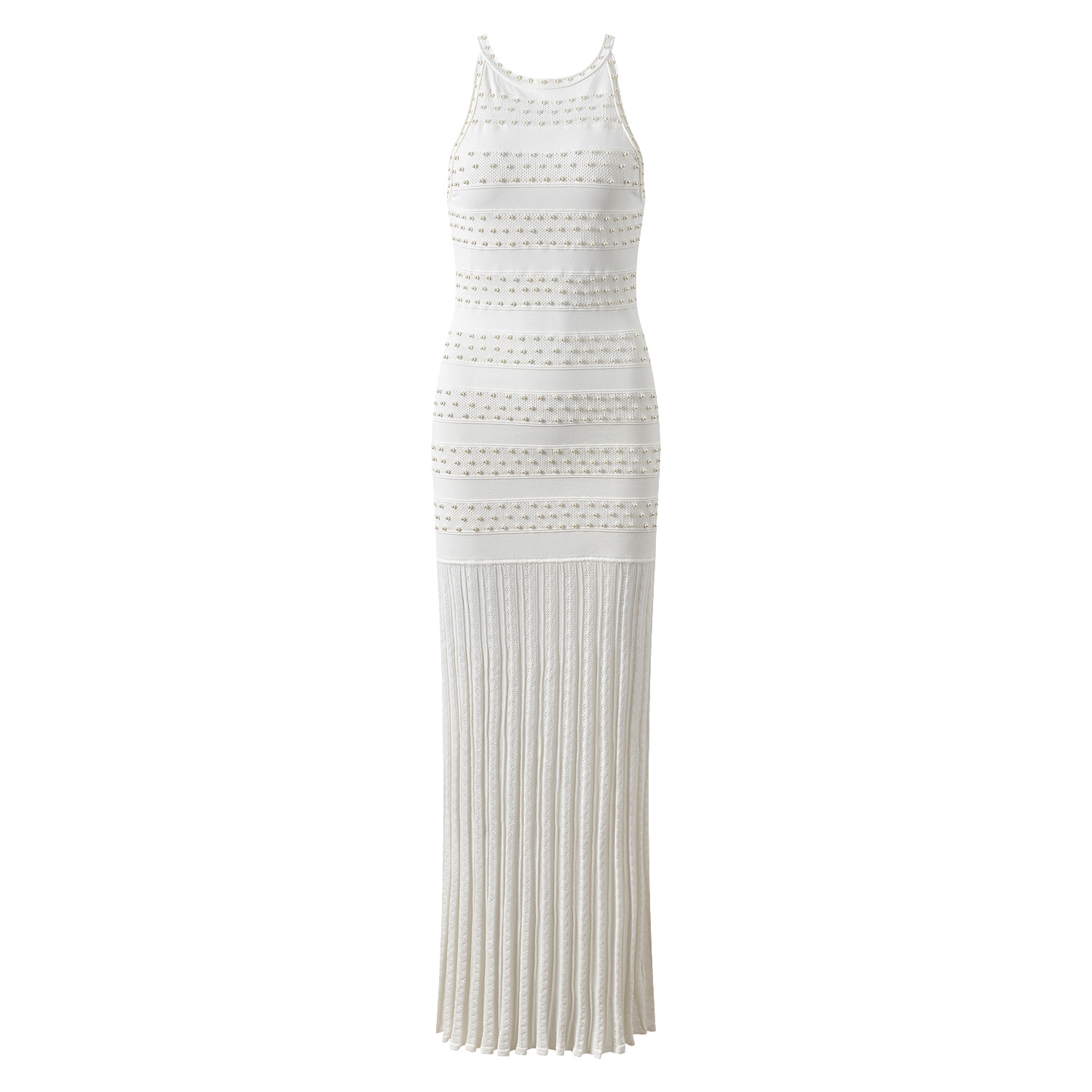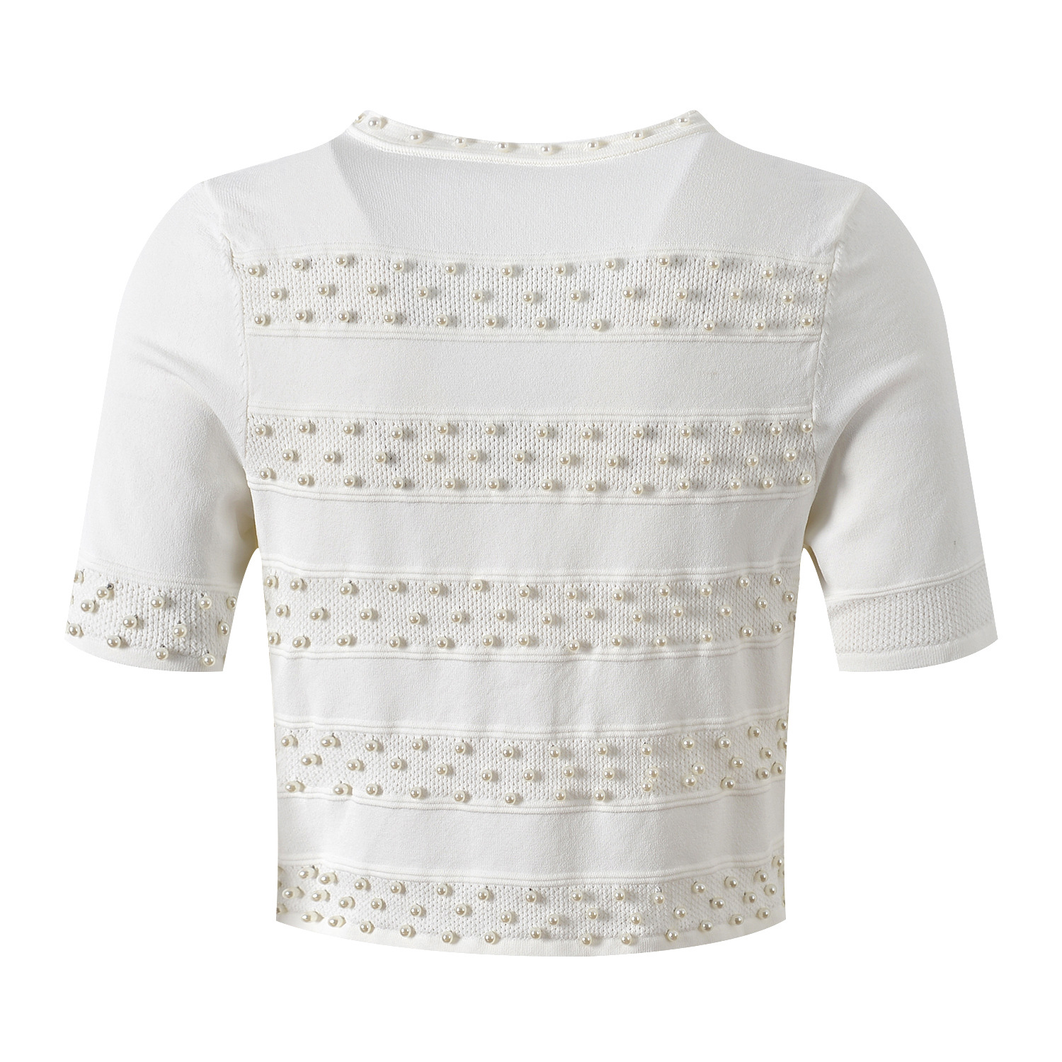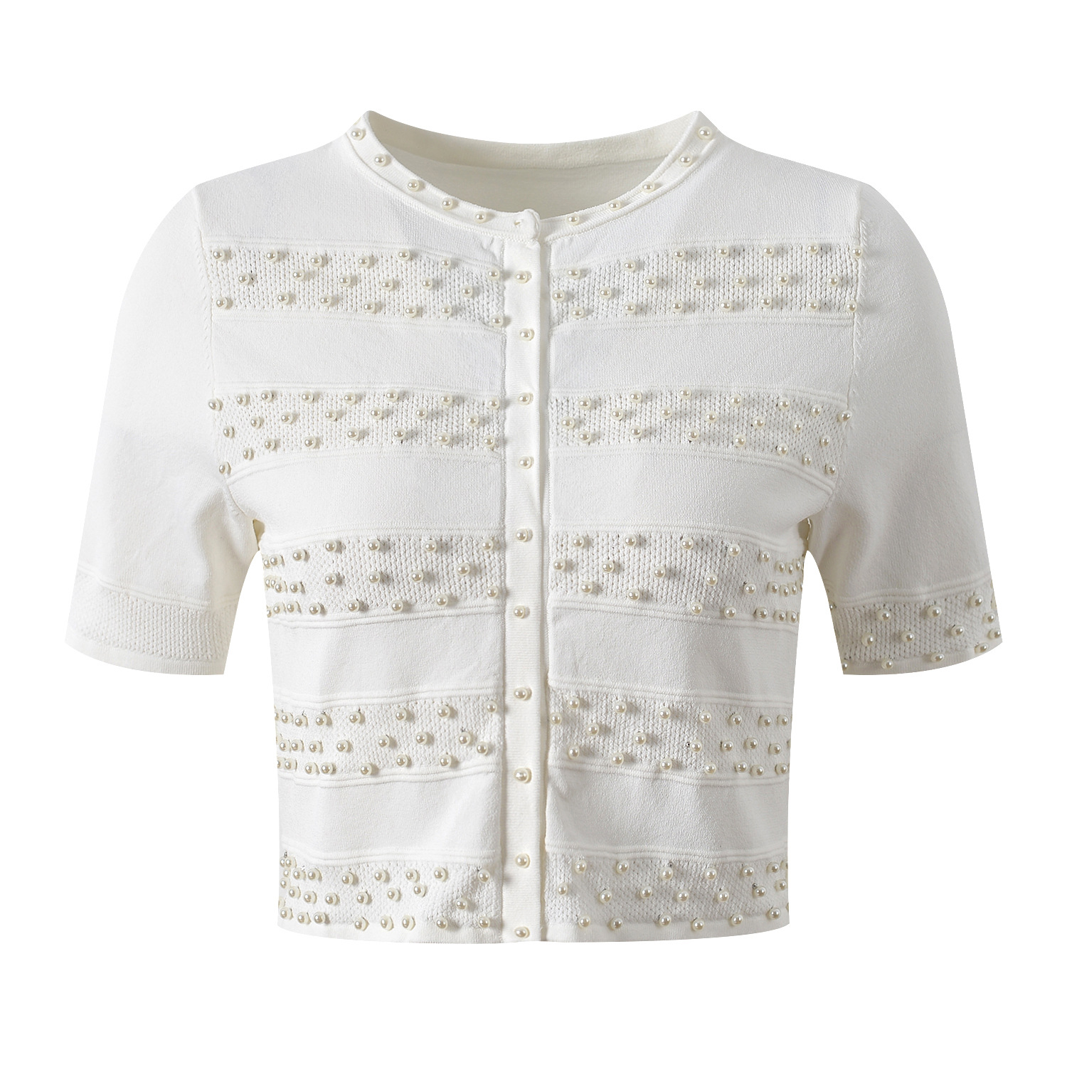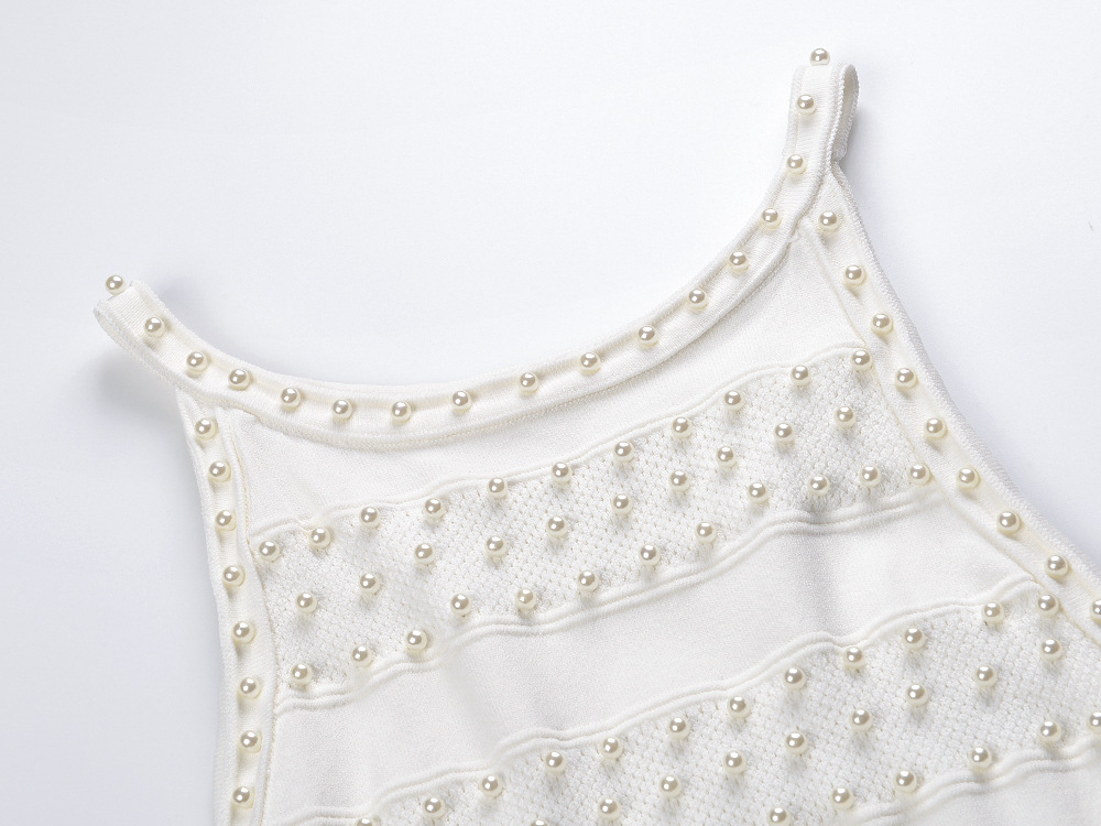 2025 Autumn-Winter New Model: Embellished Pearl, Elegant, Round Neck, Short Sleeve, Open Cardigan, Slim Fit, Slender Backless Dress Set