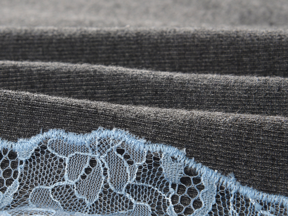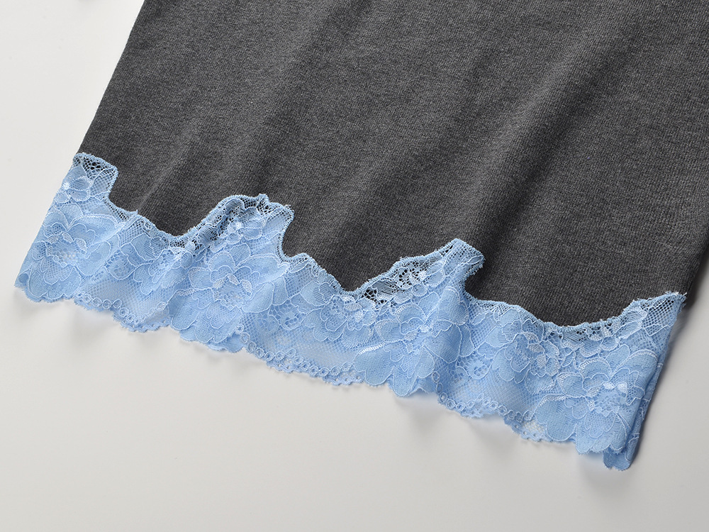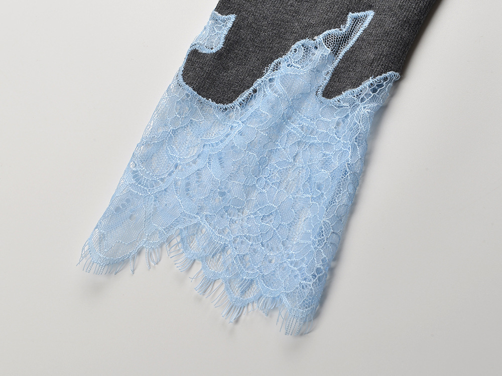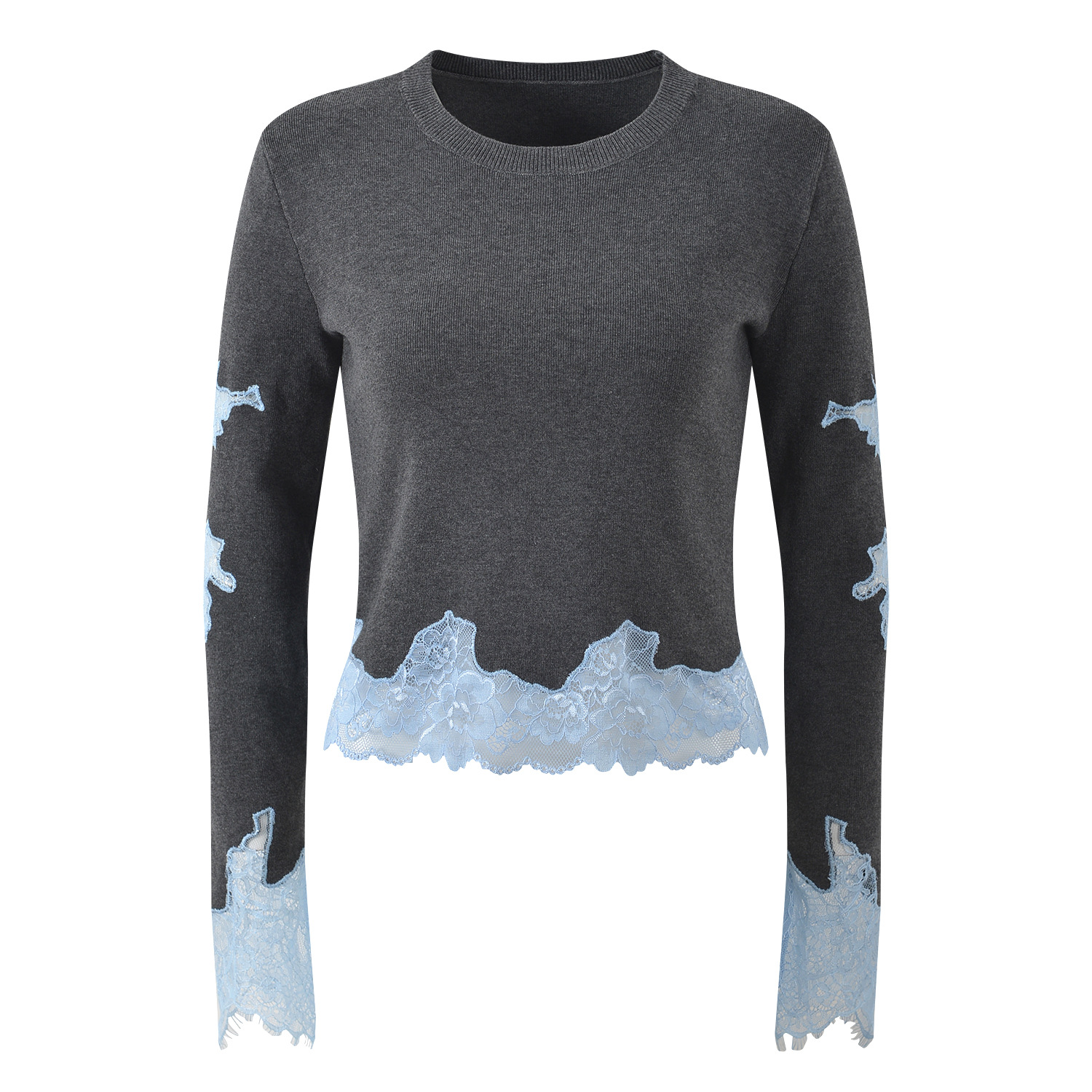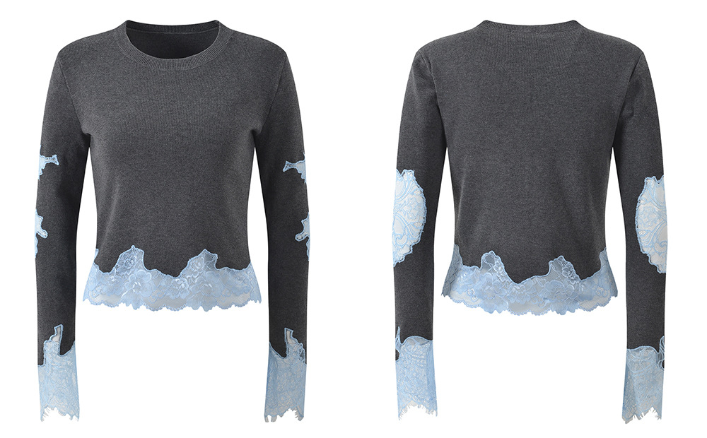 2025 early autumn new design sense gray hit blue lace splicing wool blend slim short knit sweater topAvailability: 500 in stock (can be backordered)