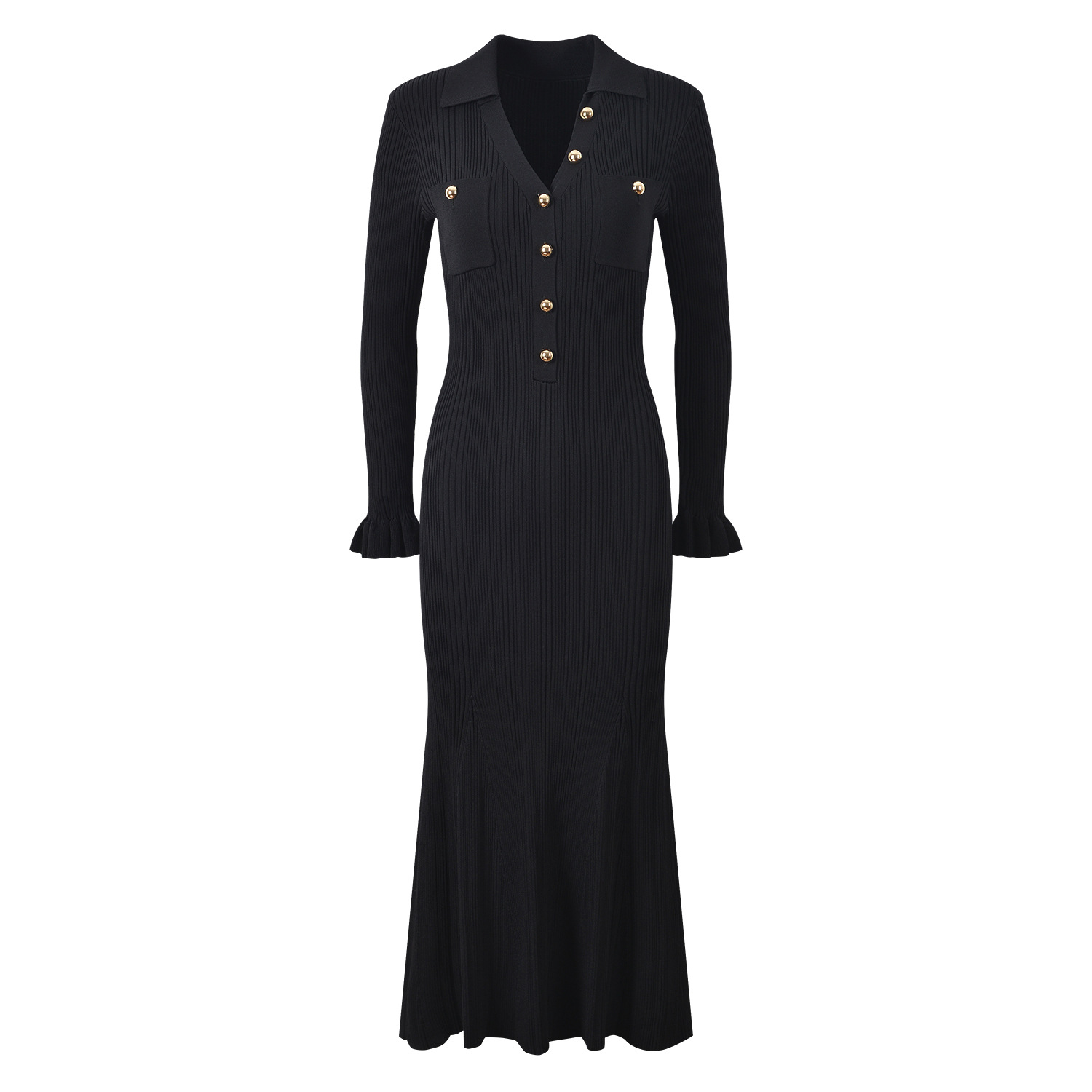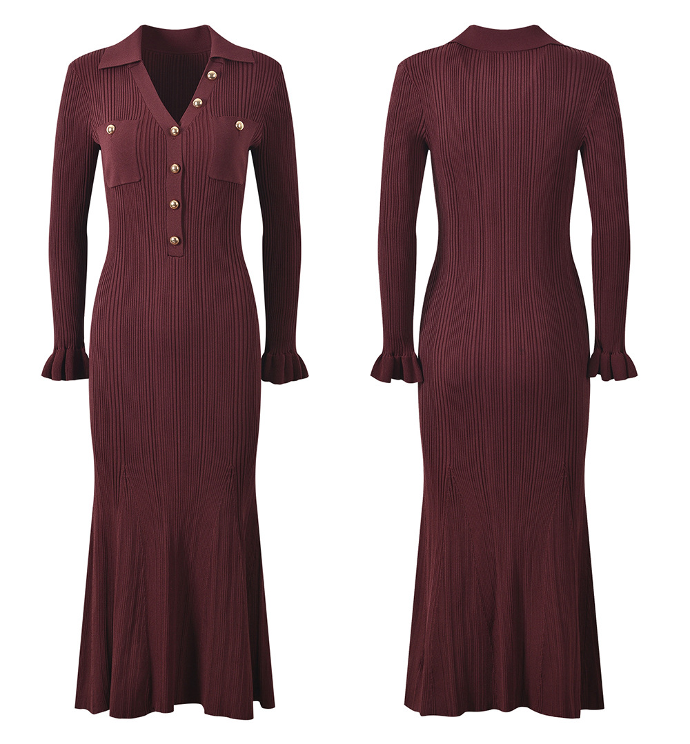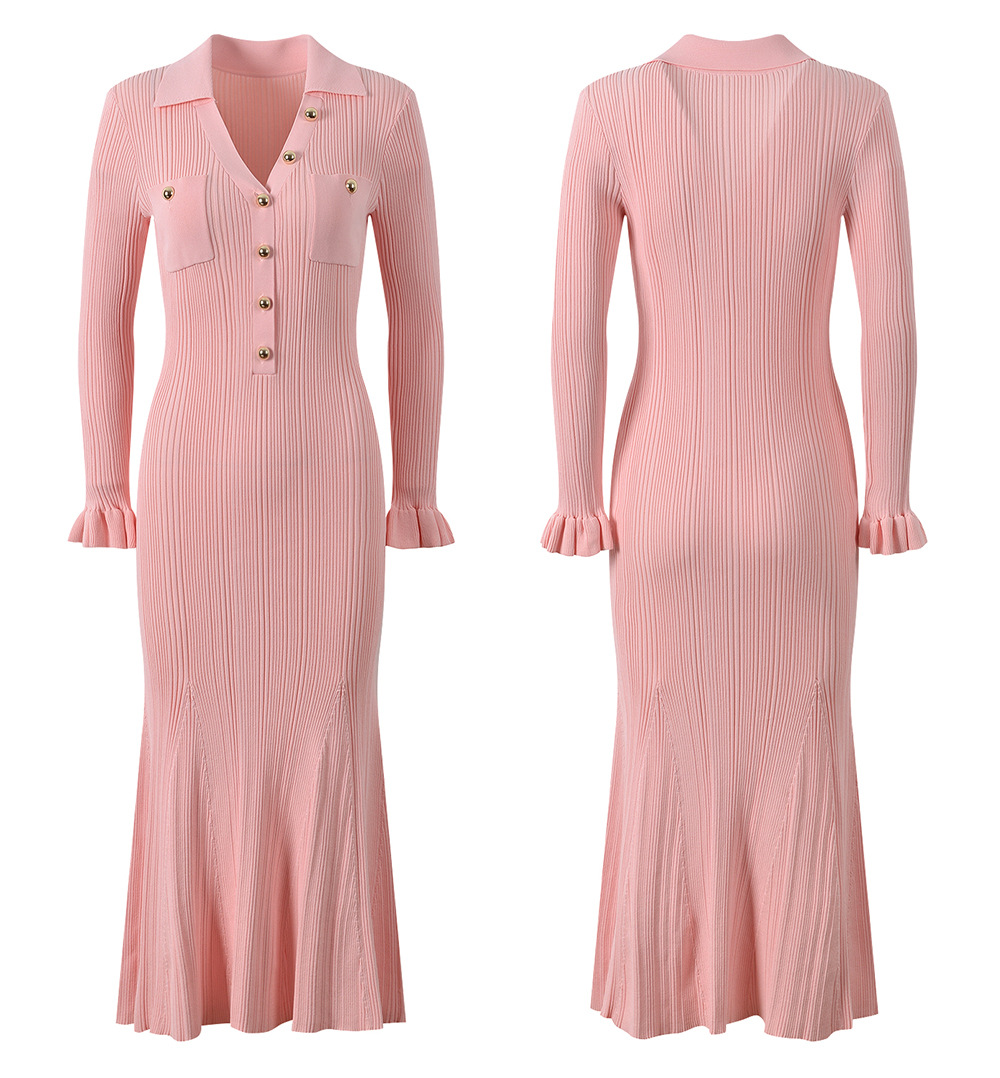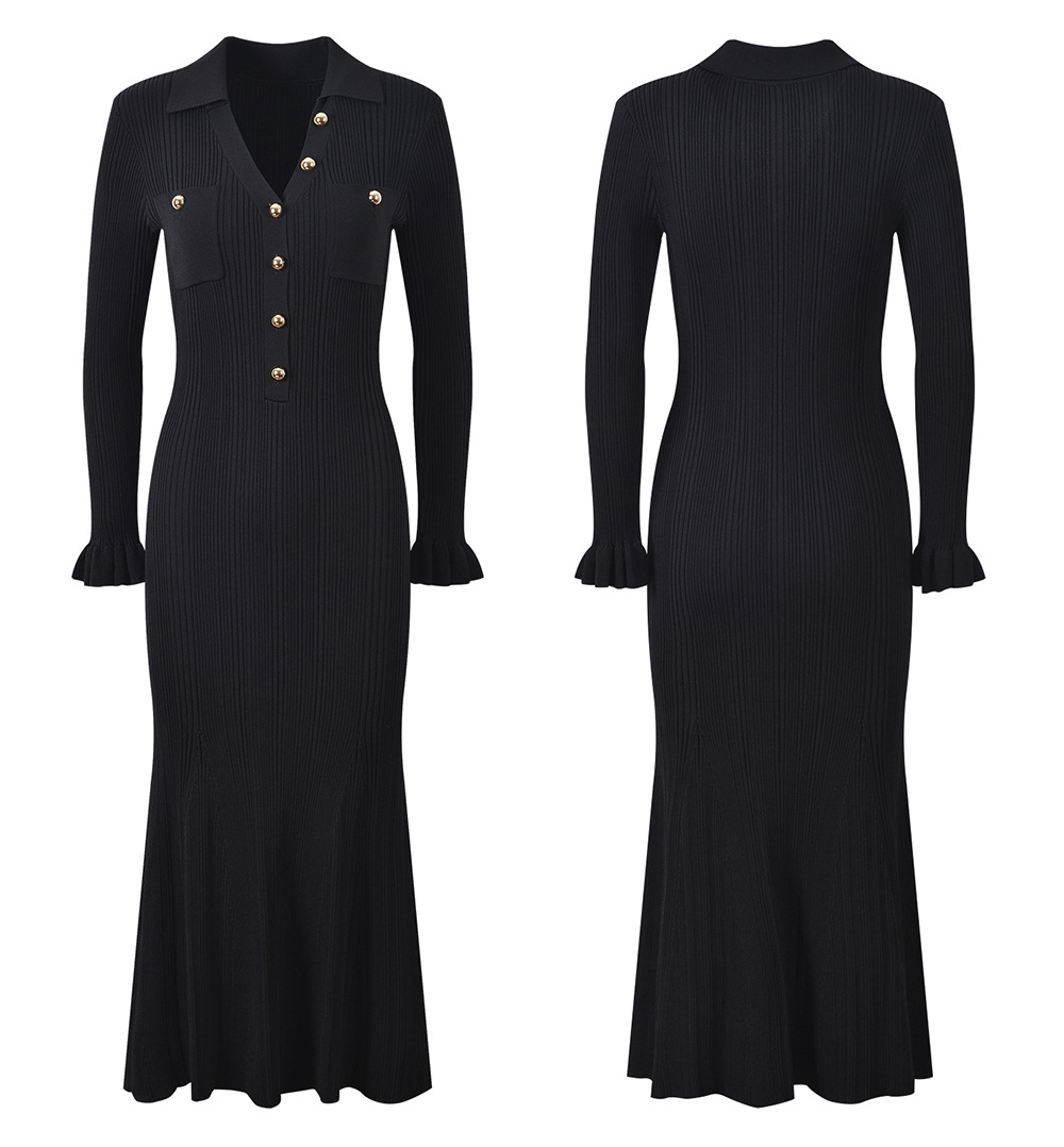2025 Fall New Fashion French Metal Button Elegant Stylish V-Neck Slim Fit Goddess-Inspired Long A-Line Fish Tail Dress 5250366