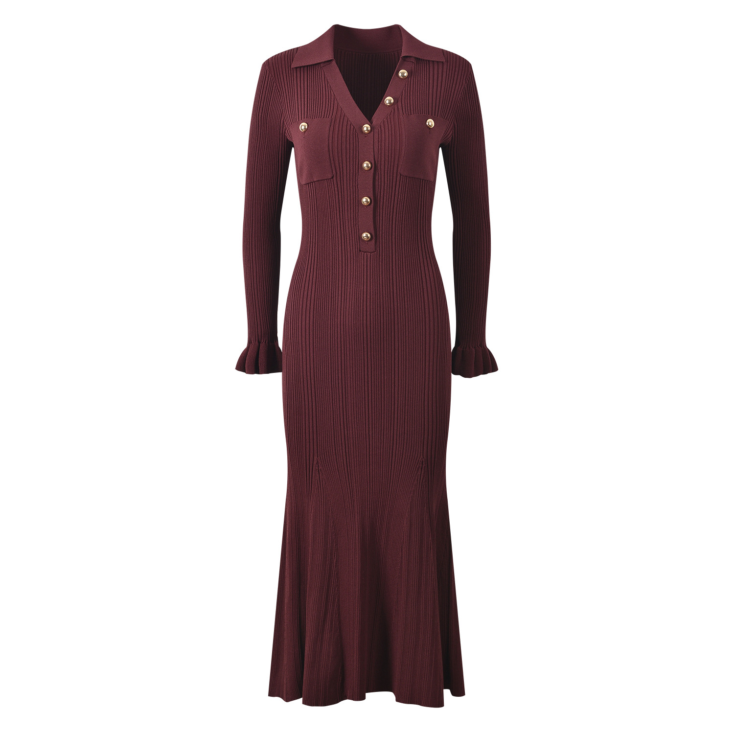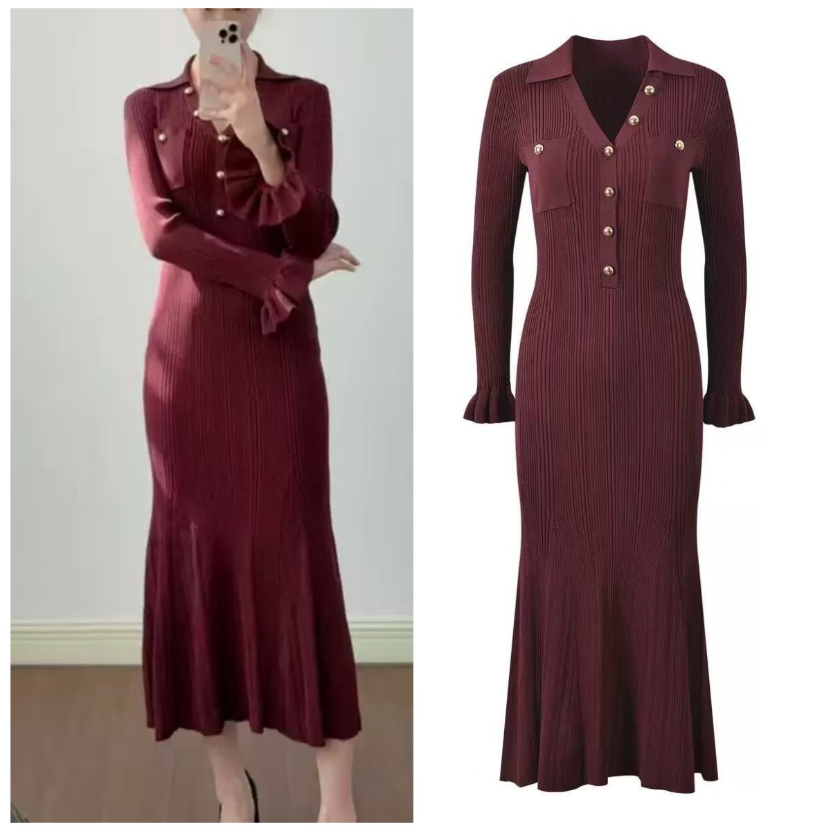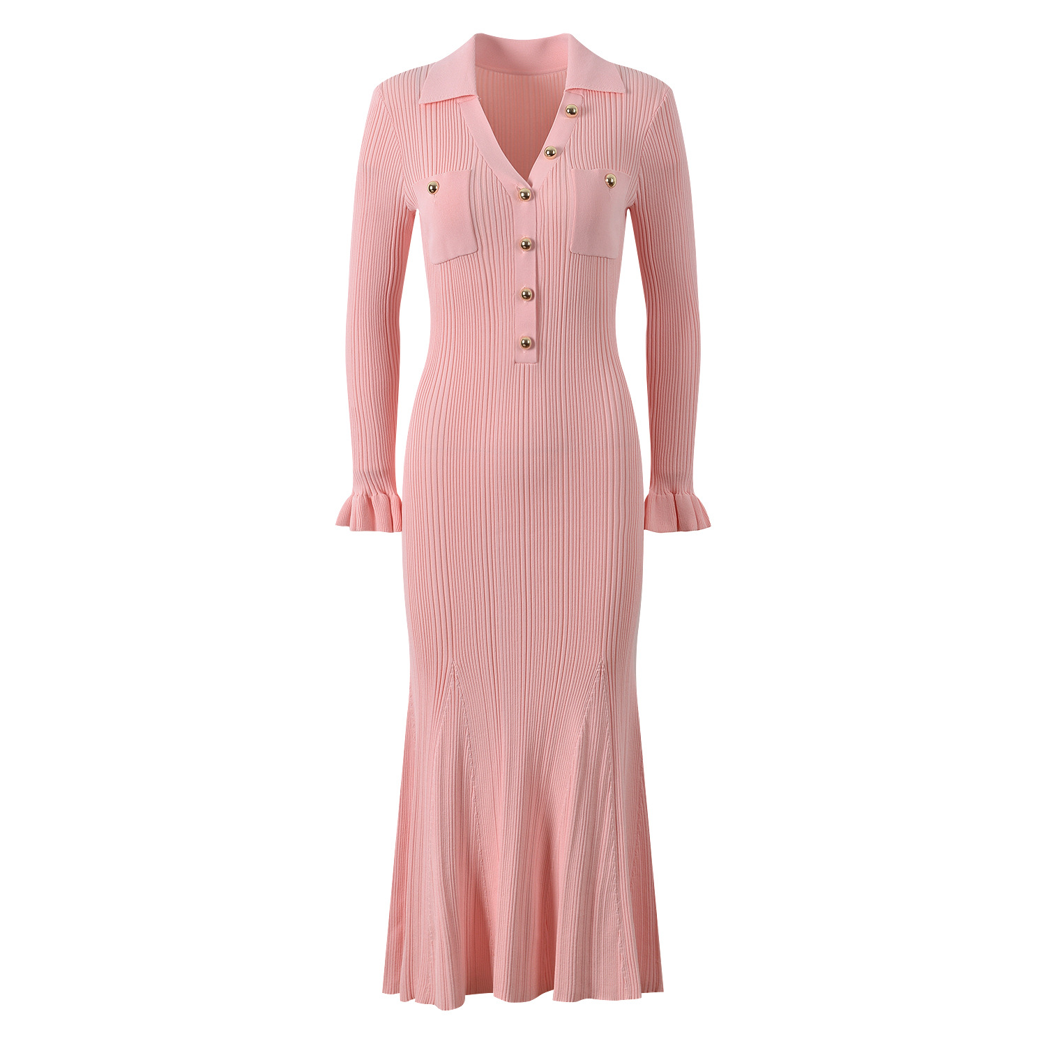 2025 Fall New Fashion French Metal Button Elegant Stylish V-Neck Slim Fit Goddess-Inspired Long A-Line Fish Tail Dress 5250366