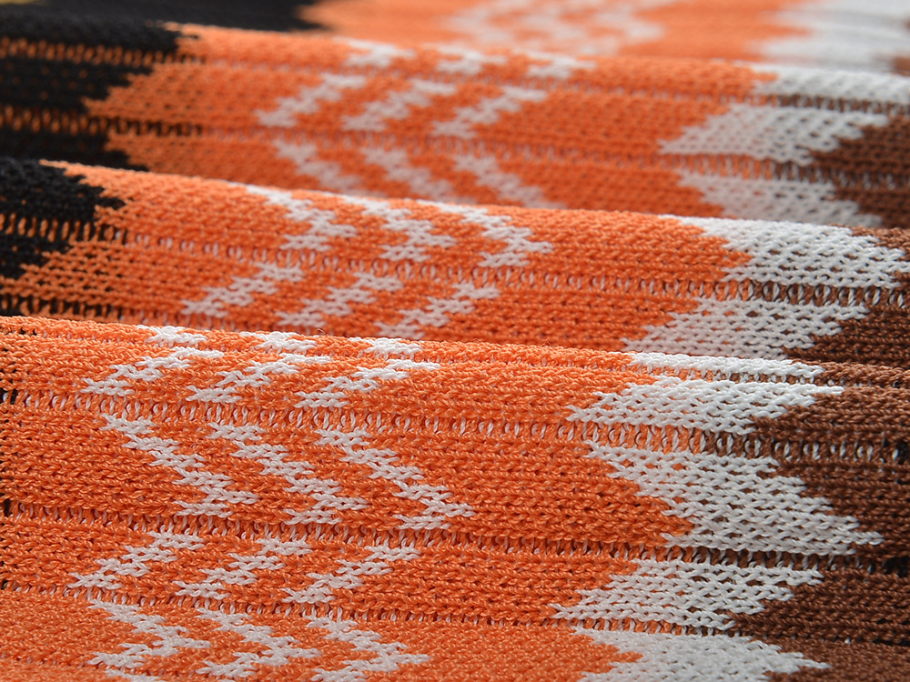 2025 Fall-Winter New Collection Color-Blocked Wave Pattern Stylish Elegant Slim-Fit Long-Length Knitted Dress
