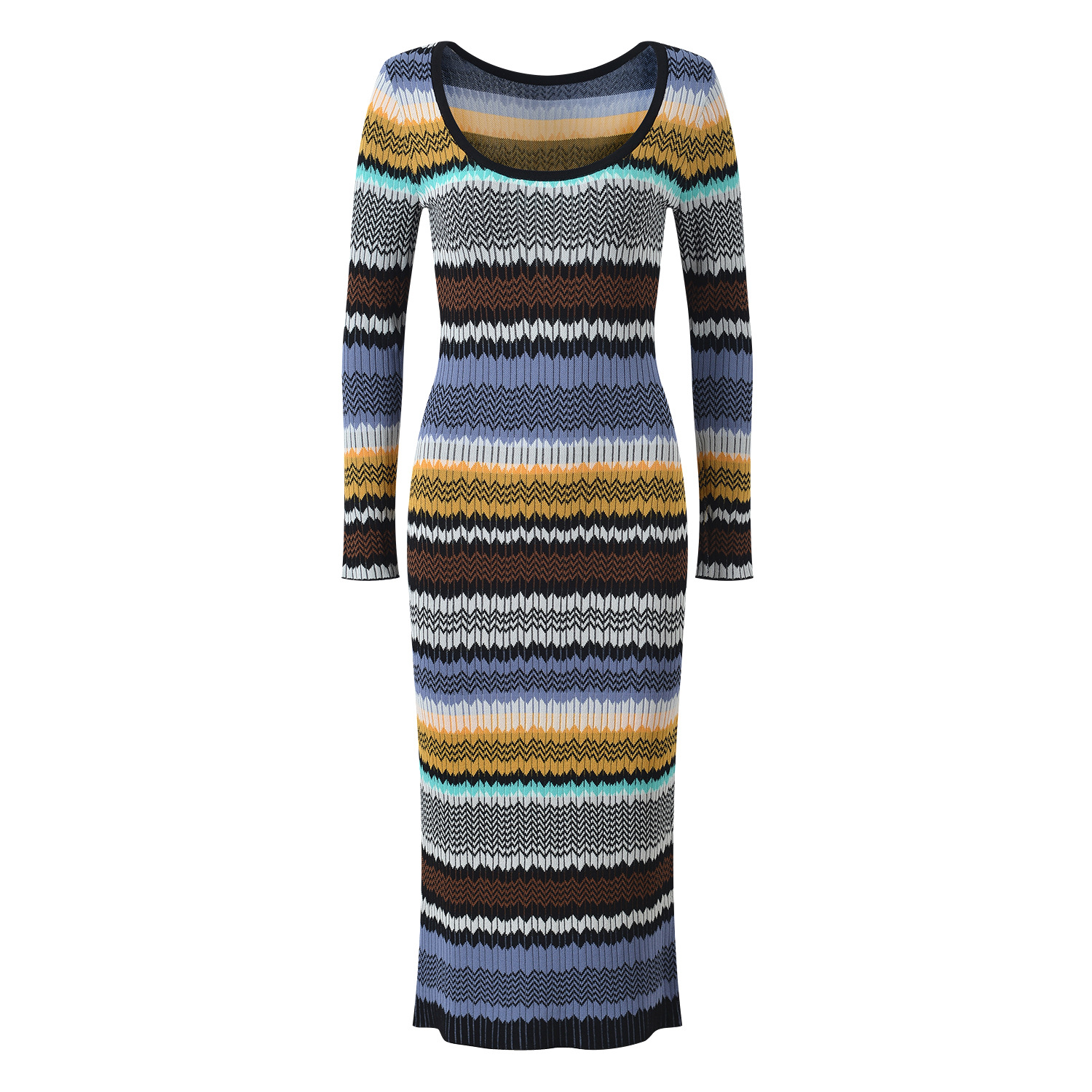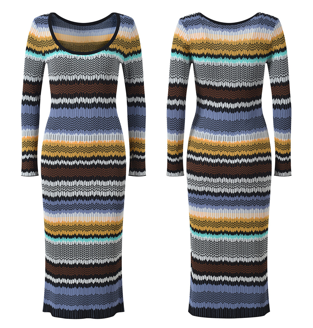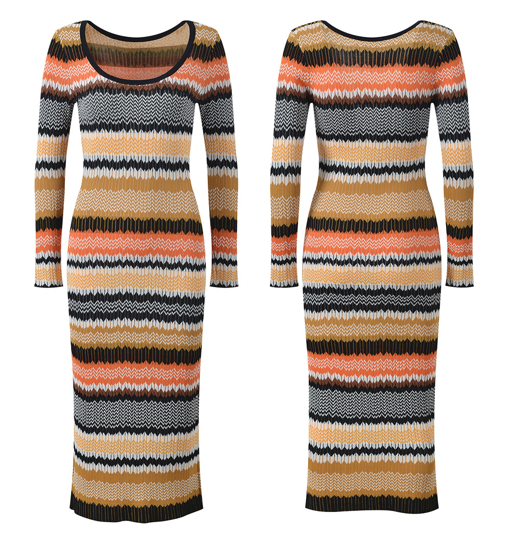 2025 Fall-Winter New Collection Color-Blocked Wave Pattern Stylish Elegant Slim-Fit Long-Length Knitted Dress