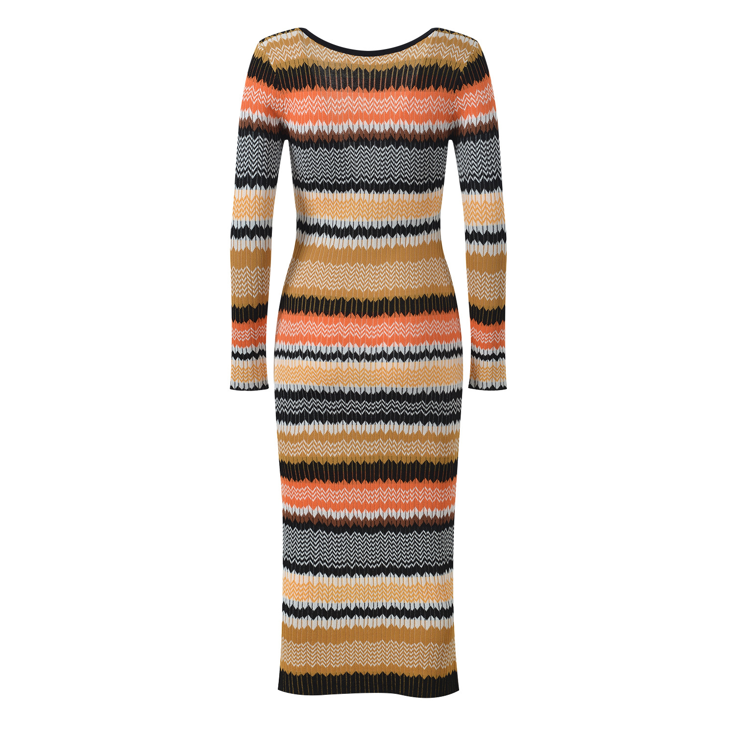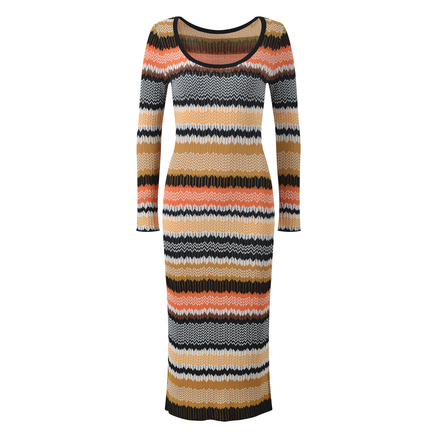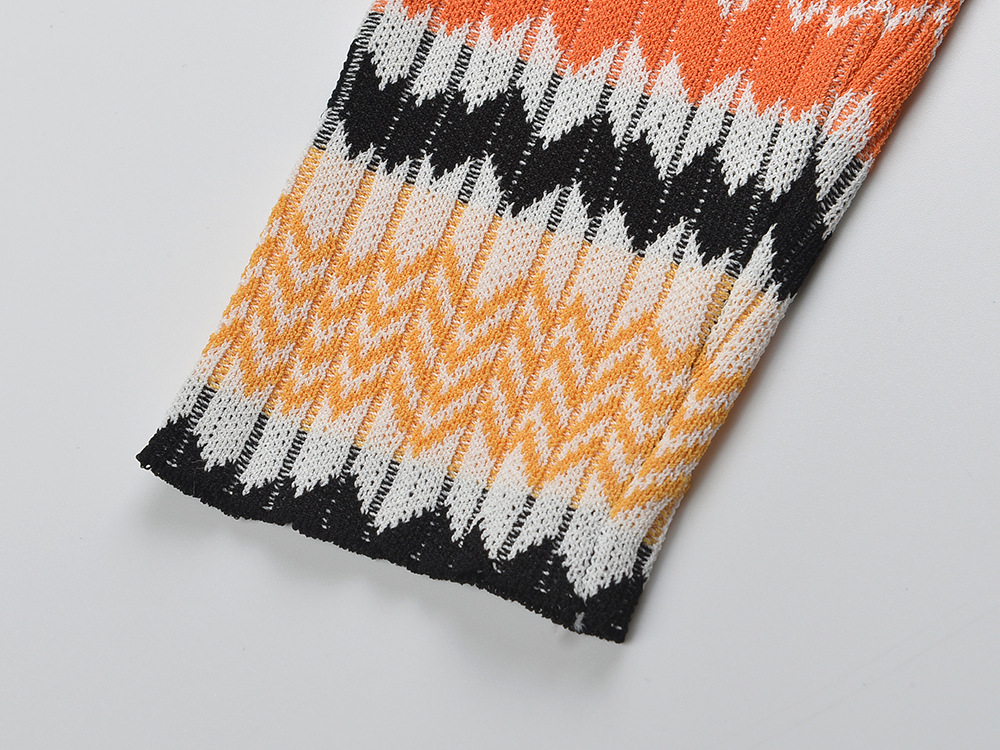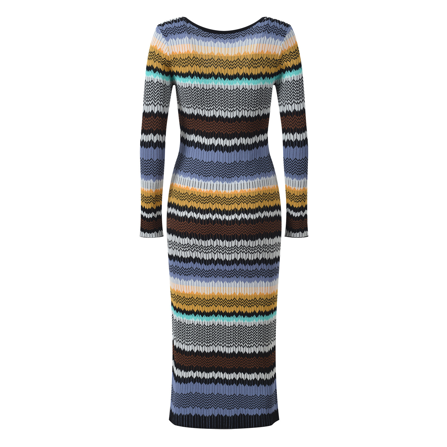 2025 Fall-Winter New Collection Color-Blocked Wave Pattern Stylish Elegant Slim-Fit Long-Length Knitted Dress