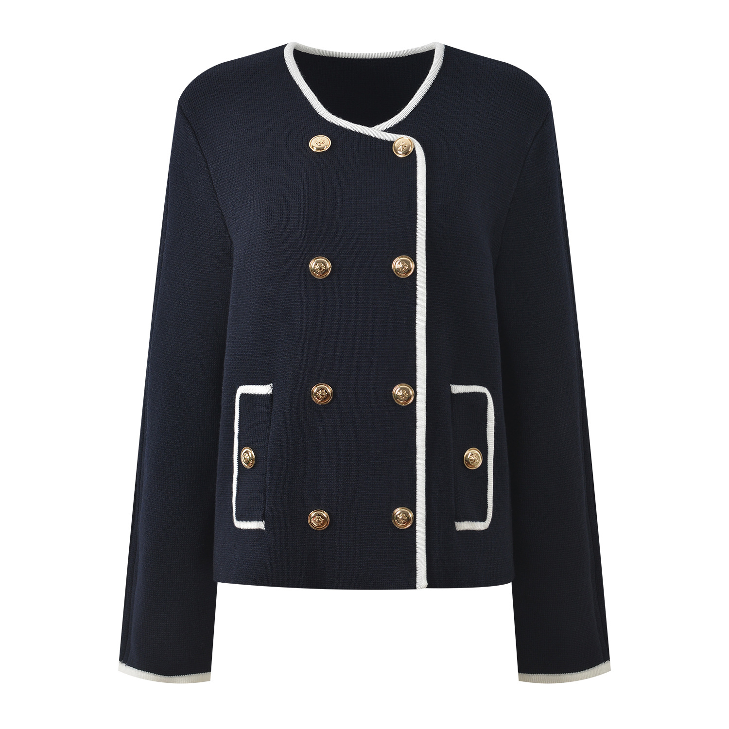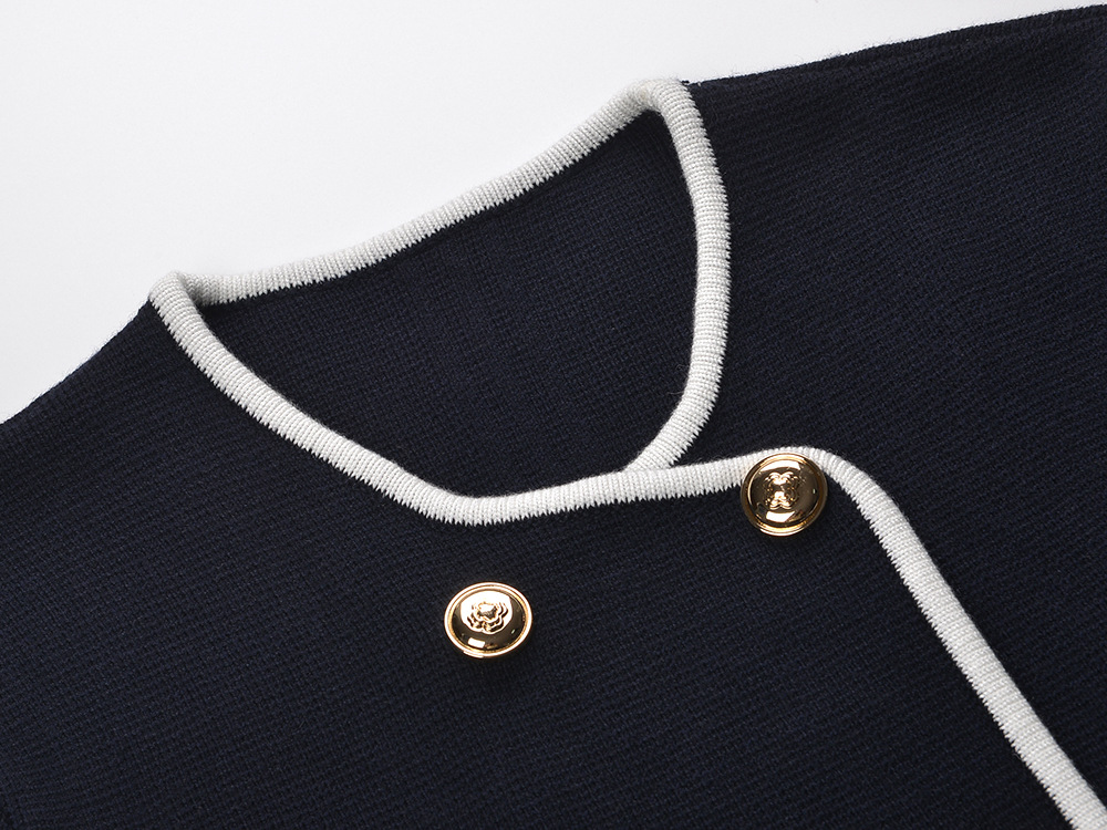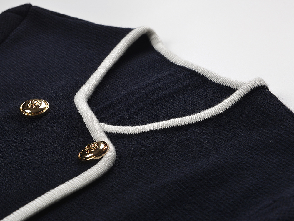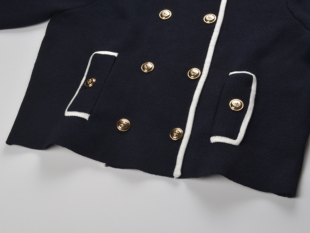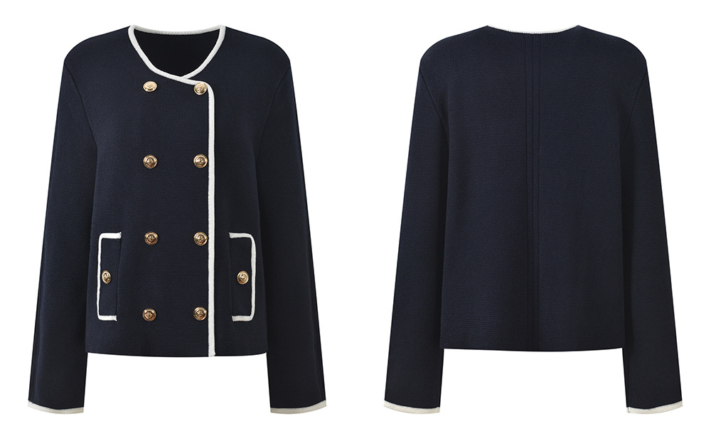 2025 Fall-Winter New Model: Contrasting Colors, Round Neck, Double Row of Metal Buttons, Elegant and Stylish, Suitable for Everyday Wear, Versatile, Short-Length Cardigan Jacket 5250371