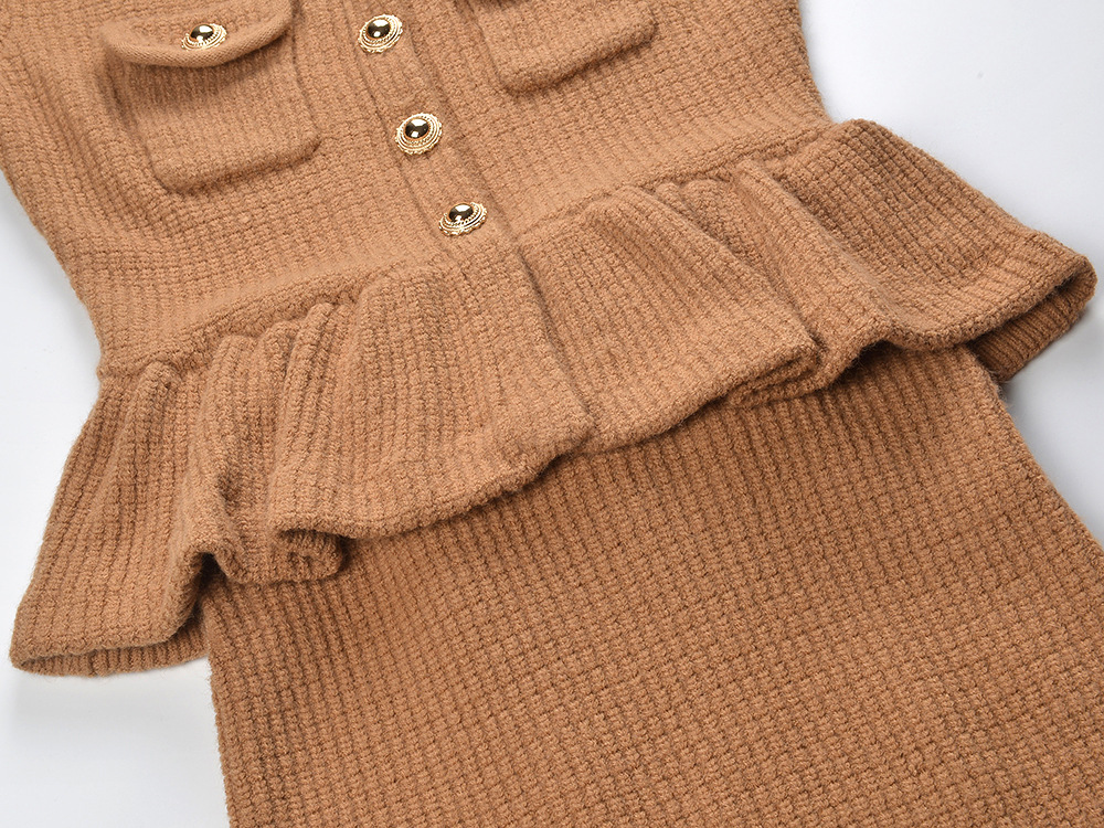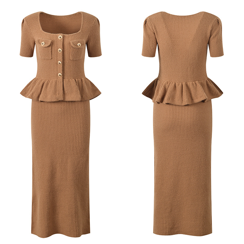 2025 Fall-Winter New Model: Elegant, Slim-Fit, Lotus-Edge, Two-Layer Short-Sleeve Lace Dress with Square Collar 5250329