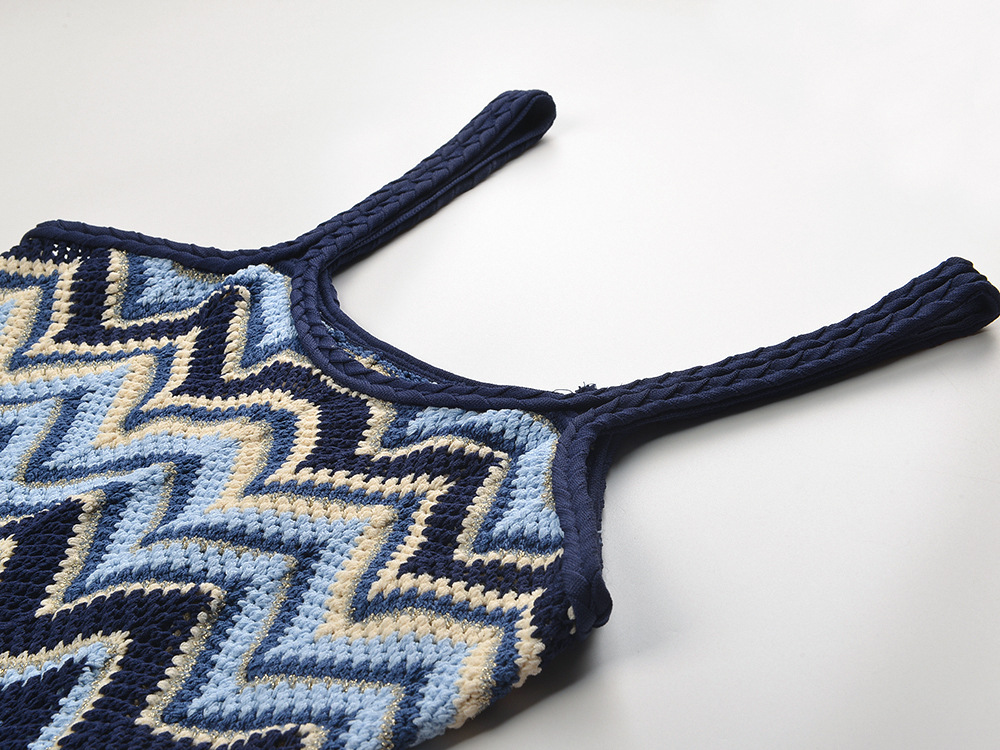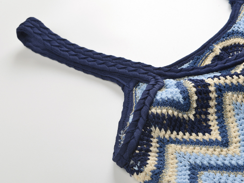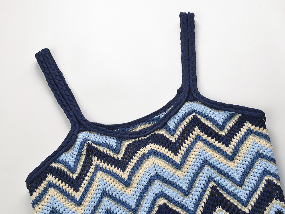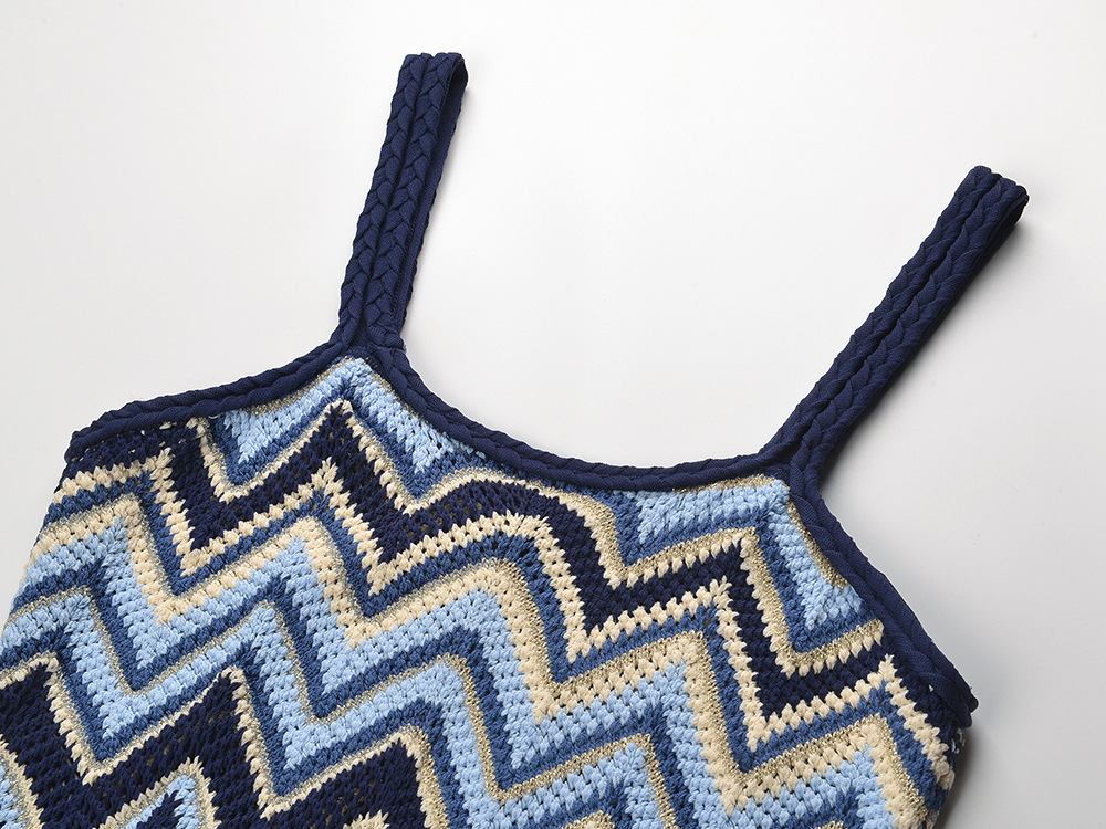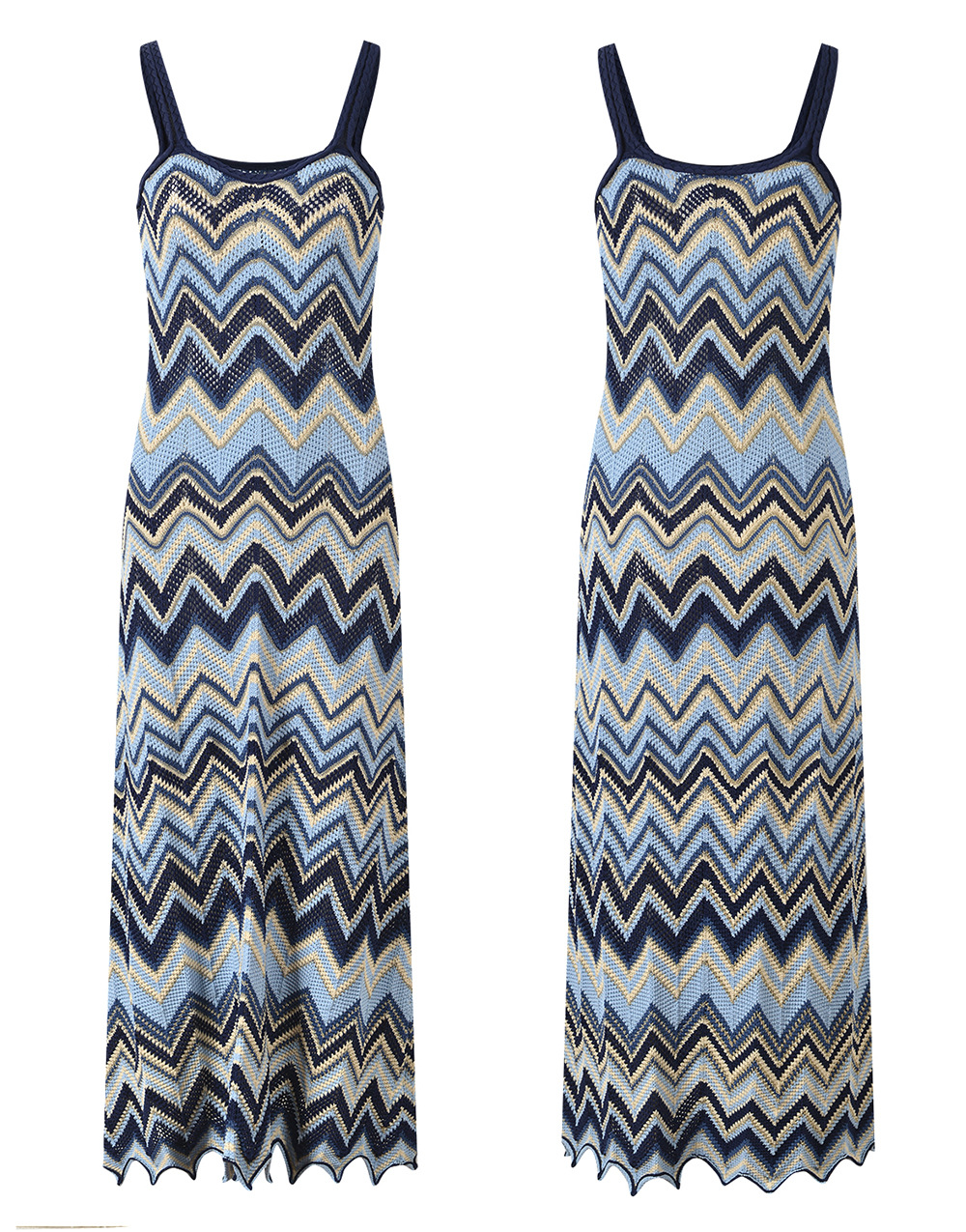 2025 Spring and Summer Design Wave Pattern Elegant Slimming Long Suspender Dress Seaside Holiday Knitted Dress
