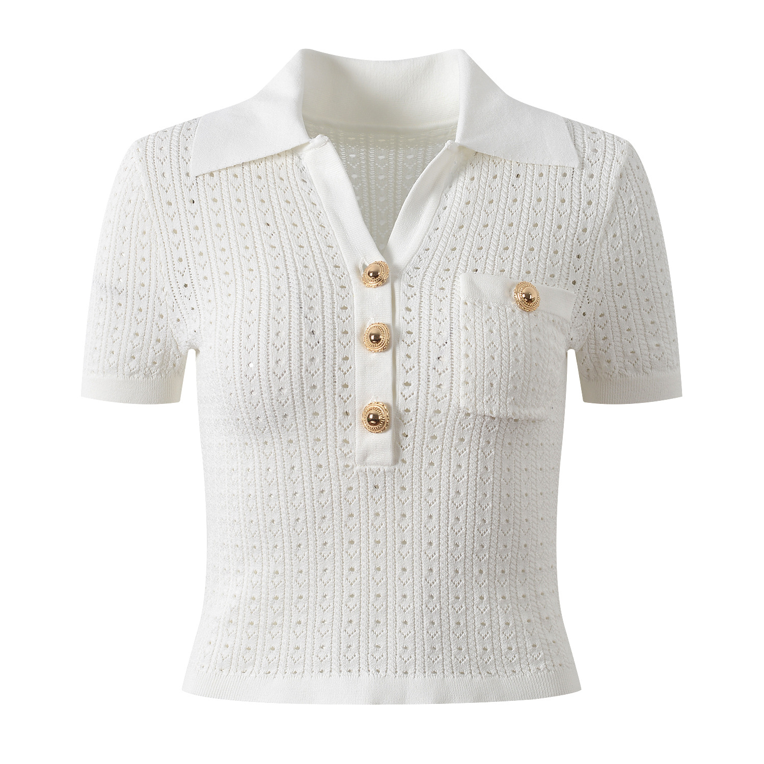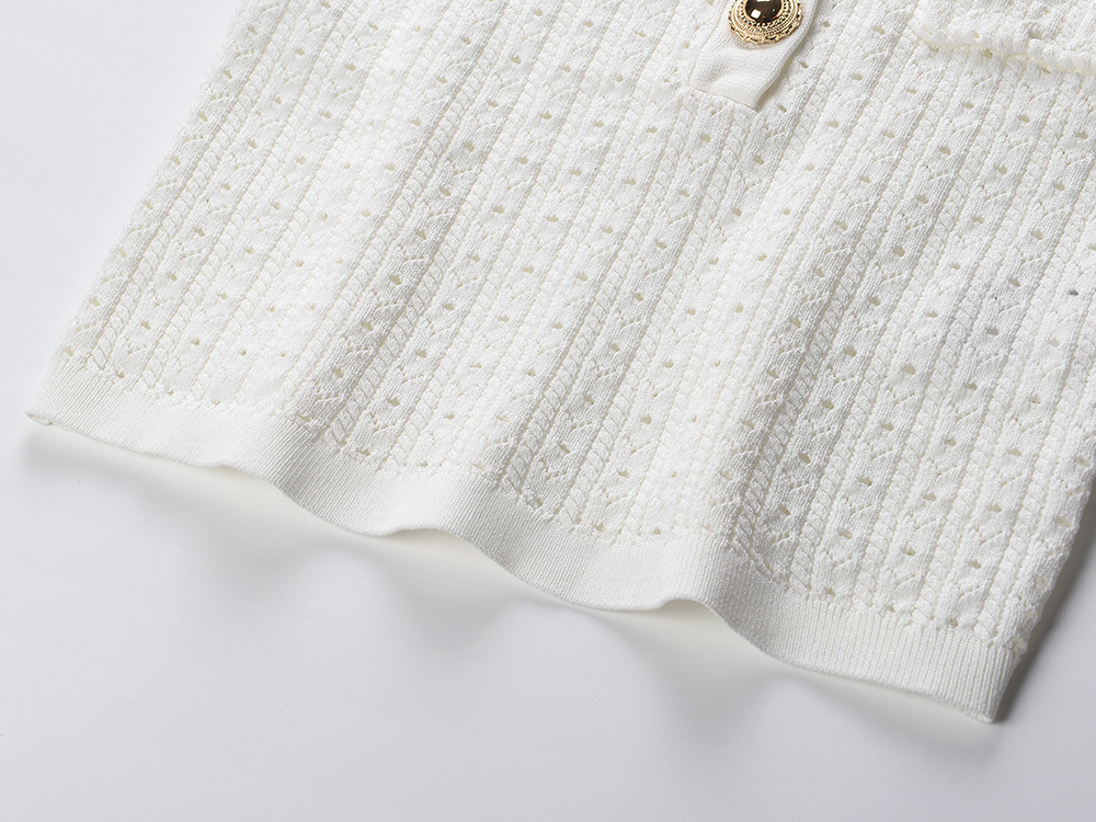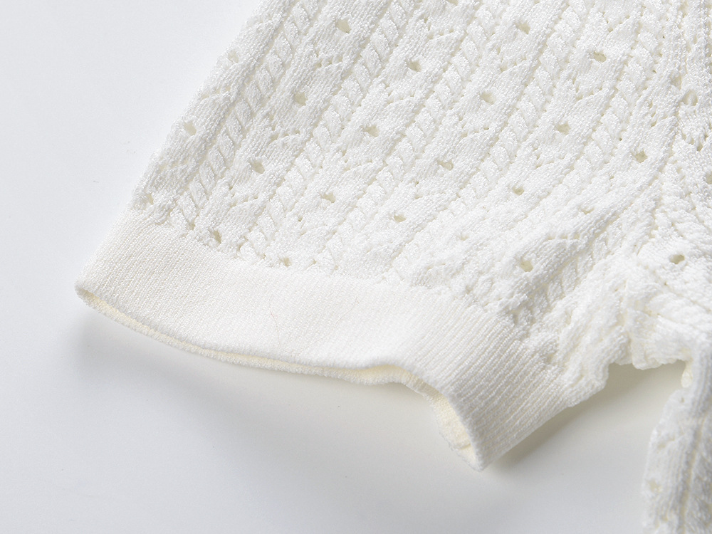 2025 summer new French lady small fragrance style lapel hollow gentle age-reducing slim short knitted sweater topAvailability: 500 in stock (can be backordered)