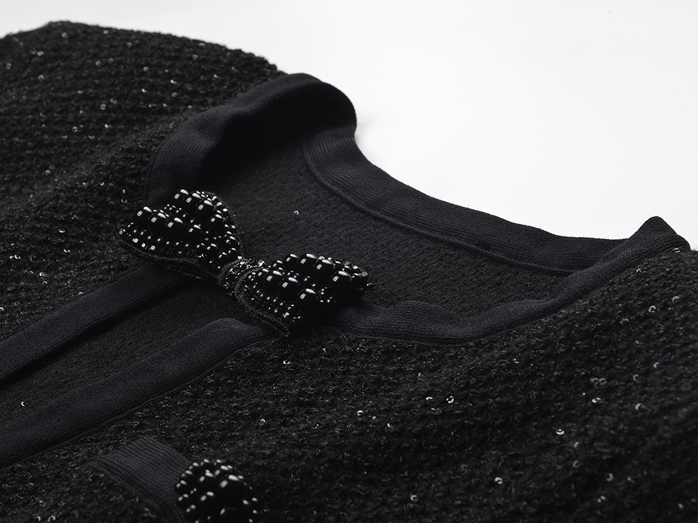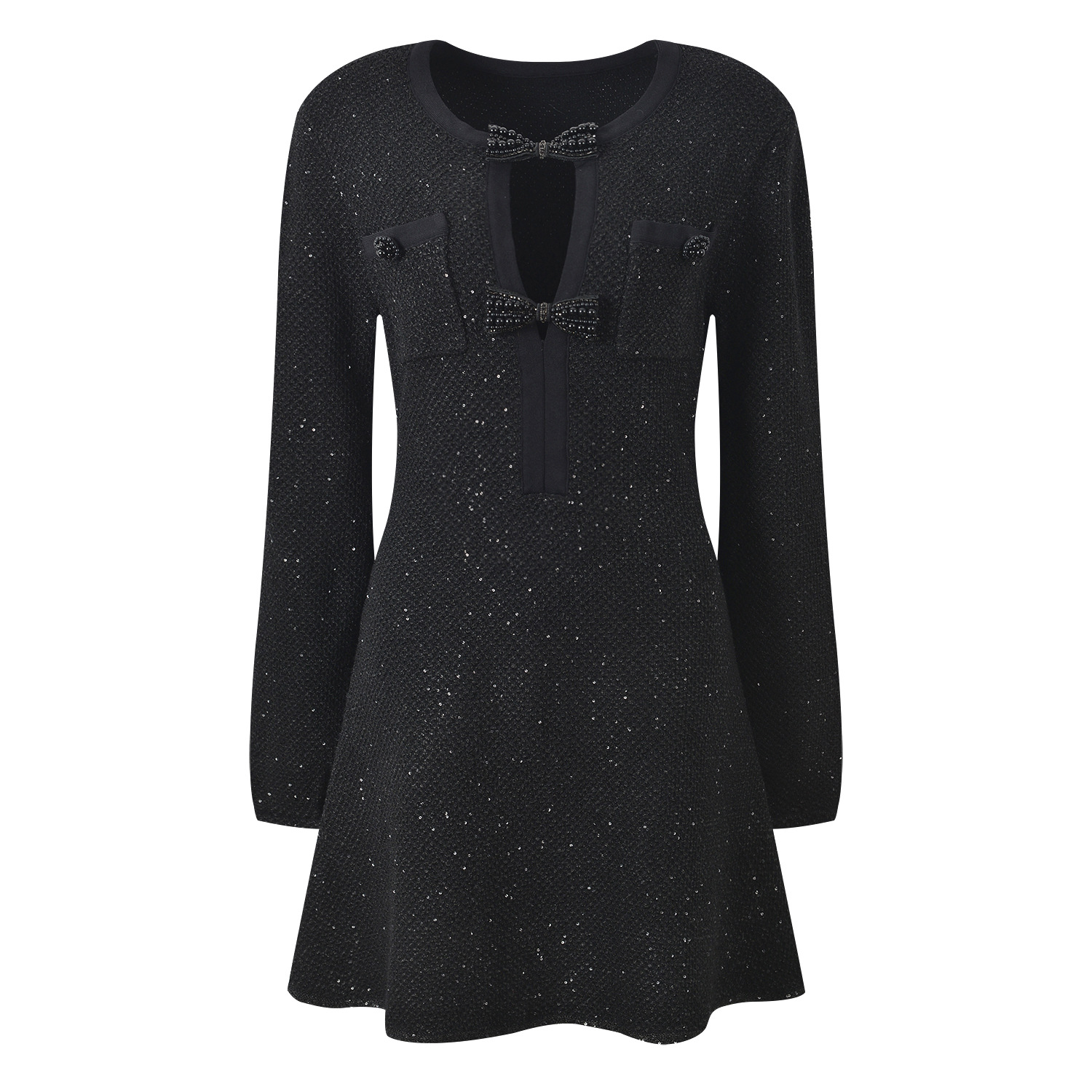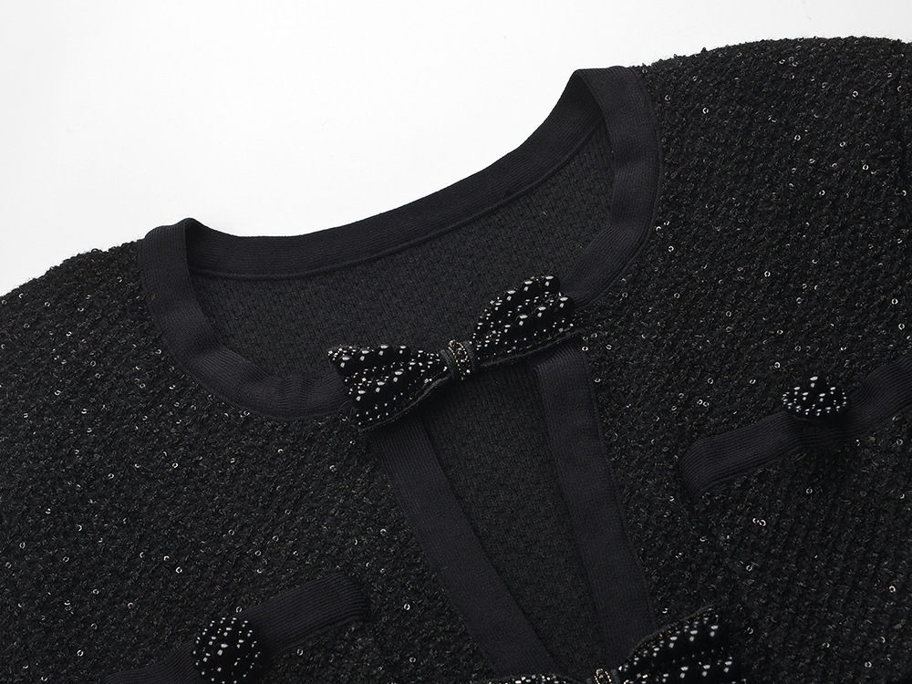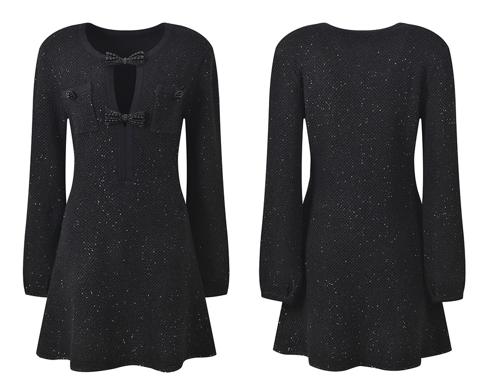 2026 early spring new bow hollow out temperament fashionable slim fit and slimming round neck long sleeved short dress