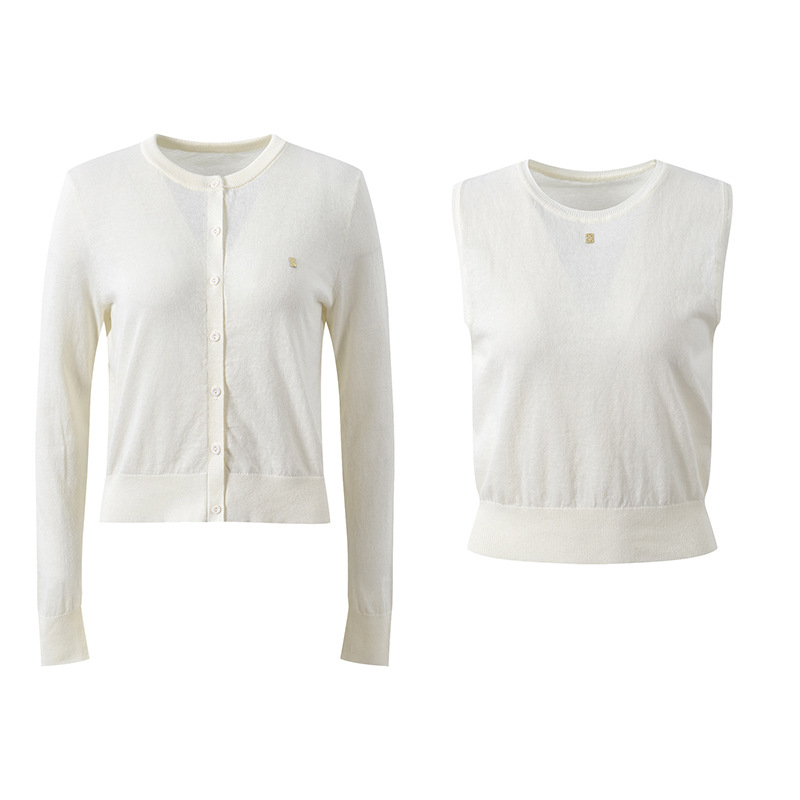2026 Spring New Fashionable Simple Round Neck Long Sleeve Knitted Cardigan+Round Neck Sleeveless Tank Top Two Piece Set