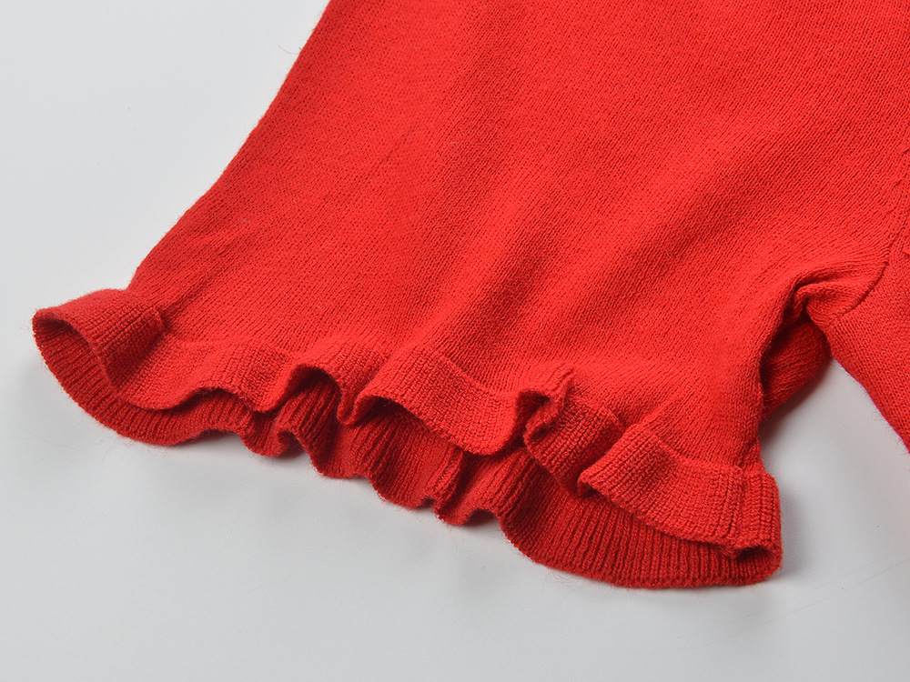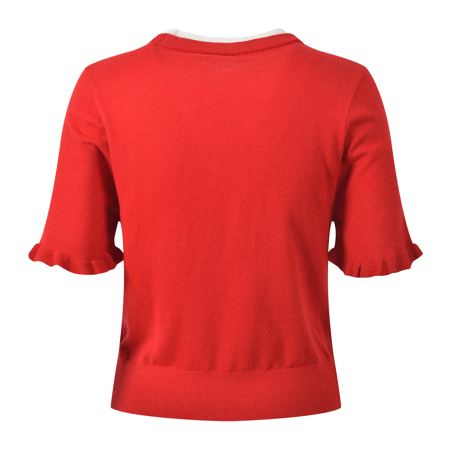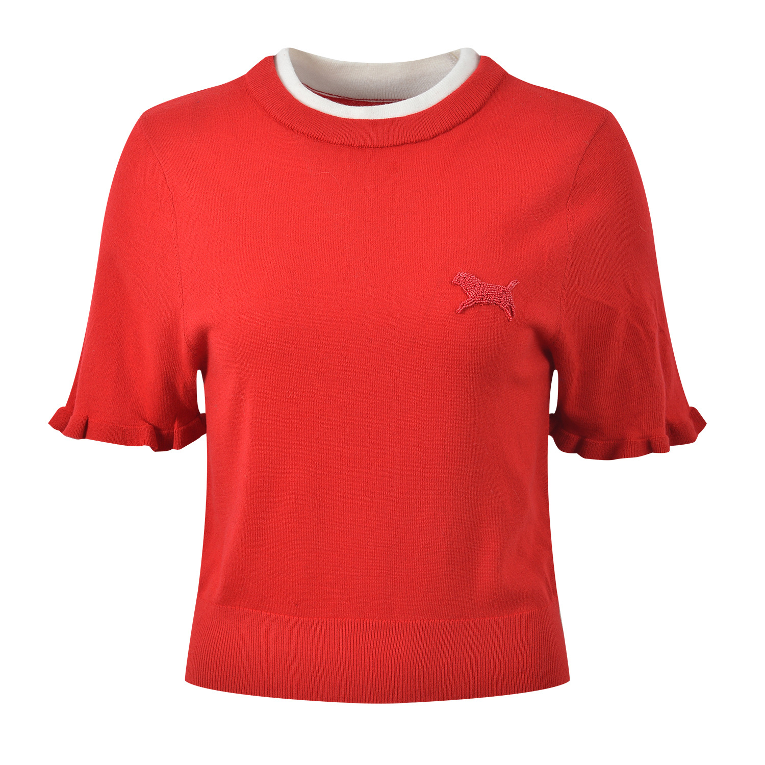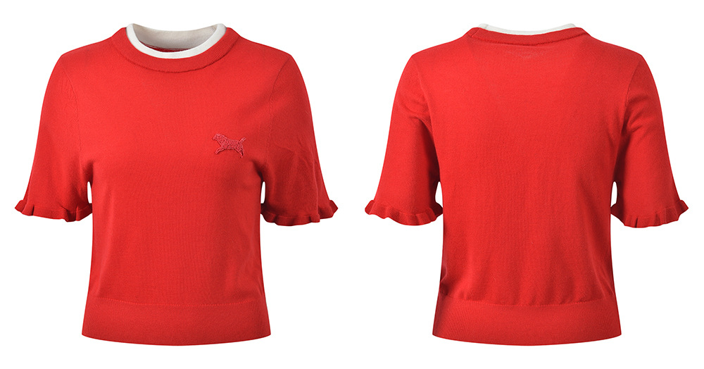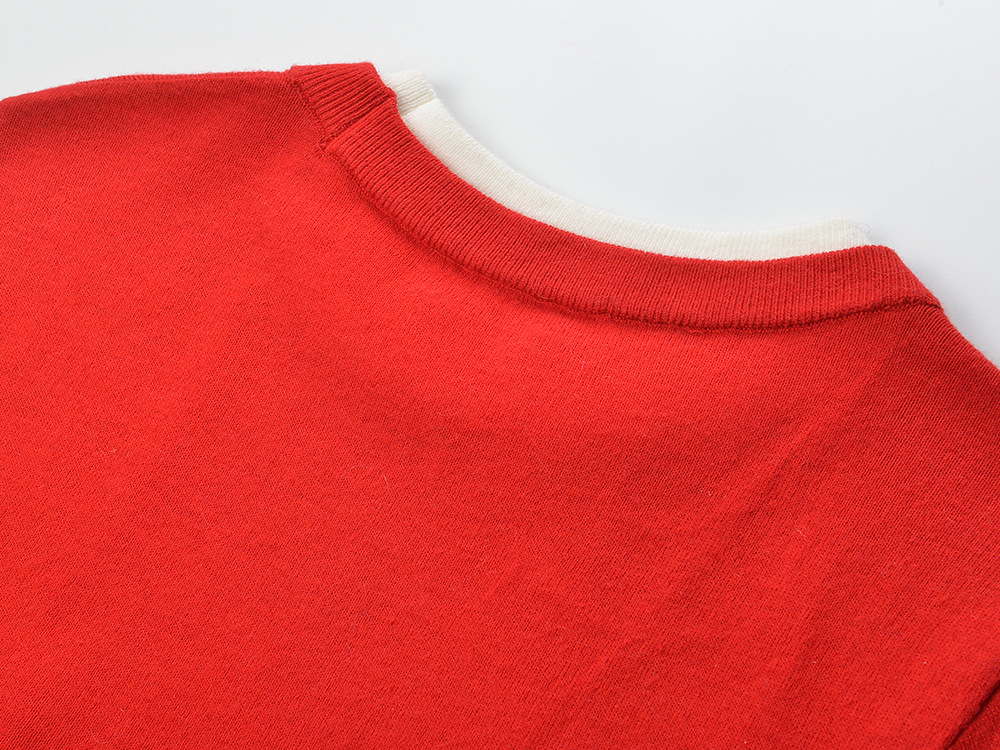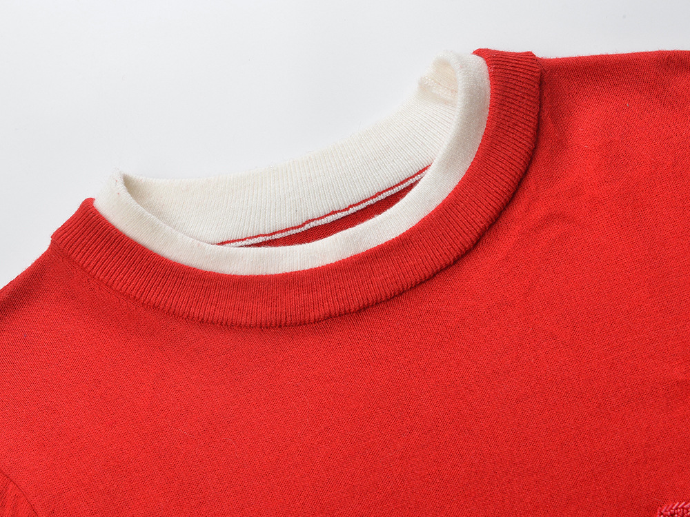 2026 Spring/Summer New Collection Color Contrasting Round Neck Cuffs Curled Edges Fashionable Age Reducing Versatile Short Red Knitted Top