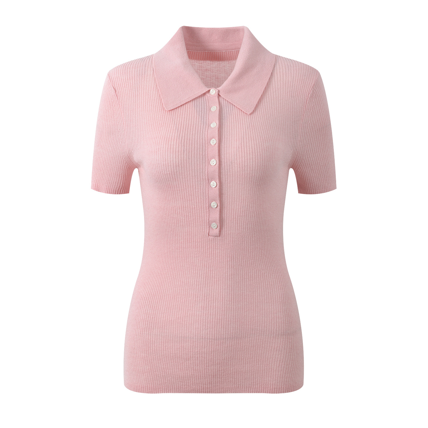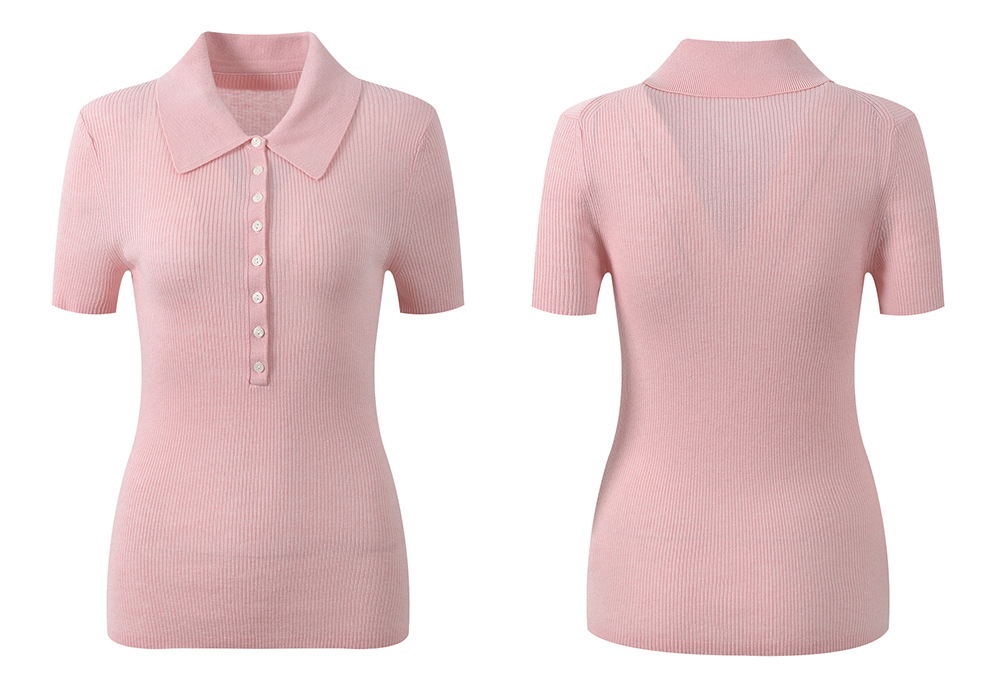 2026 Spring/Summer New Pink Gentle Wind Sweet Aging Fashion Versatile Polo Collar Knitted T-shirt Short Sleeve Top