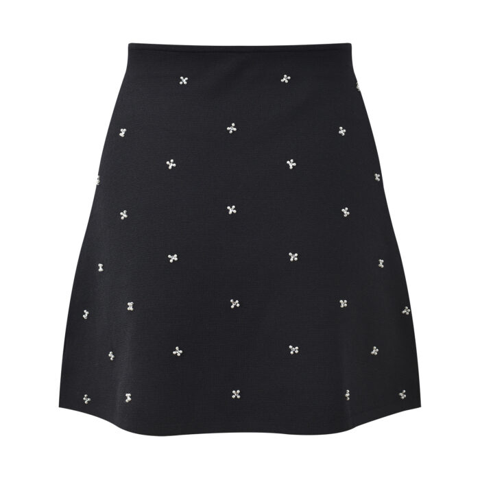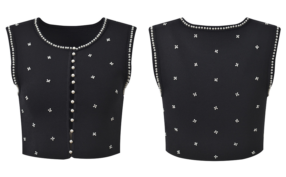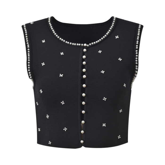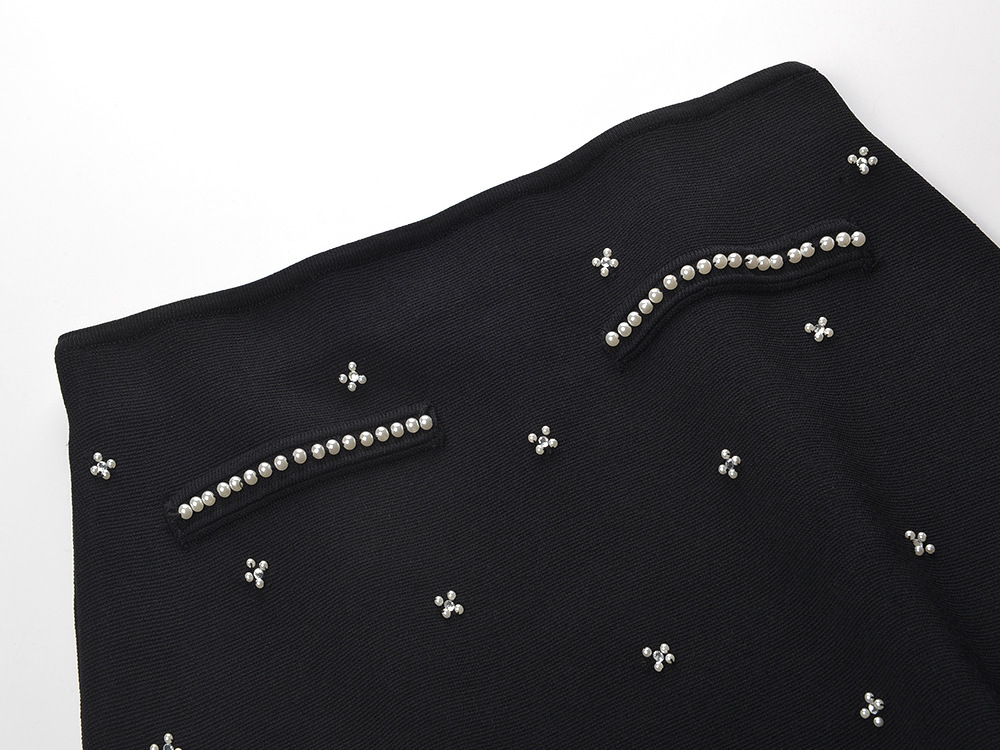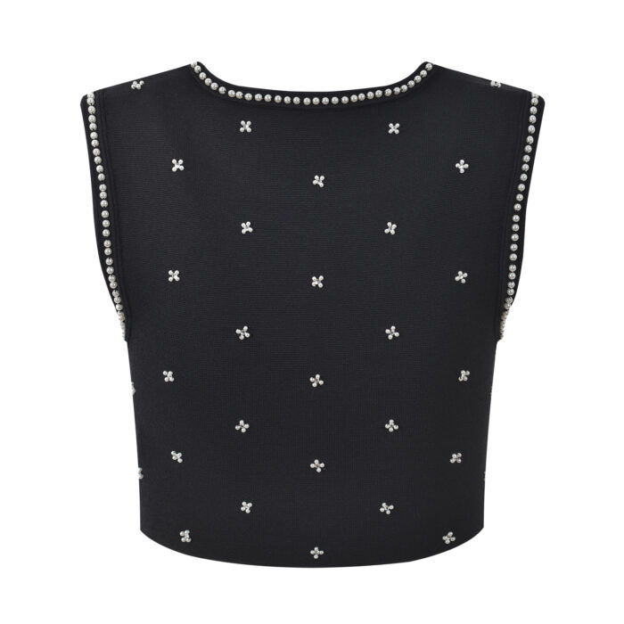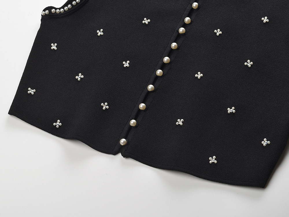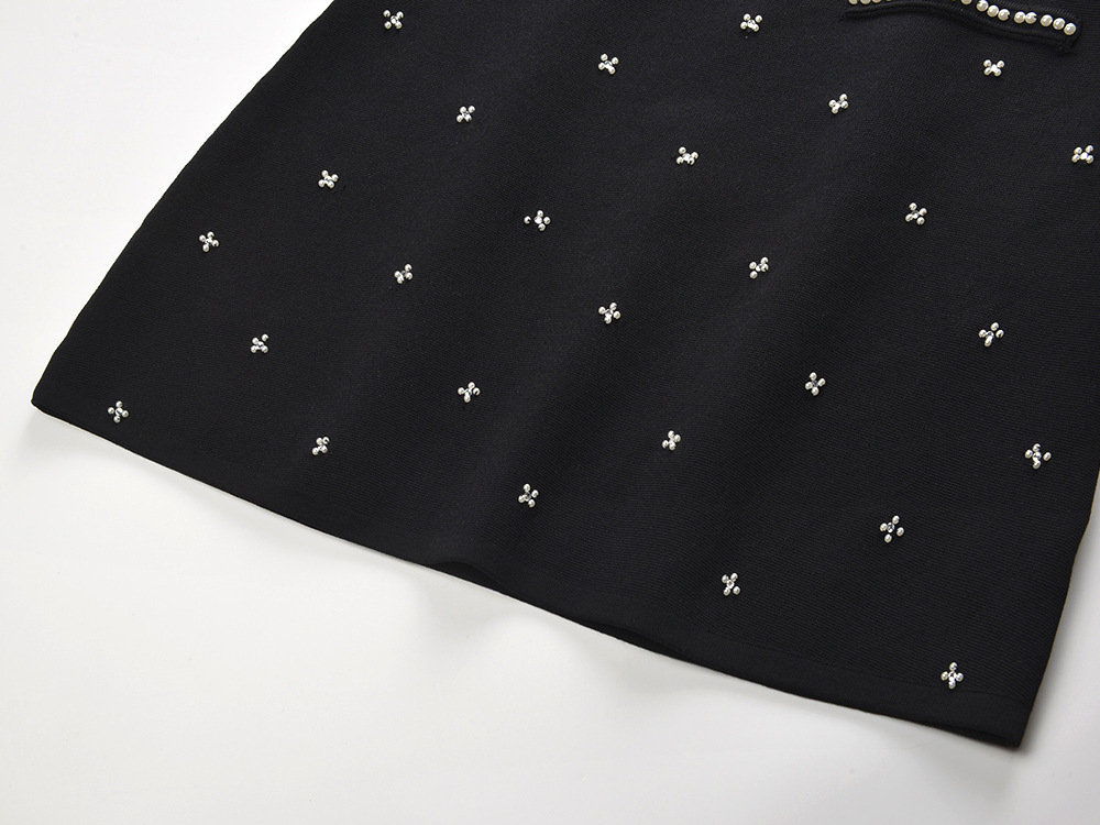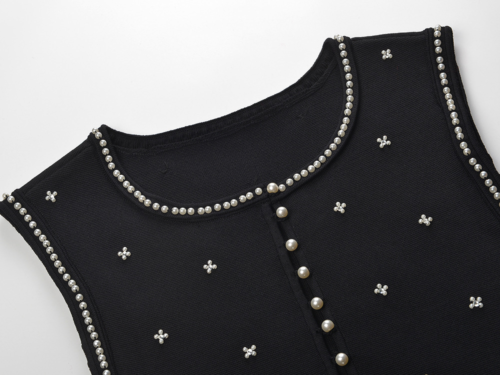 2026 Spring/Summer New Small Fragrance Heavy Industry Nail Bead Slim Fit Black Round Neck Sleeveless Top+Half Skirt Set