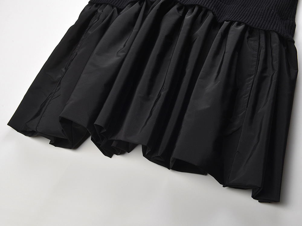 2026 Spring/Summer New Style Fake Two piece Bottom Splicing Fashionable Slim Fit Black Round Neck Short Sleeve Dress