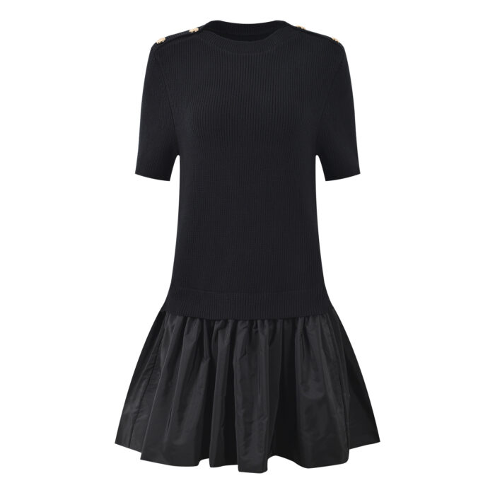 Be the first to review “2026 Spring/Summer New Style Fake Two piece Bottom Splicing Fashionable Slim Fit Black Round Neck Short Sleeve Dress” Cancel reply