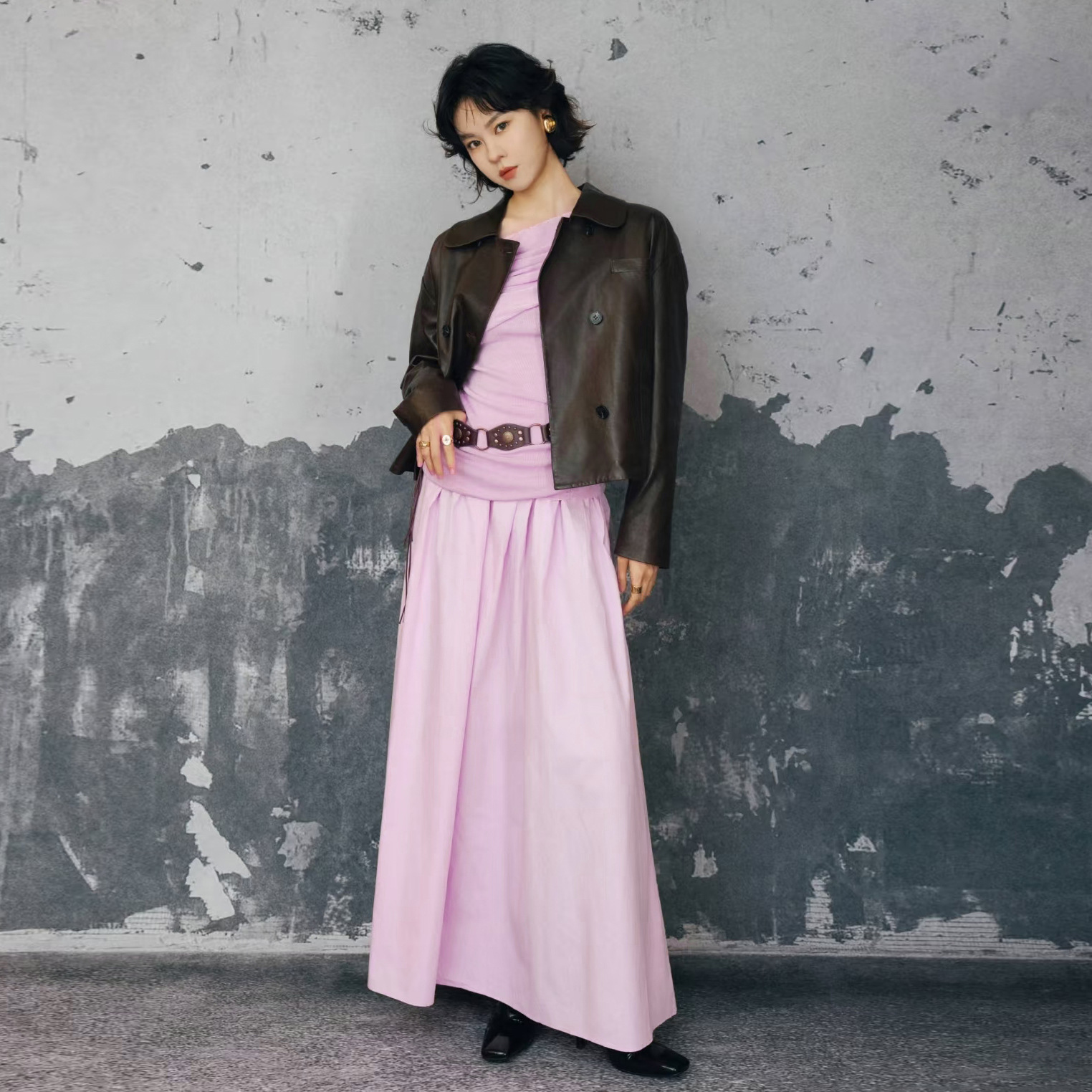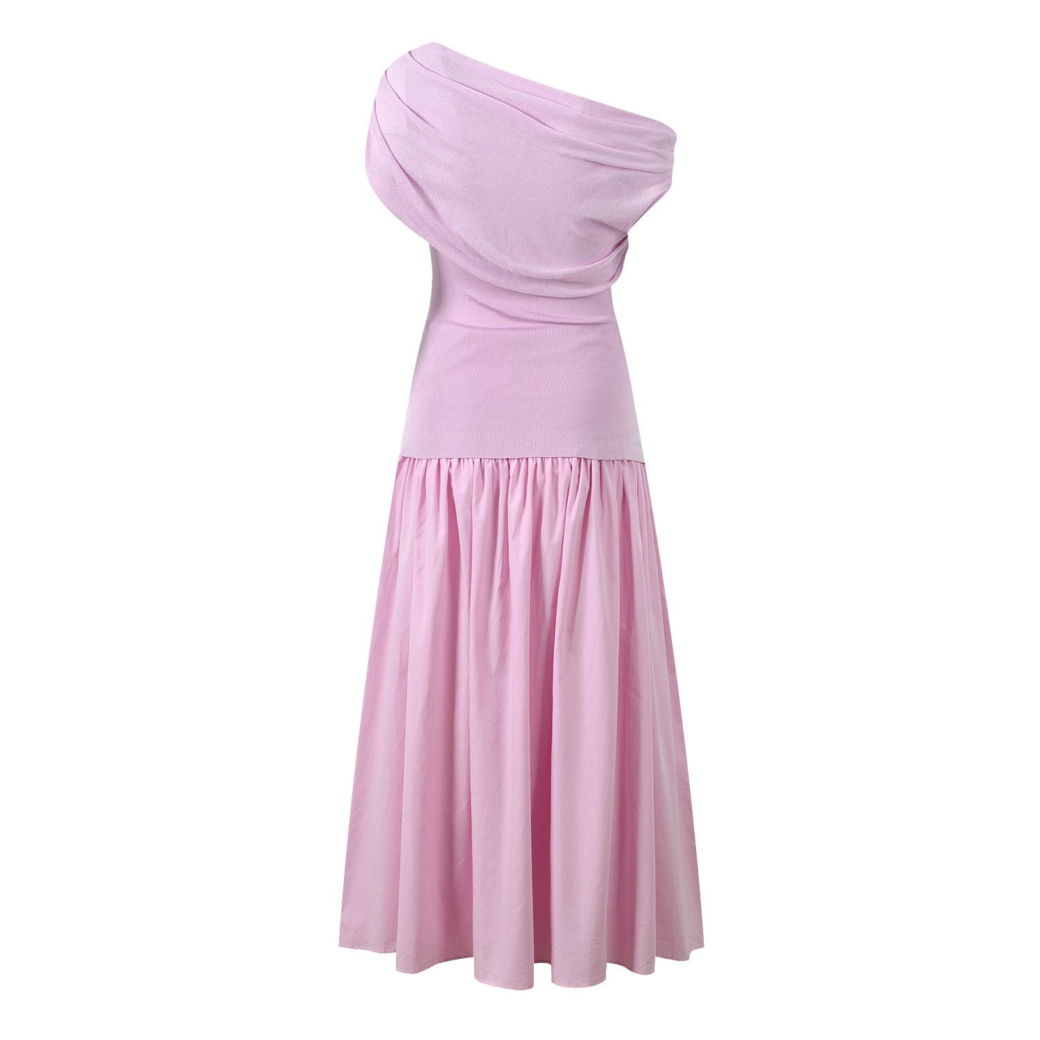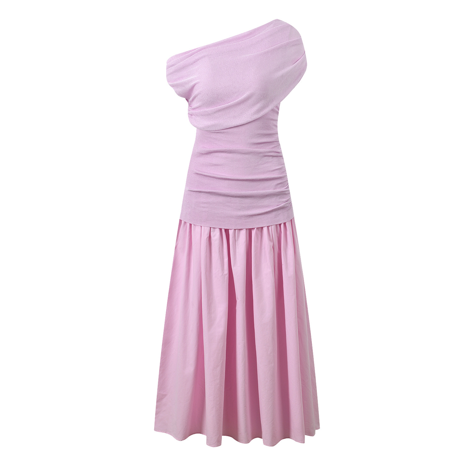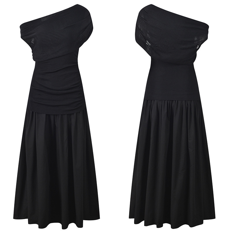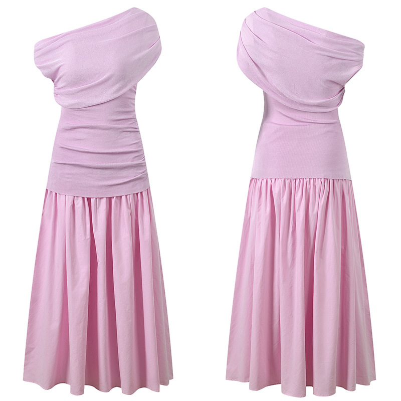 2026 Spring/Summer New Style Fashionable Slimming and Sensual Sleeveless Slant Collar Single Shoulder Folded Skirt Dress