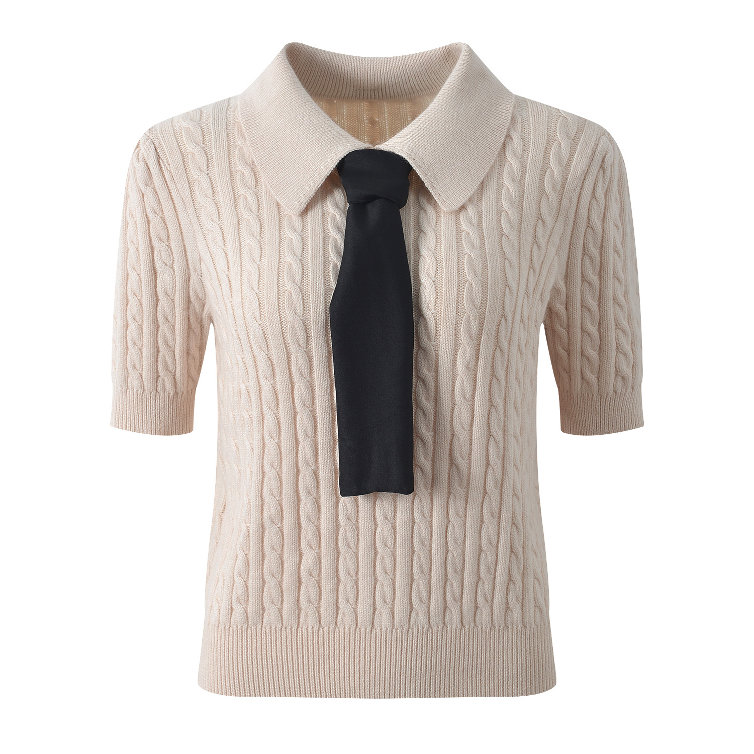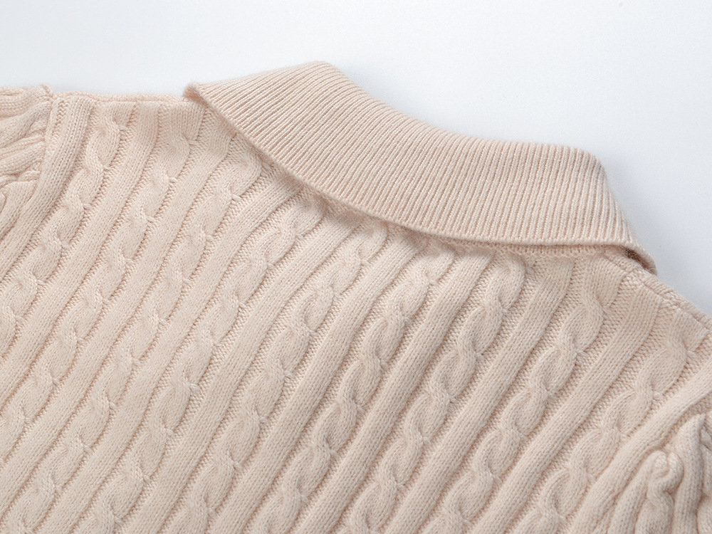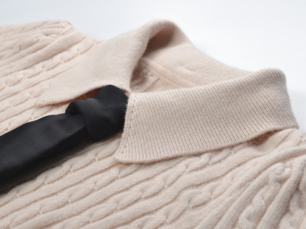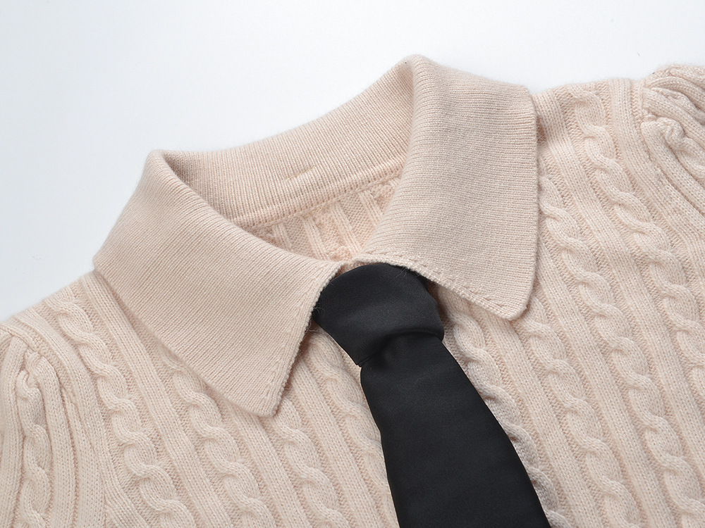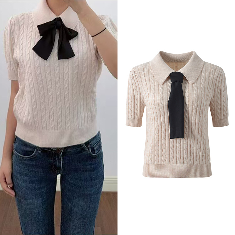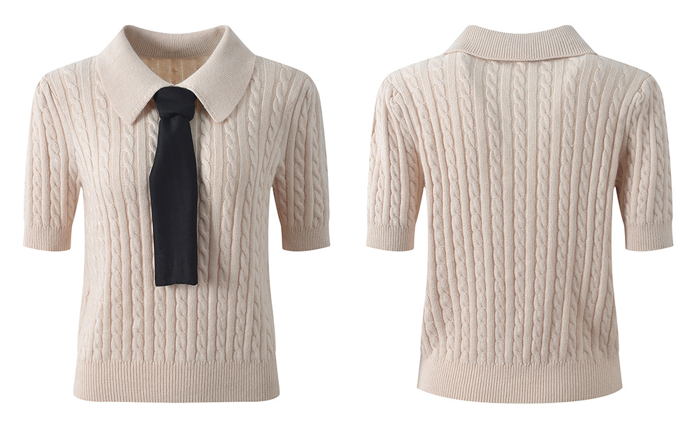 Autumn and winter 2025 new polo collar tie hemp pattern fashion age reducing gentle style short sleeve sweater top