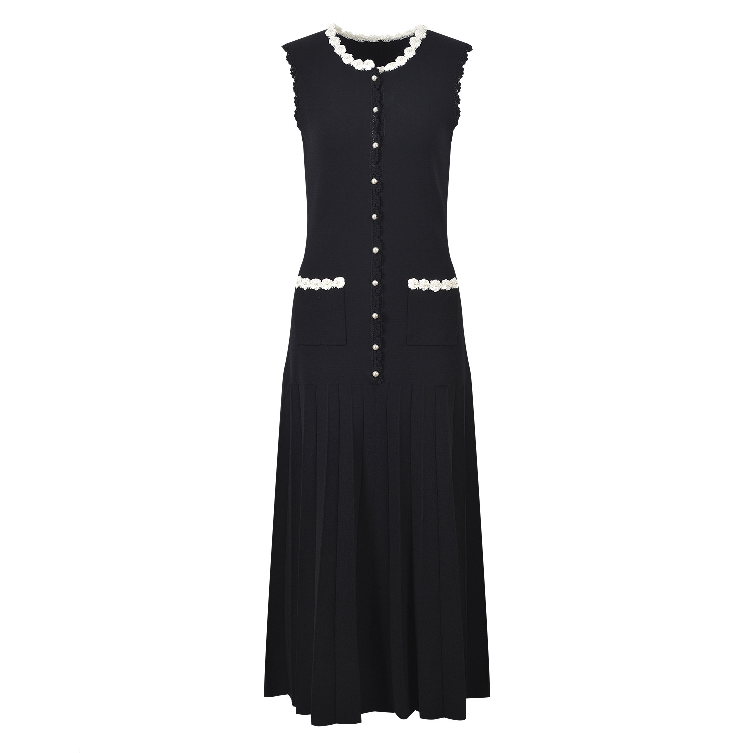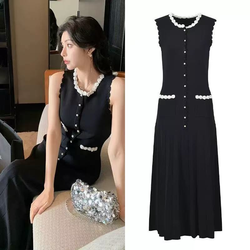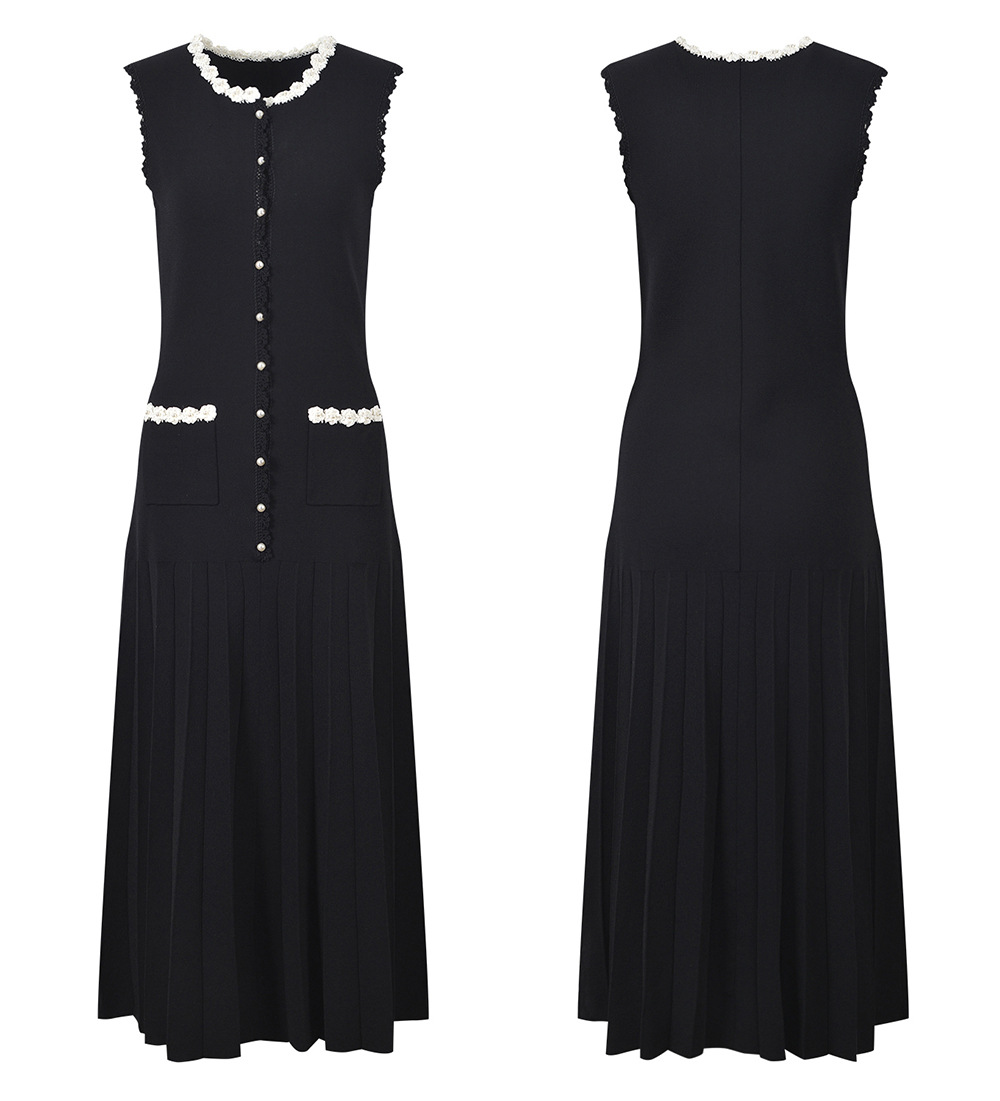 Black Crochet Flower Long Knitted Dress Women 2025 Early Spring New Elegant Sleeveless Slim Dress 5250014Availability: 500 in stock (can be backordered)