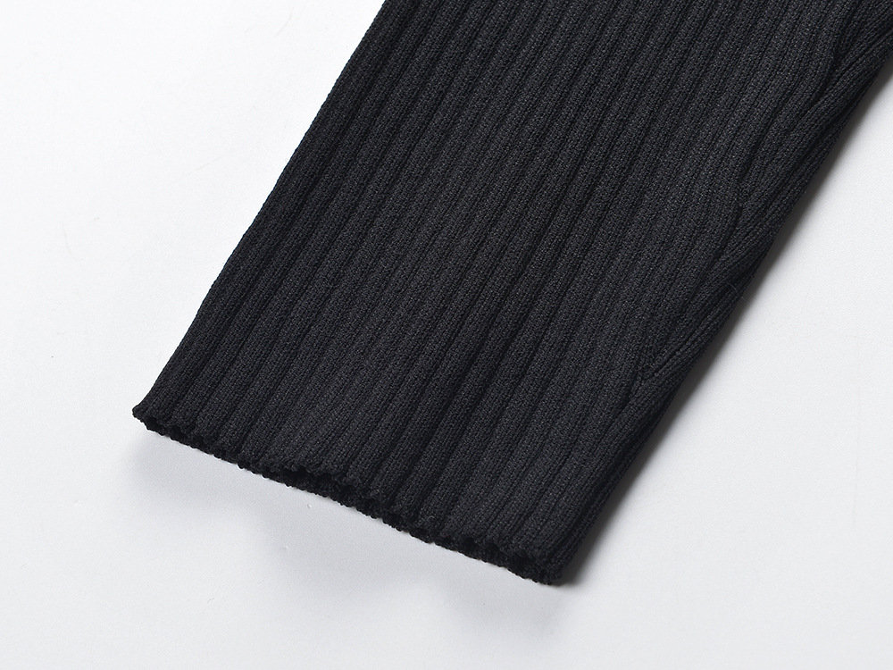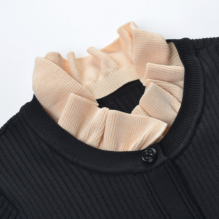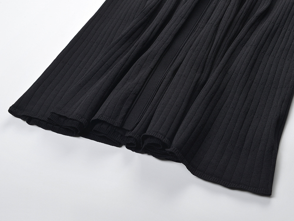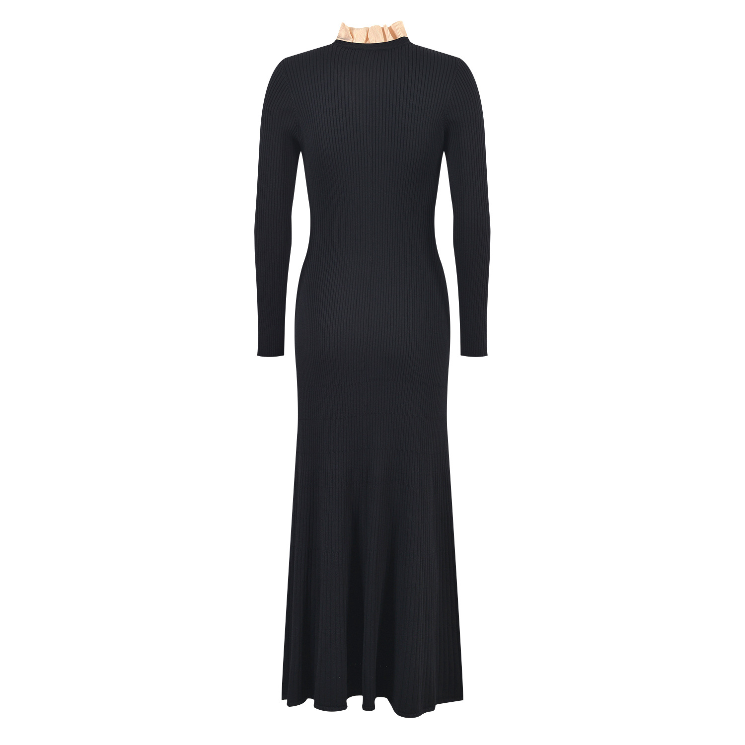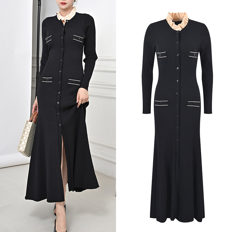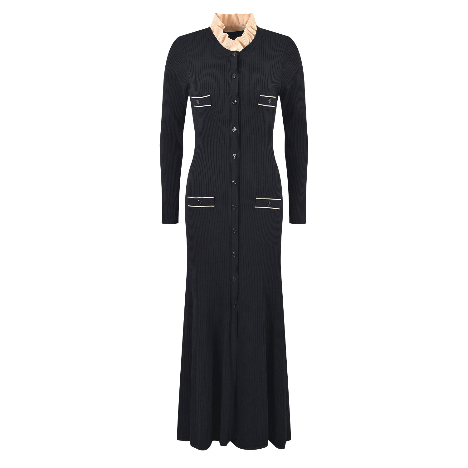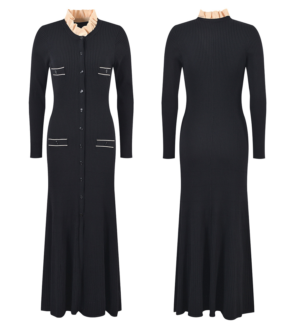 Black Knitted Maxi Dress Women’s 2024 Autumn Winter Ruffled Single Breasted Long Sleeve Vintage Dresses 5230347