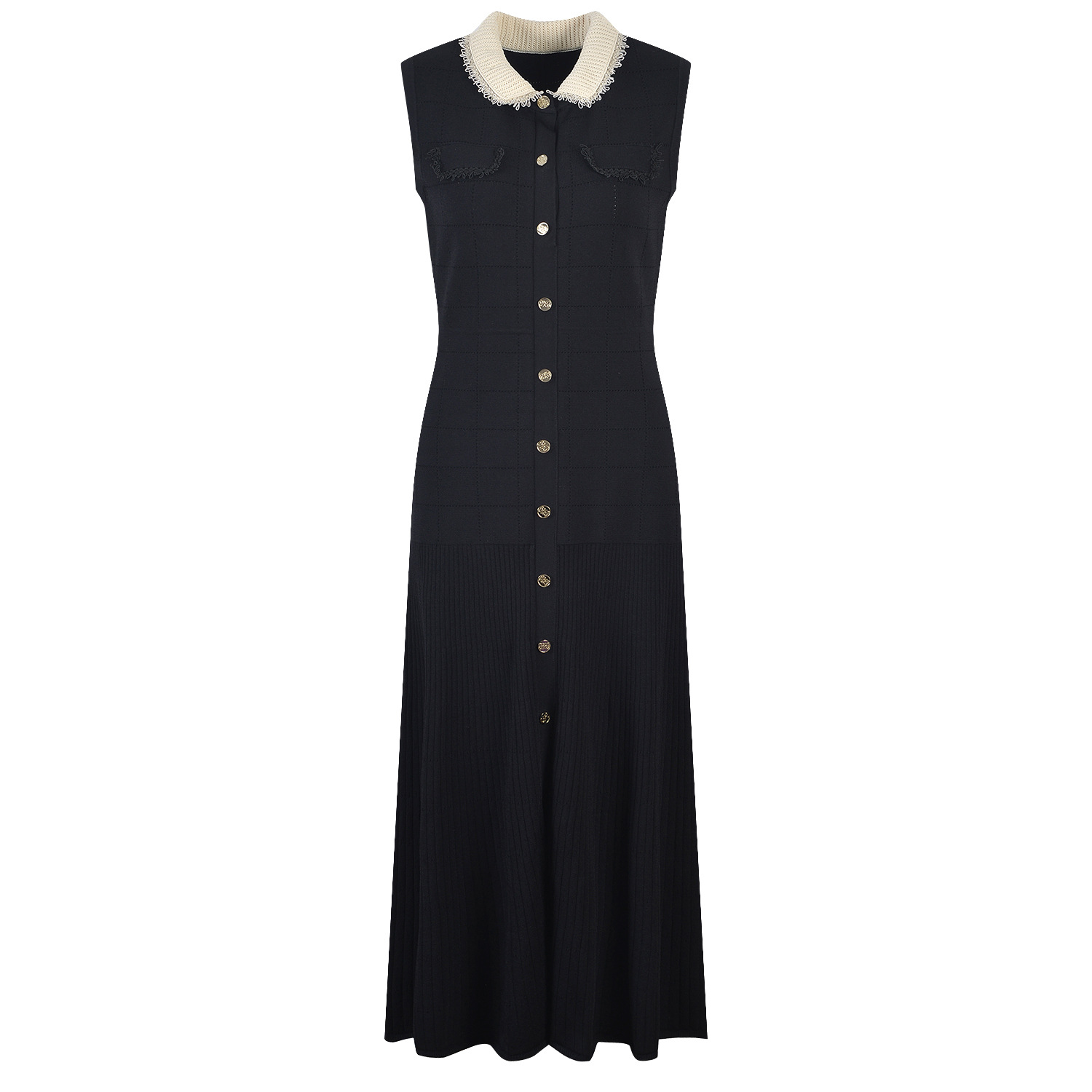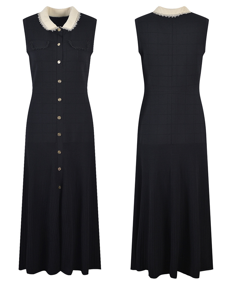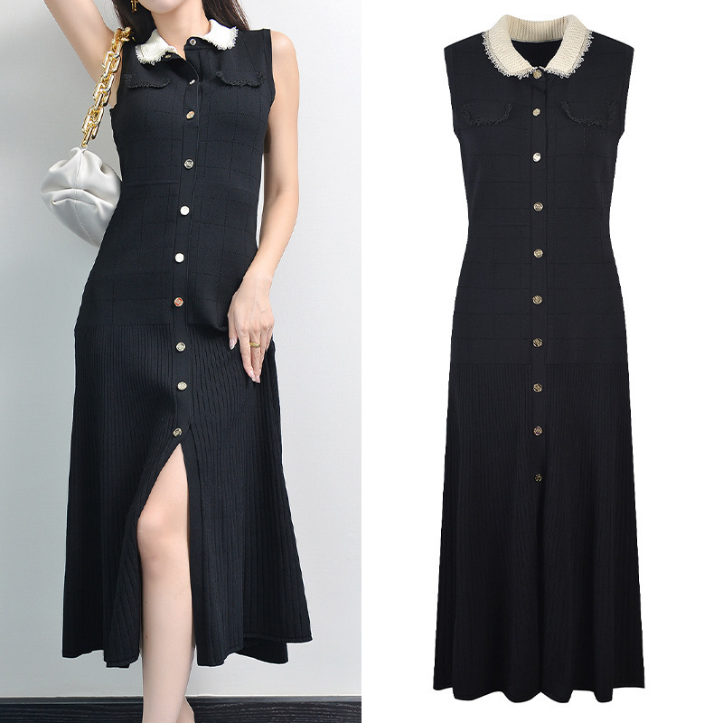 Black Sleeveless Knitted Long Dress Women 2024 Elegant Lace Elastic Slim Single Breasted Midi Dresses 5220338