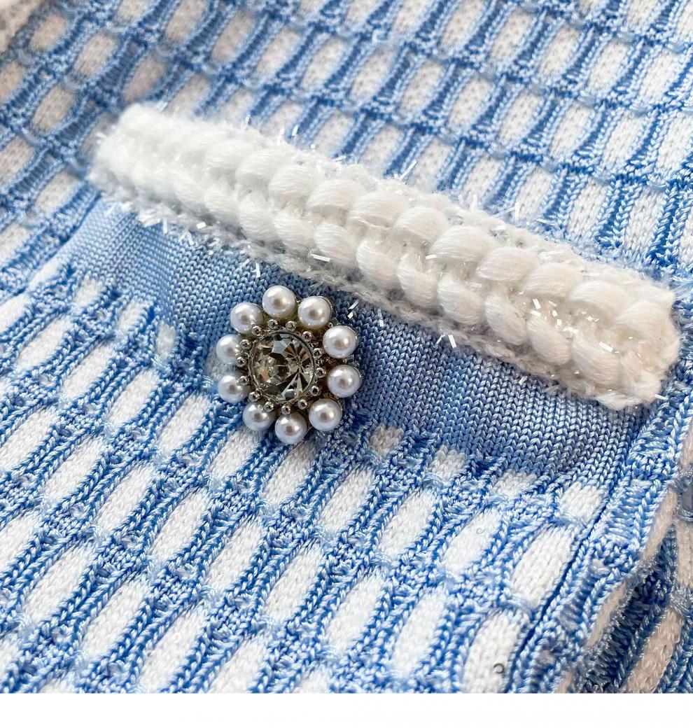 Blue Knitted Mini Dress Women New Arrive Turn-Down Collor Short Sleeve Single Breasted Lady Dress 5230052