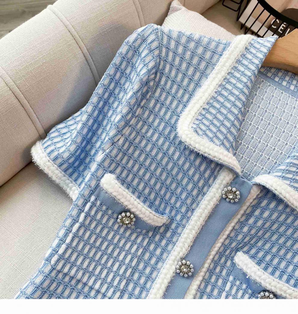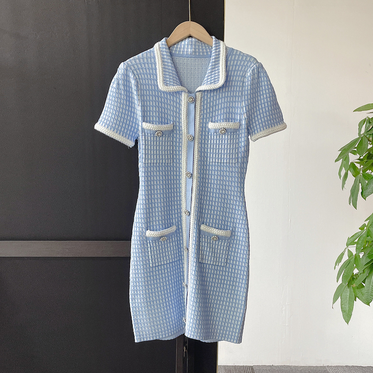 Blue Knitted Mini Dress Women New Arrive Turn-Down Collor Short Sleeve Single Breasted Lady Dress 5230052Availability: 500 in stock (can be backordered)