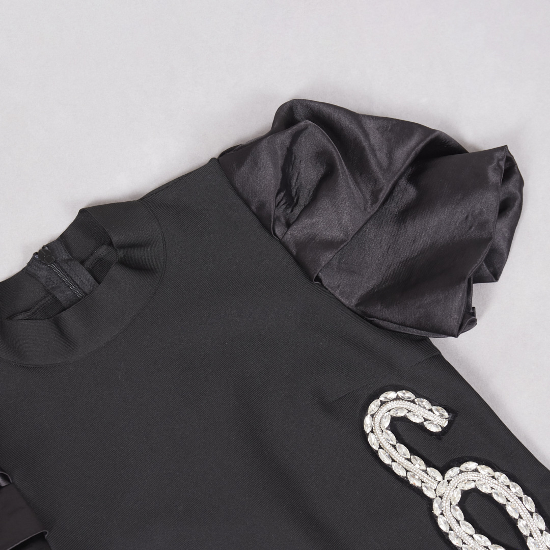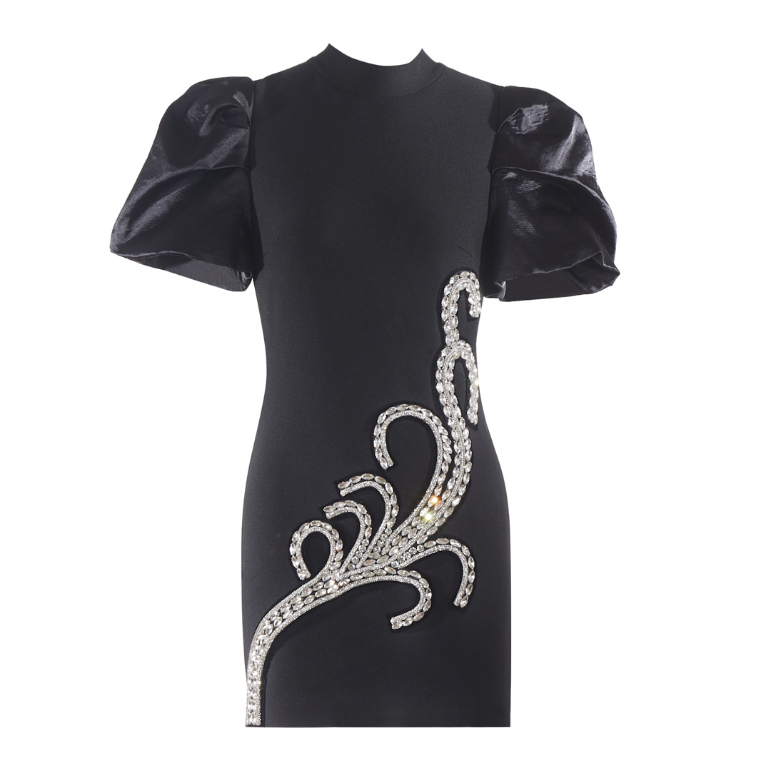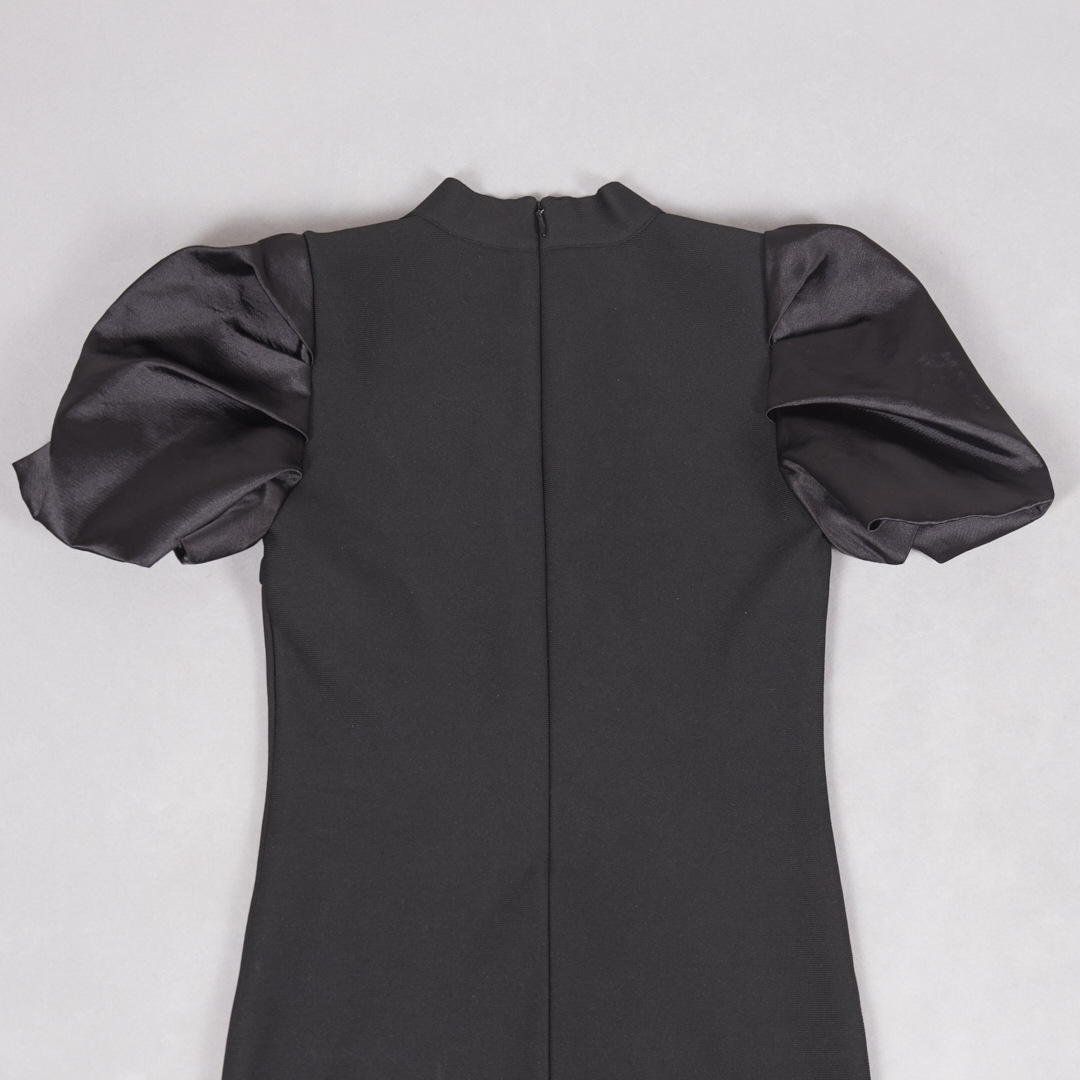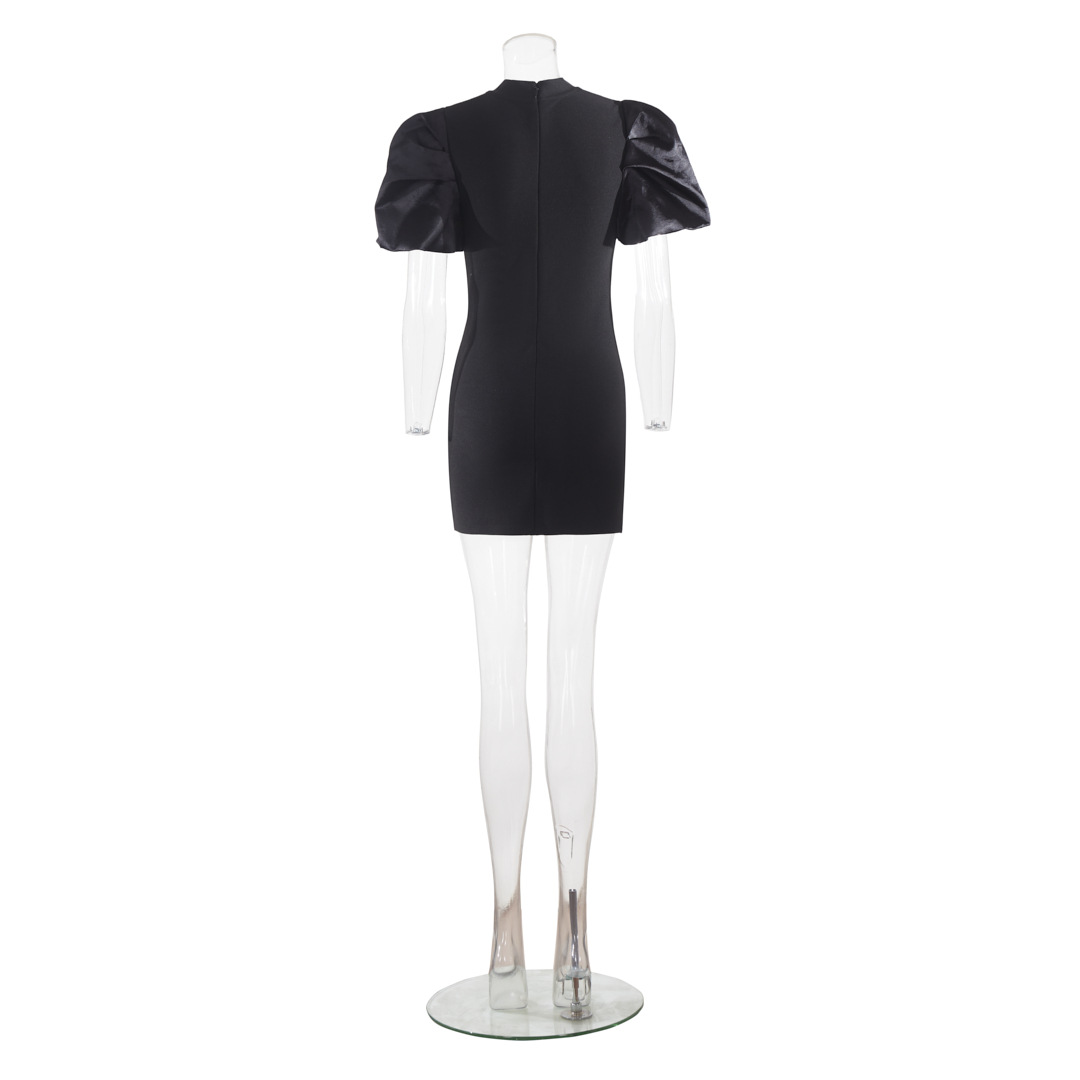 Bubble Sleeve Fitted Dress Black Wrap Dress Fashion Elegant Party Sexy Slimming Women’s Wear