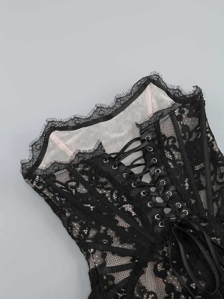 Christmas Dress For Women Red Lace Sexy Strapless Sleeveless Slim Supper Short Dress With Lace-Up
