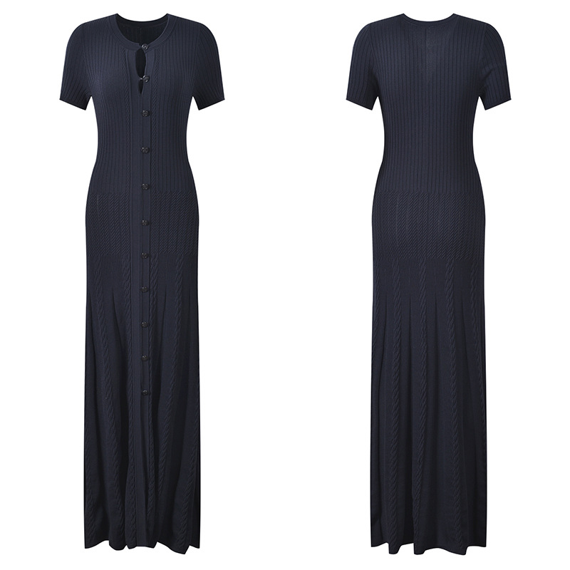 Dark blue Hollow Knitted Dress Women 2025 Autumn Short Sleeve Elegant Slim Party Dress 5250281