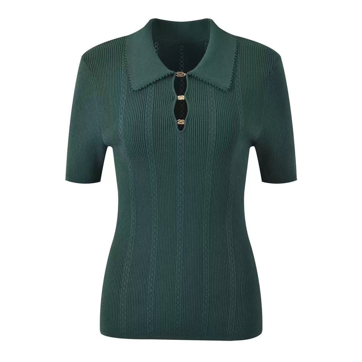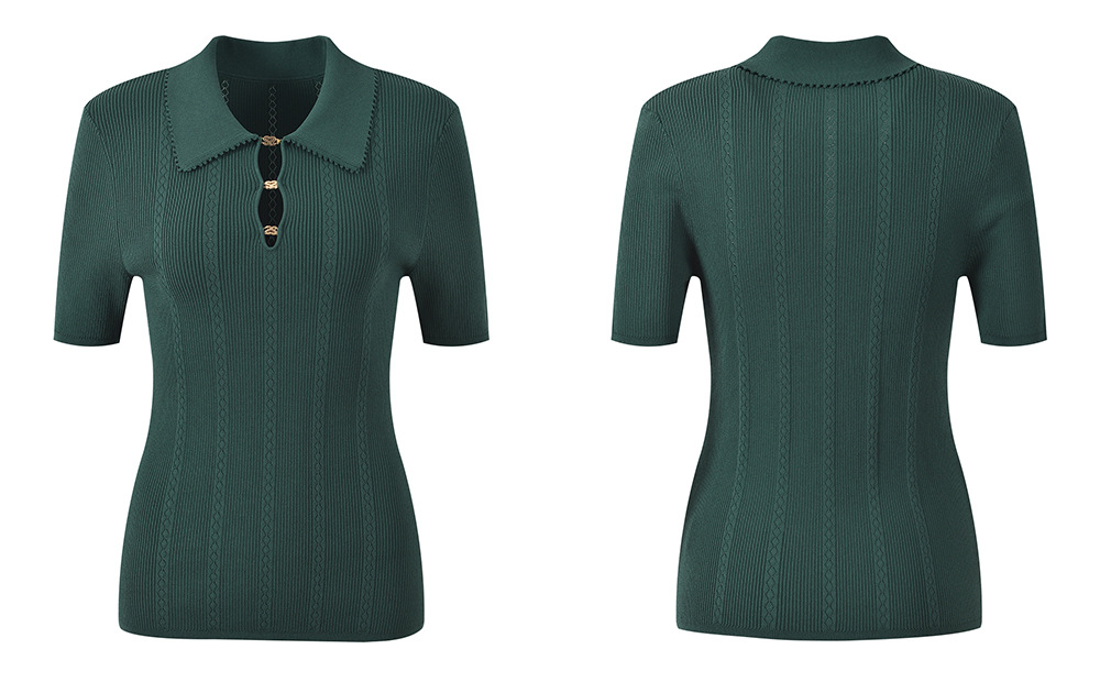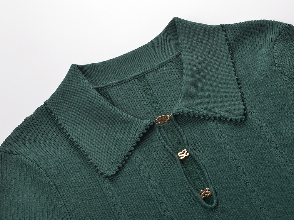 Dark green Threaded Knitted Top Women Fashion Short sleeved Commuting Temperament Polo Neck Slim Sweater 5250241Availability: 500 in stock (can be backordered)