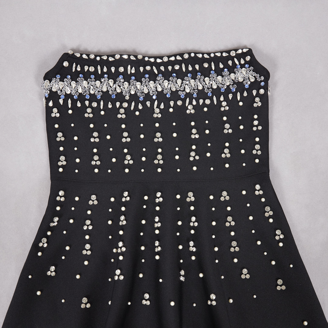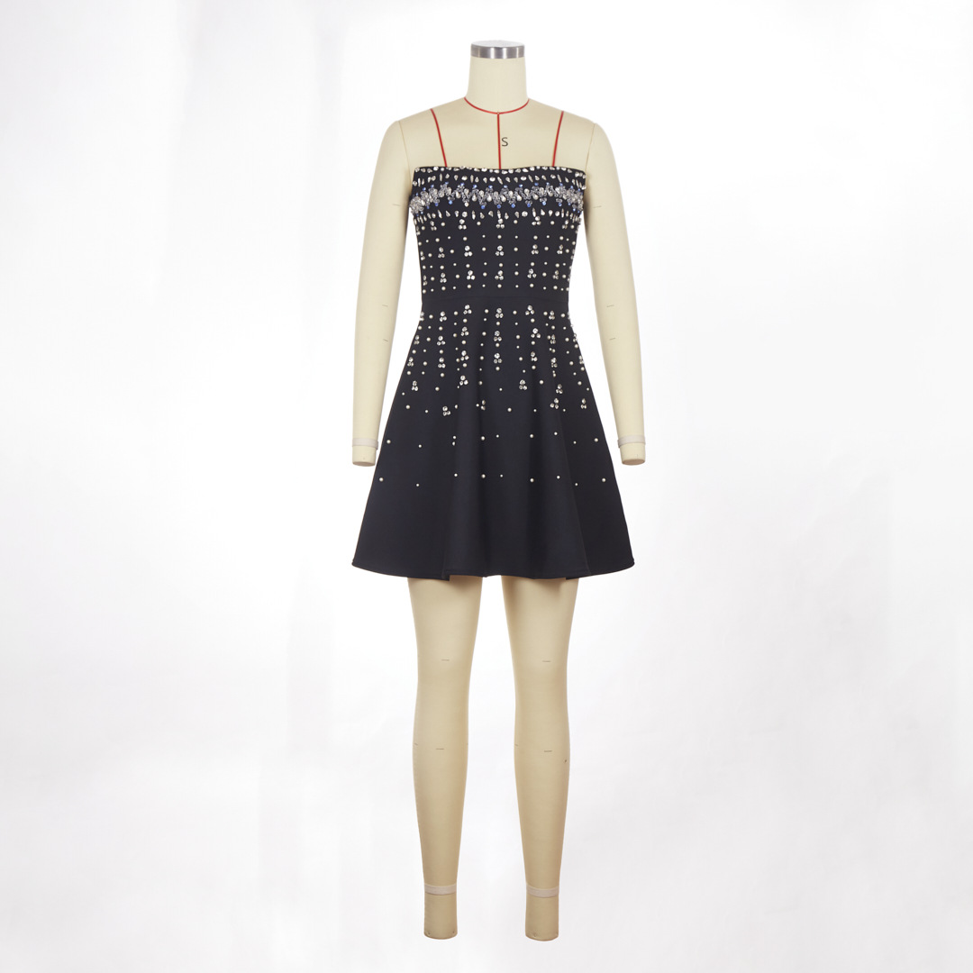 Diamond embellished strapless waist bandage dress, fashionable for appointments, elegant and slimming small dress, women’s dinner dress